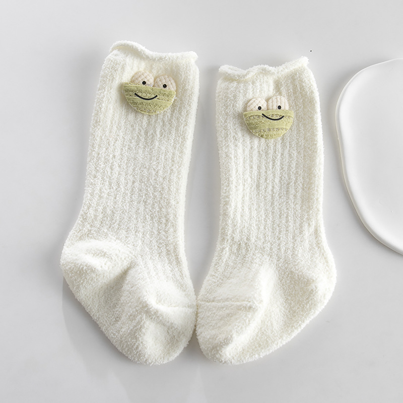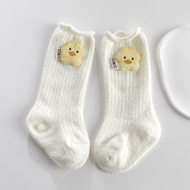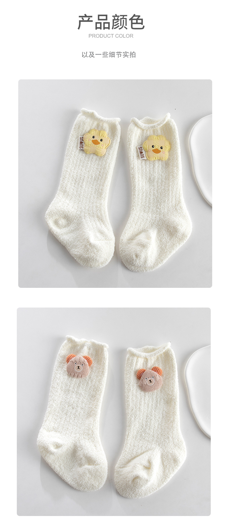 아기 중간 튜브 양말 가을과 겨울 아기 스타킹 두꺼운 따뜻한 신생아 높은 양말 만화 반 벨벳 느슨한 양말