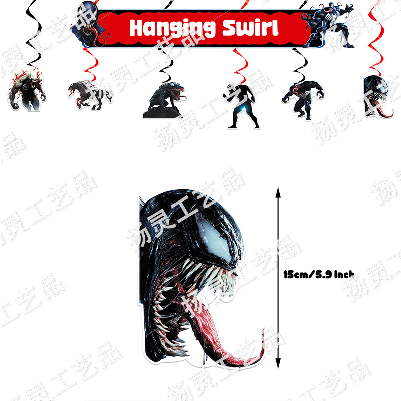 1 set Party Spirals Decor (6 Hanging Cards+6 Single Spirals: 3 Red and 3 Black)