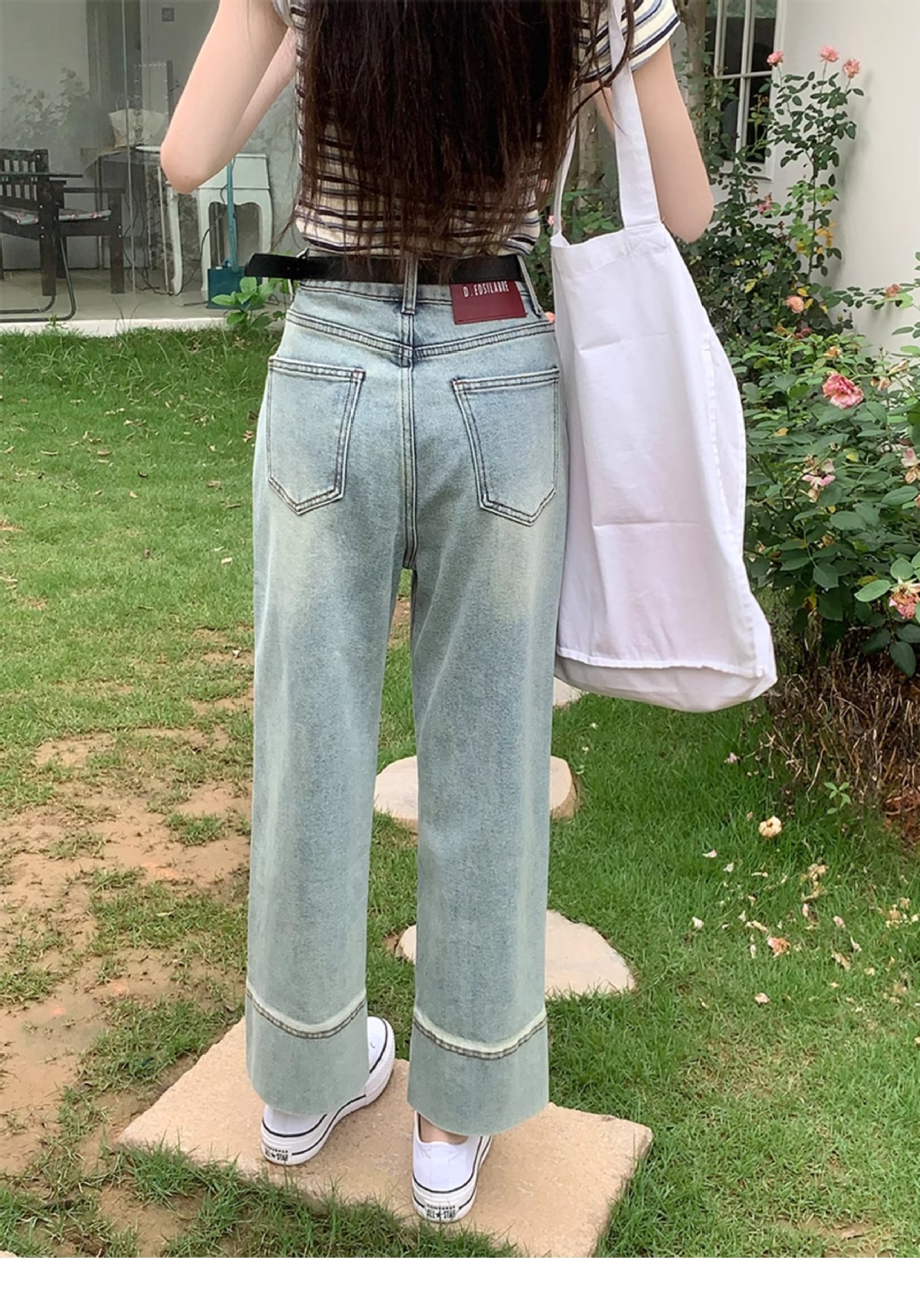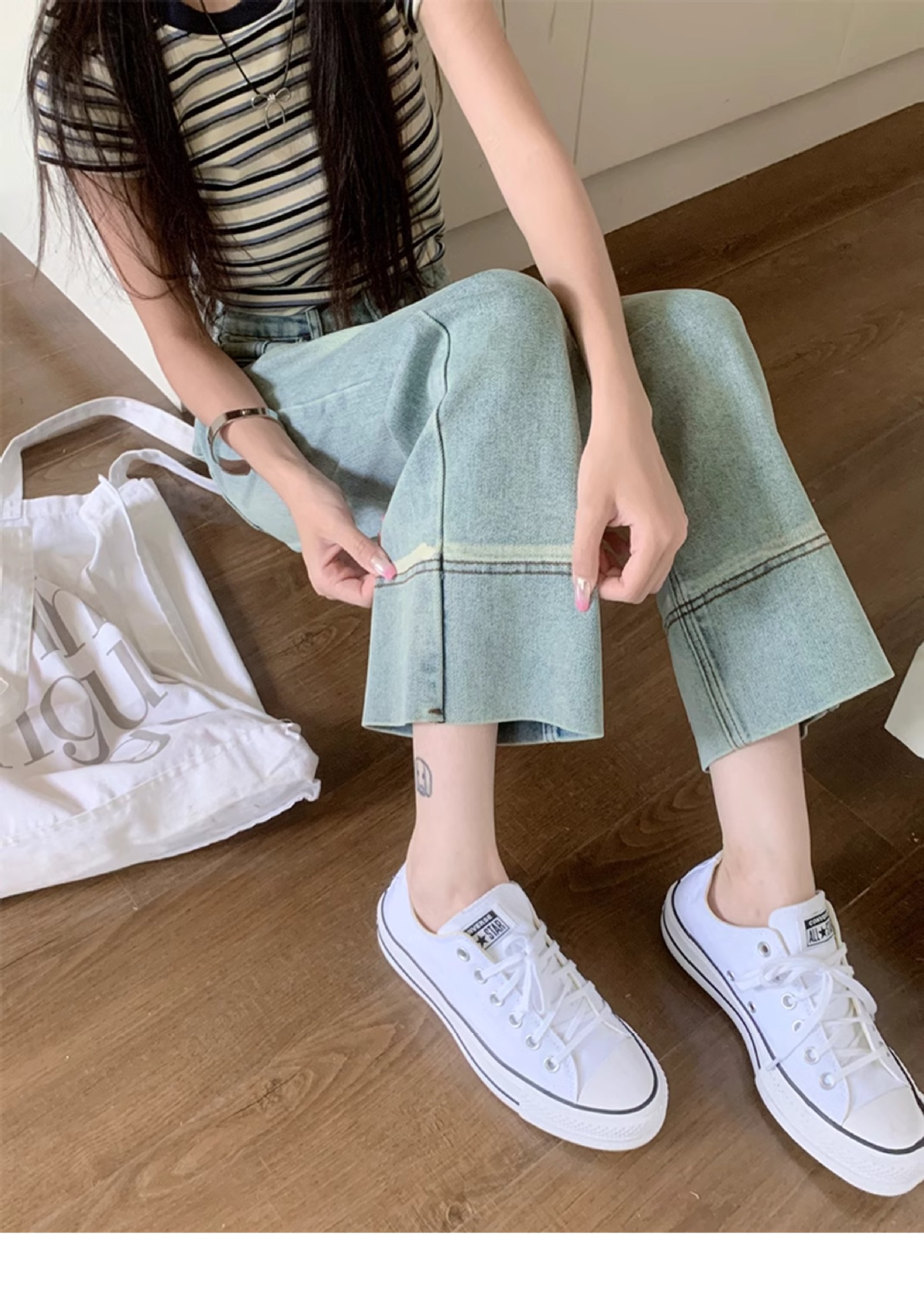 플러스 사이즈 빈티지 라이트 컬러 자른 청바지 여성의 가을 통통녀 높은 허리 슬리밍 느슨한 짧은 스트레이트 와이드 다리 바지