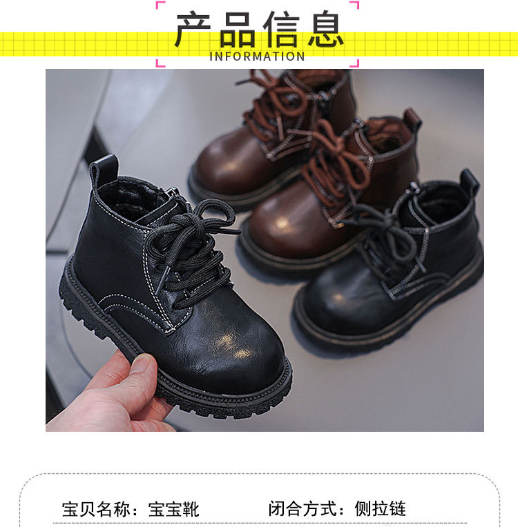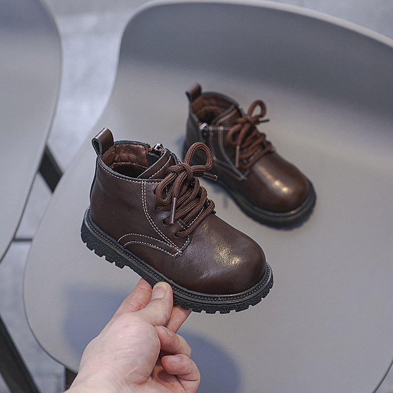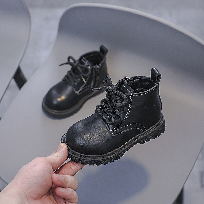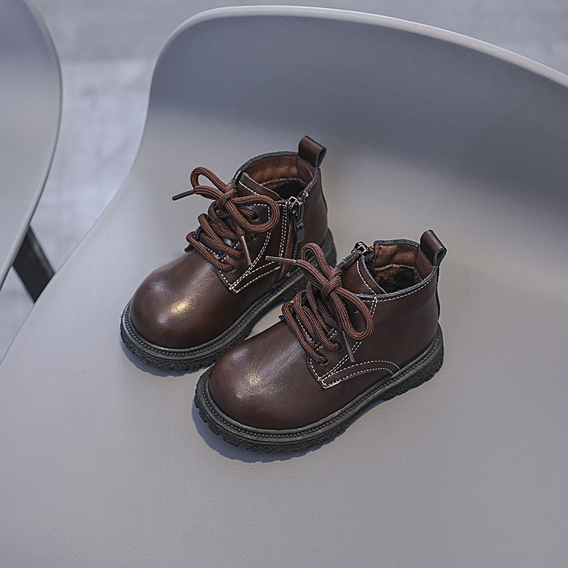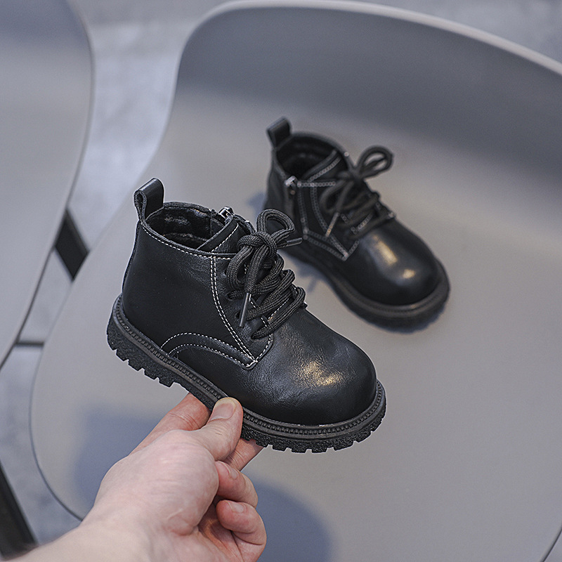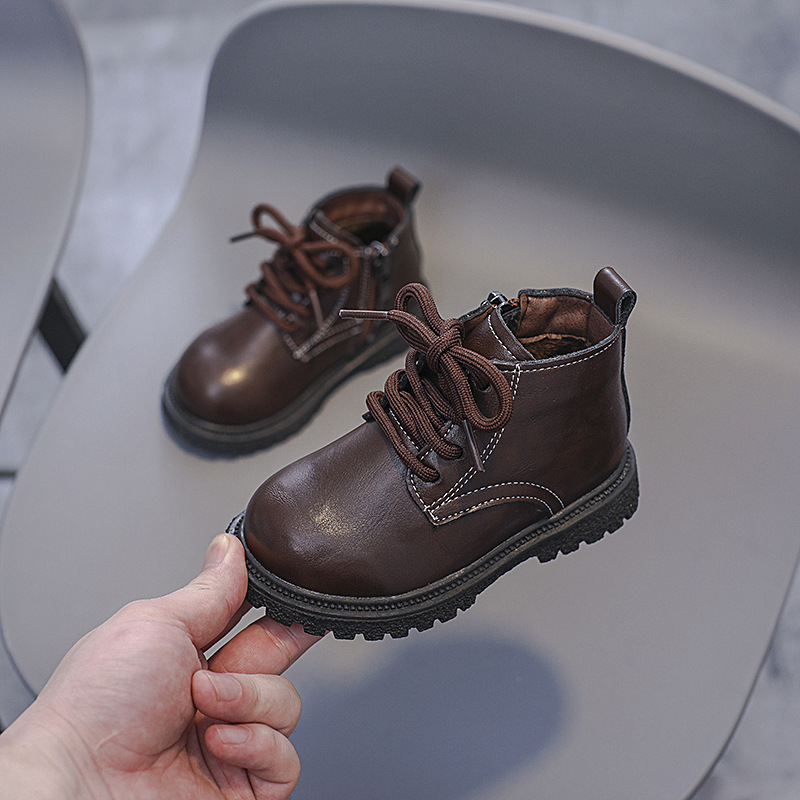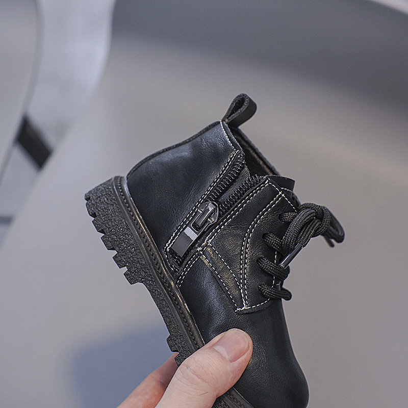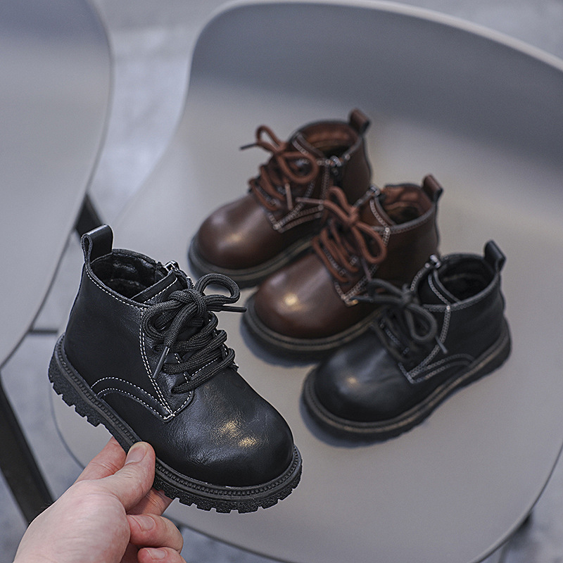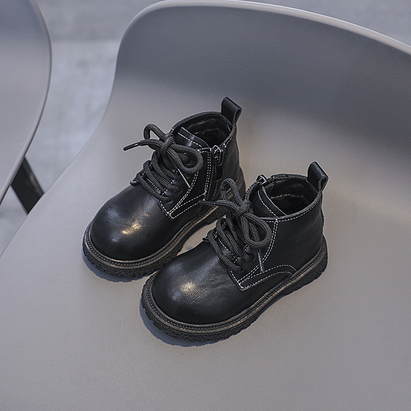 가을 겨울 옆 지퍼 어린이 마틴 부츠 소년 브록 부츠 여자 기모 가죽 신발 편안한 아기 패션 가죽 부츠