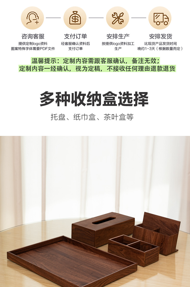 도매 즐기기! 호텔 트레이 직사각형 호두 나무 로고 홈스테이 레스토랑 원스톱 보관 용품스토어 가기