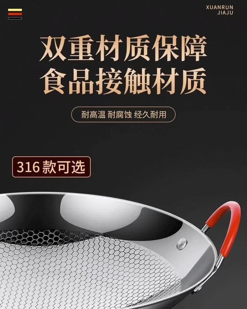 • 316 허니콤 드라이 팬(둥근 바닥) 뚜껑 없음 9inch - 미끄럼 방지 손잡이