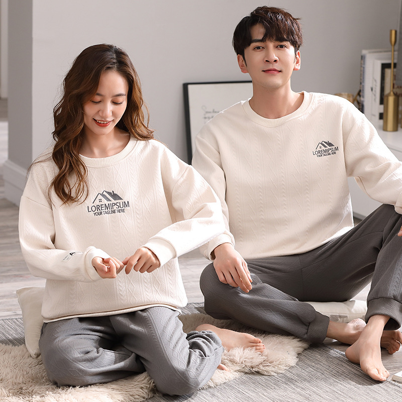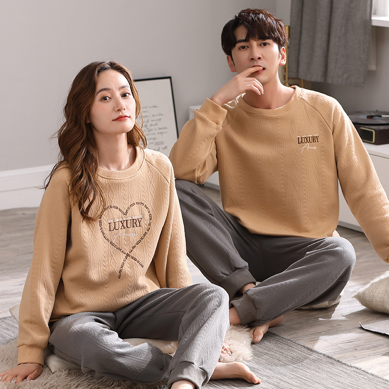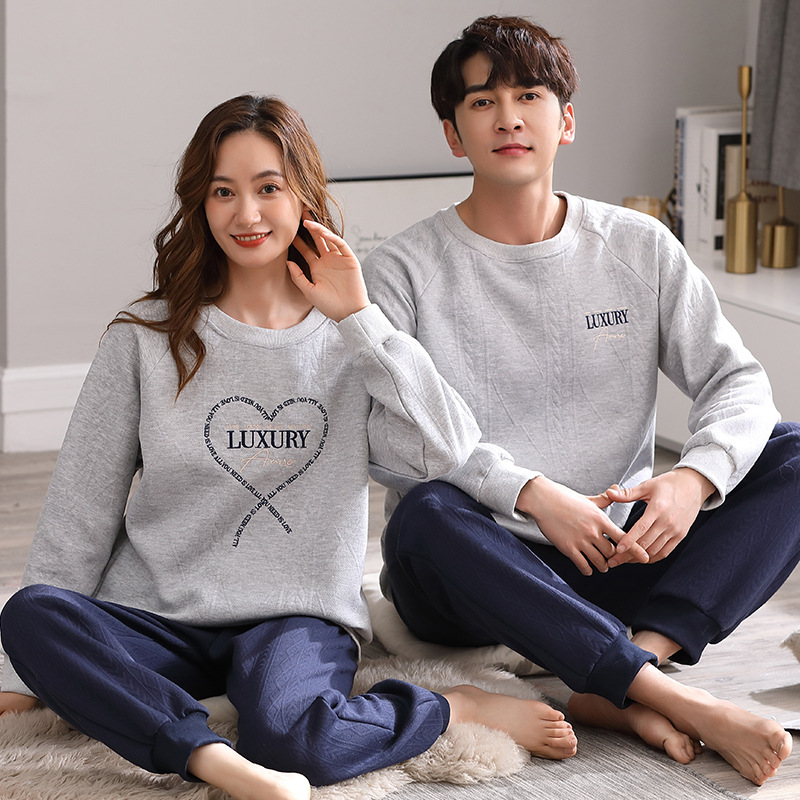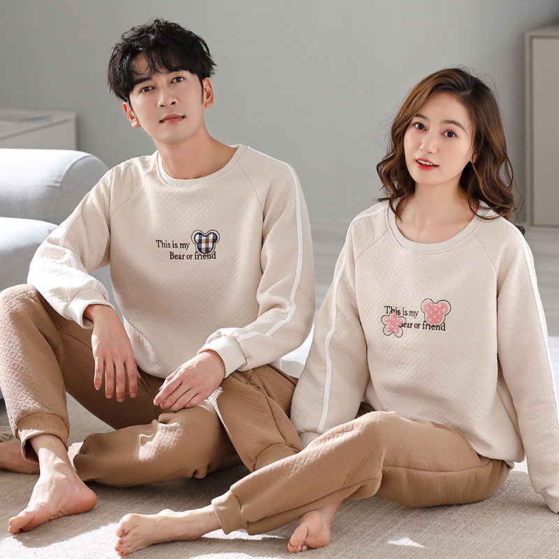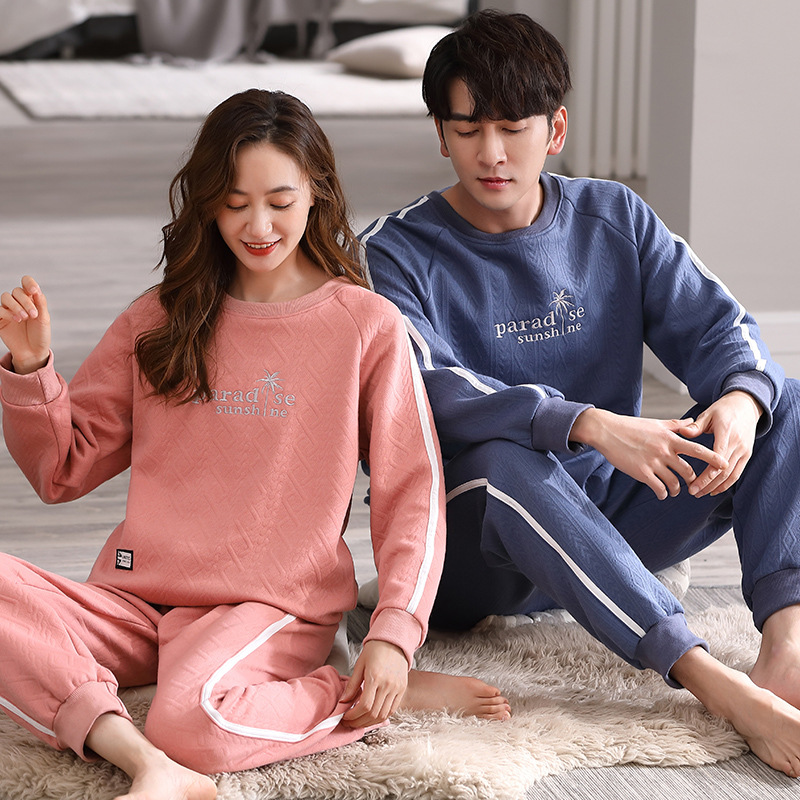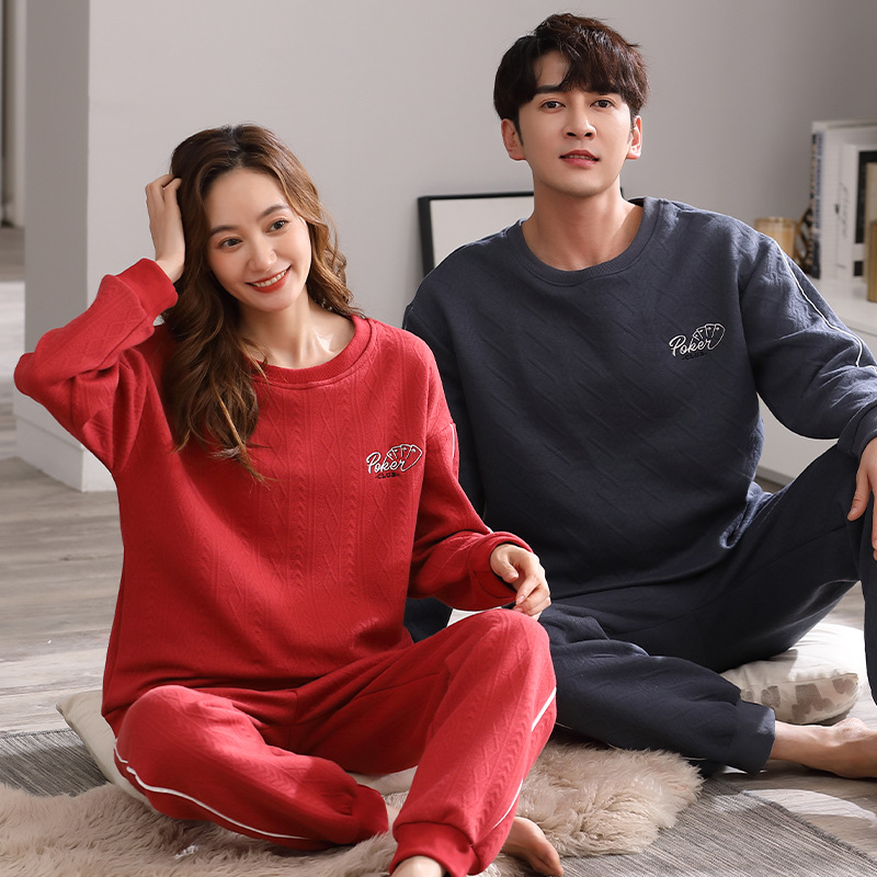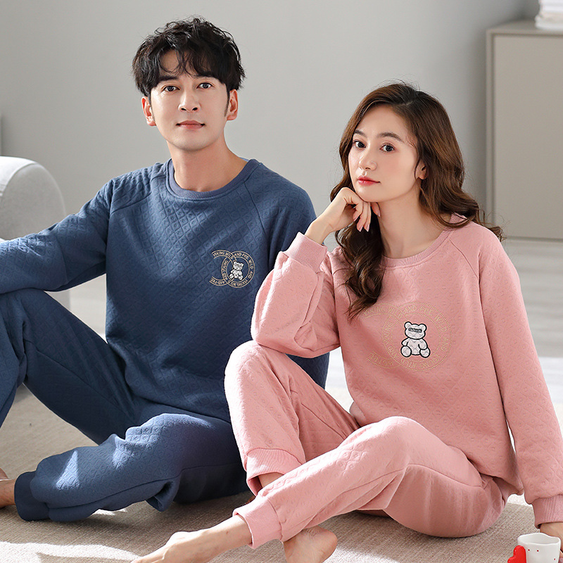 겨울 공기 샌드위치 커플 잠옷 여성의 캐주얼 간단한 긴 소매 바지 남자 플러스 사이즈 따뜻한 겨울 홈 옷