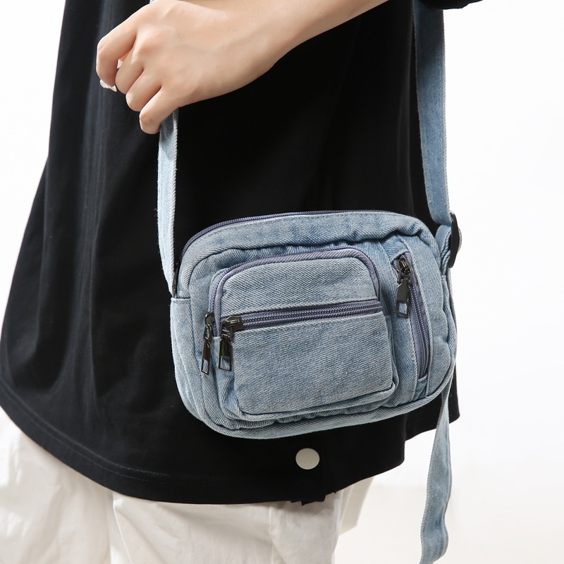빈티지 일본 스타일 세탁 데님 작은 가방 여성 홍콩 스타일 캐주얼 스포츠 어깨 가방 미니 휴대 전화 가방