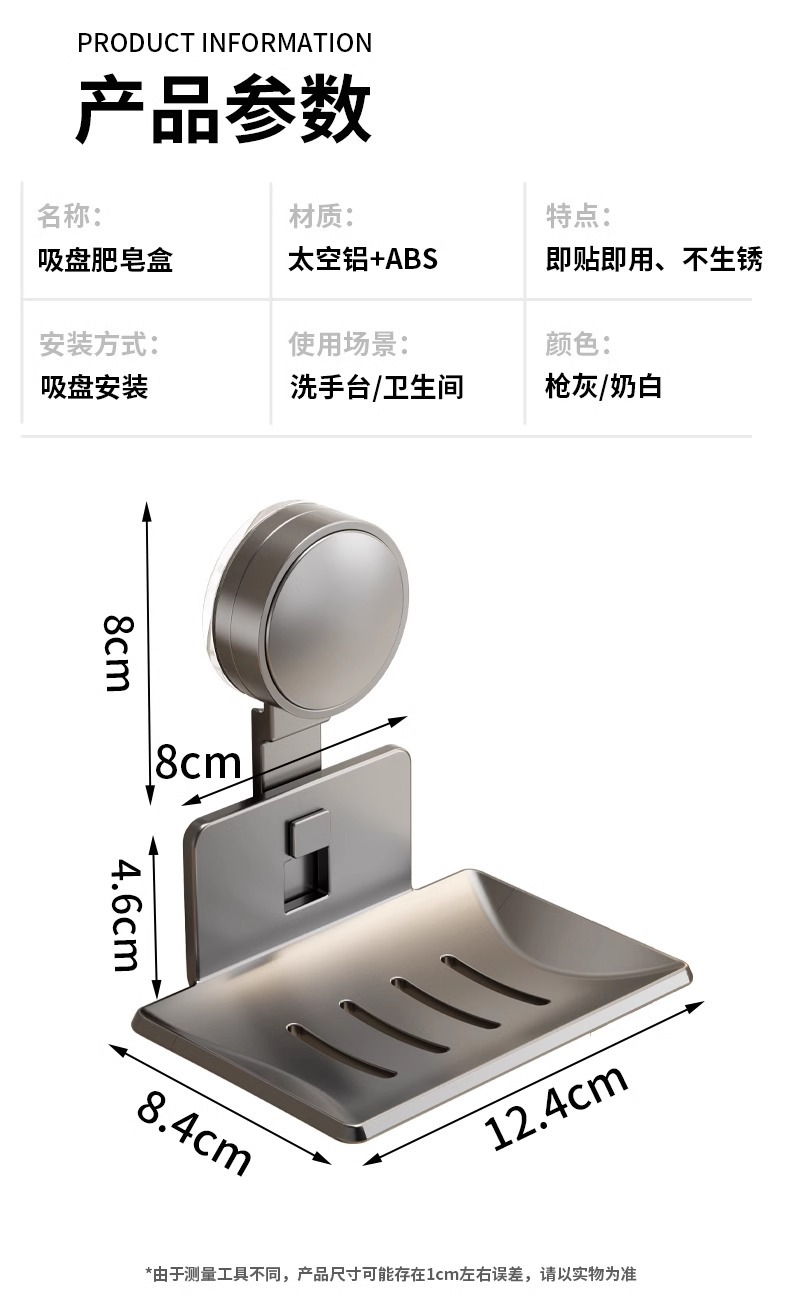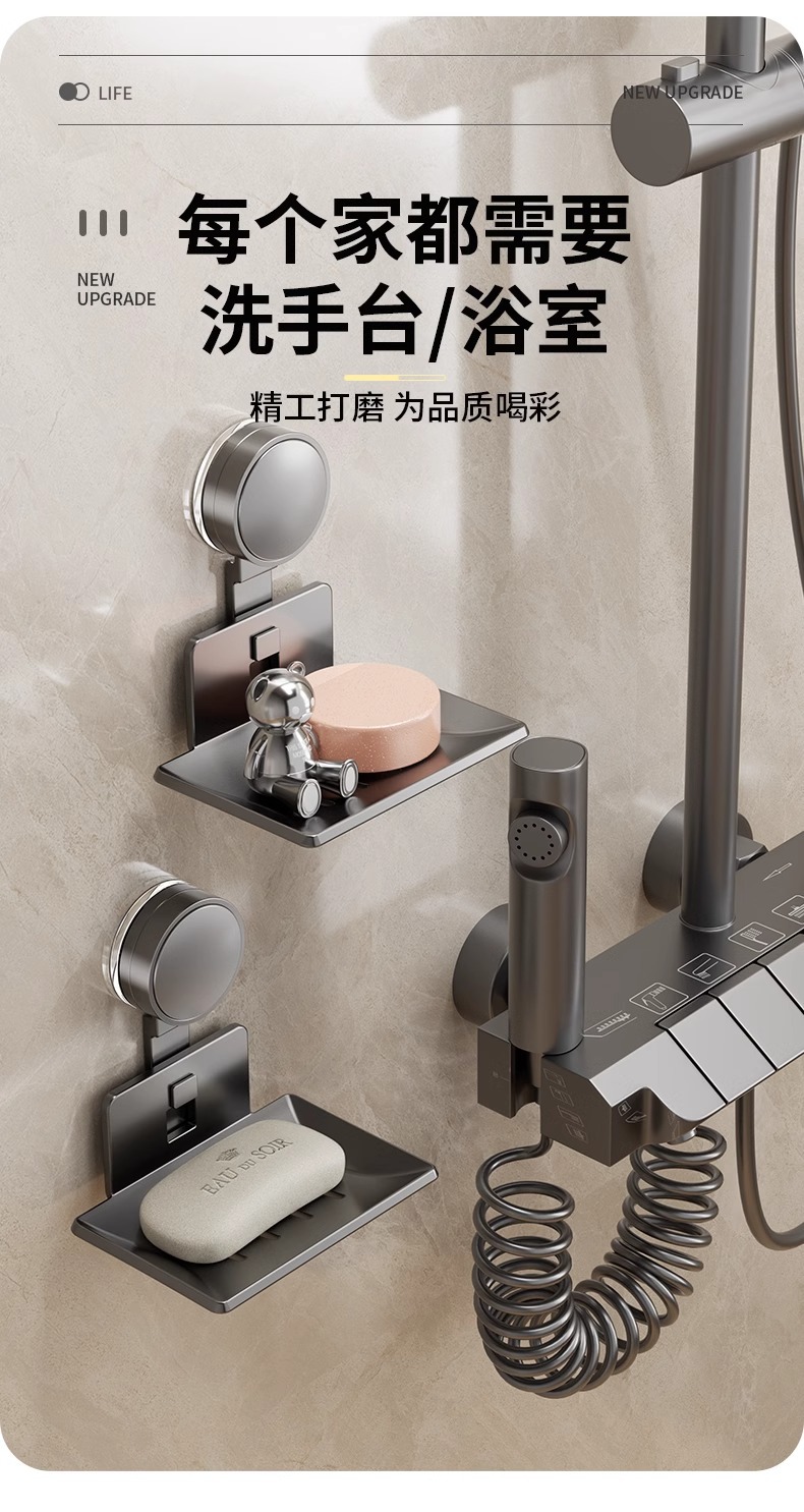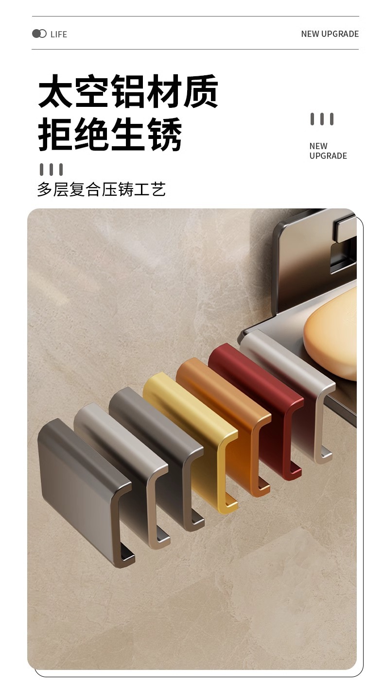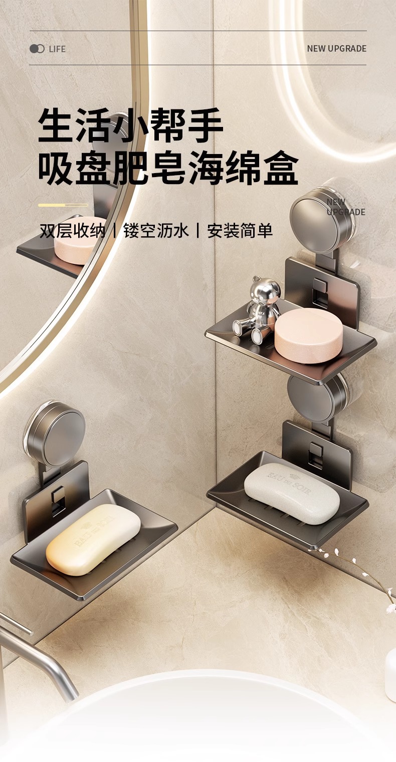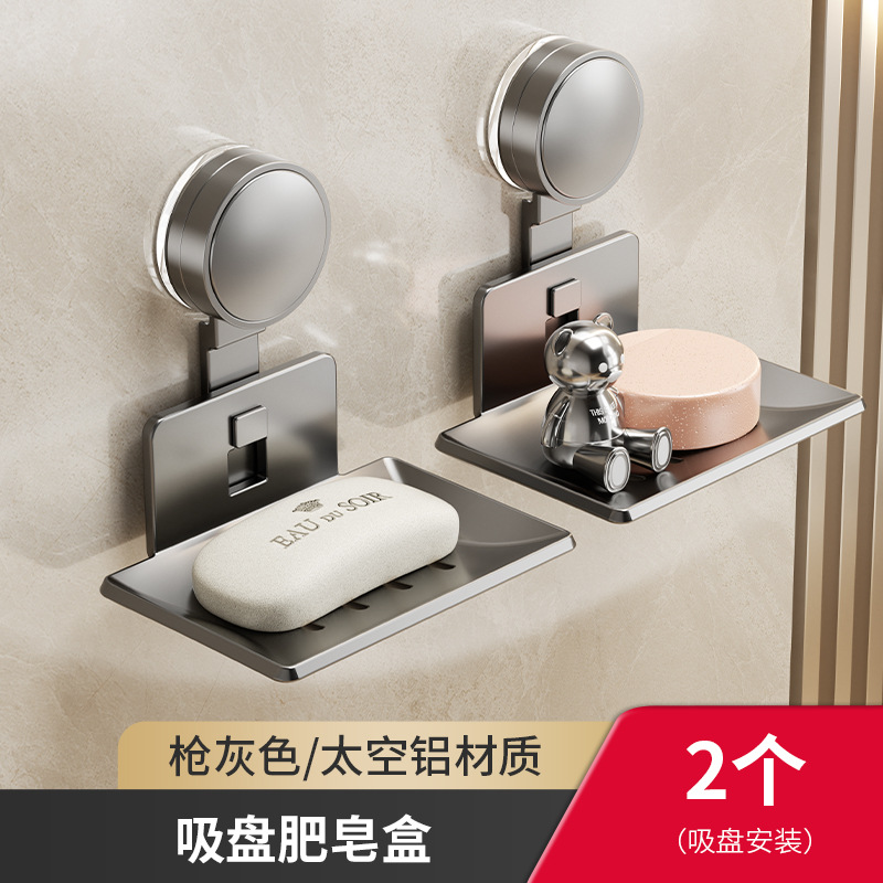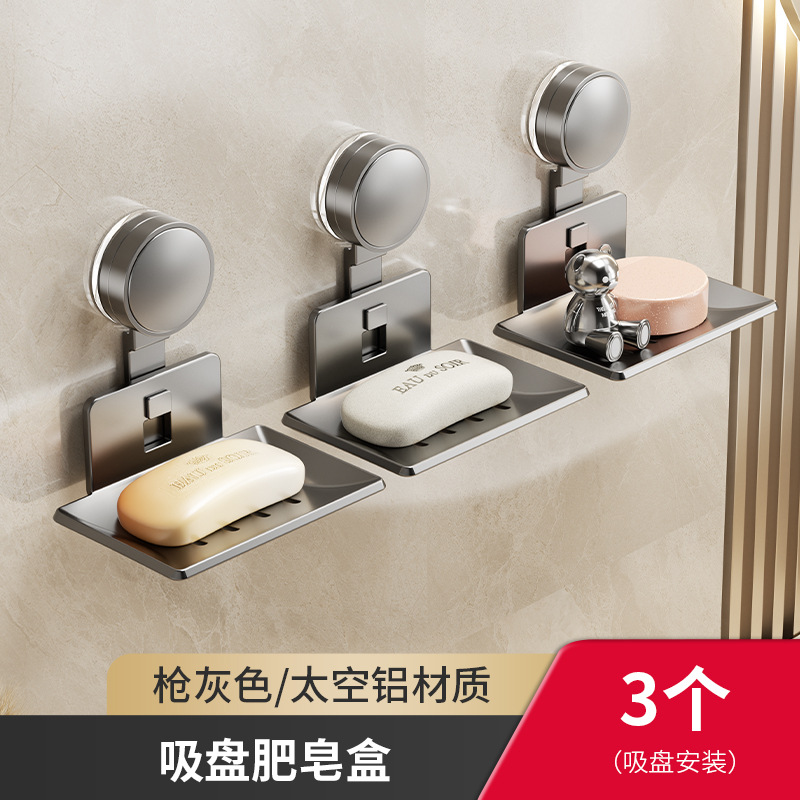 석션 컵 비누 상자 벽걸이 형 펀치없는 공간 알루미늄 욕실 비누 랙 가정용 벽 보관 드레인 비누 상자
