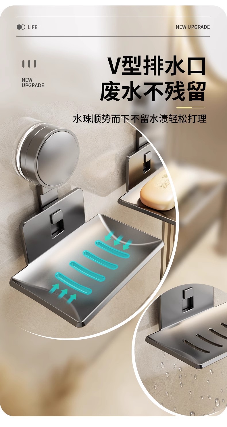 석션 컵 비누 상자 벽걸이 형 펀치없는 공간 알루미늄 욕실 비누 랙 가정용 벽 보관 드레인 비누 상자스토어 가기