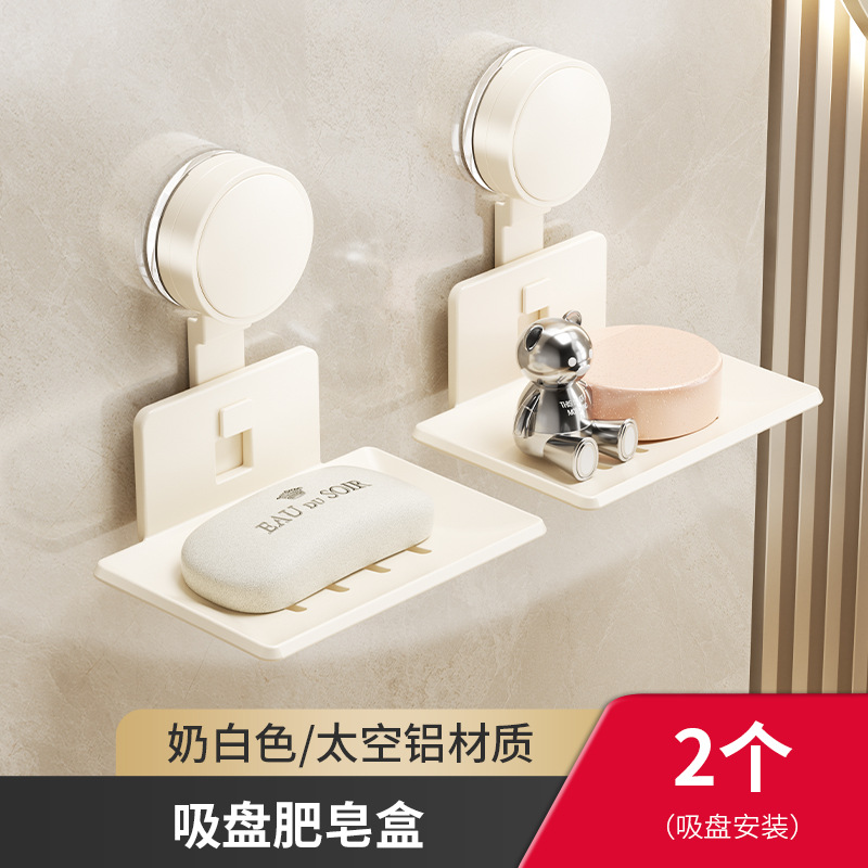 • 흡입 컵 설치| 밀크 화이트 - 비누 상자*2