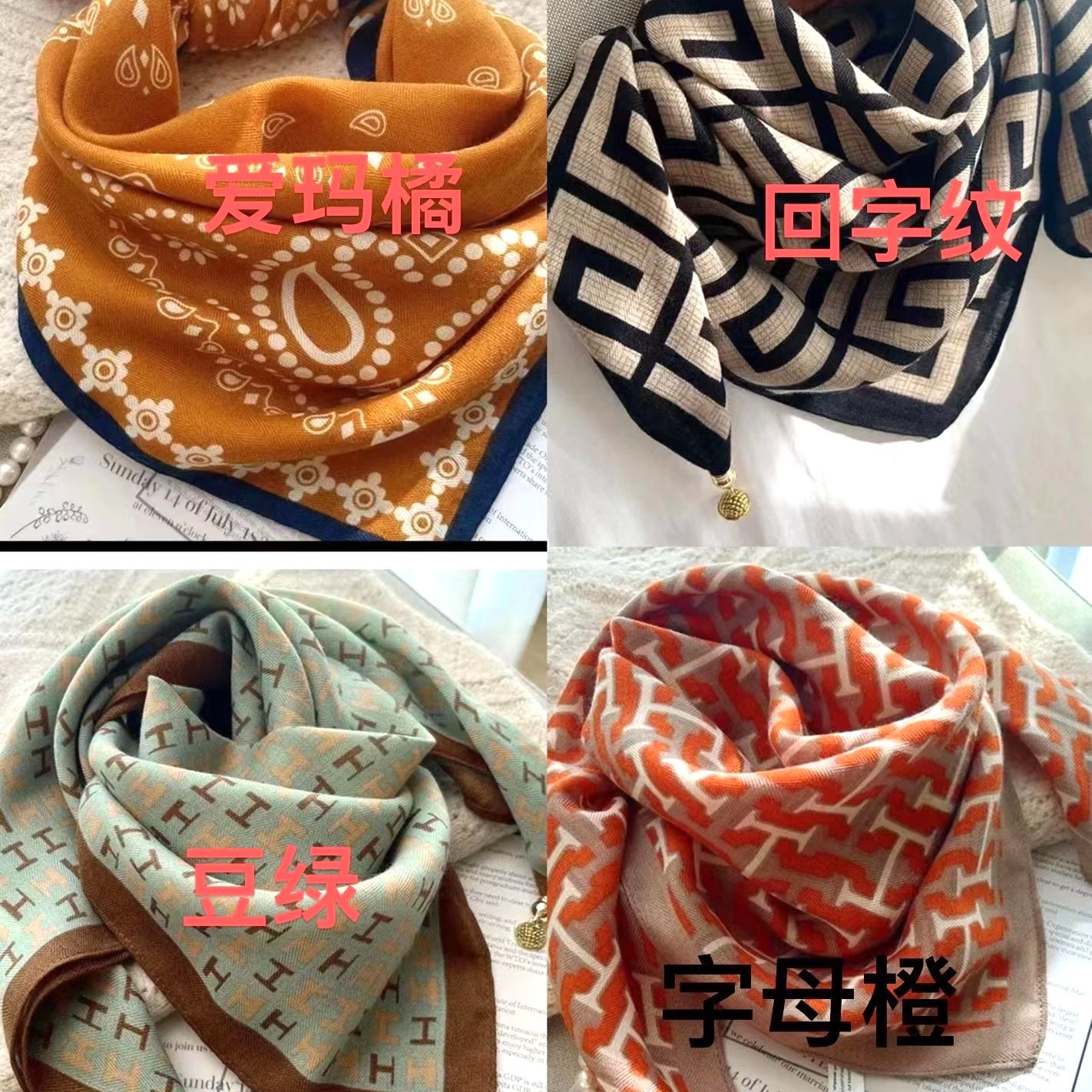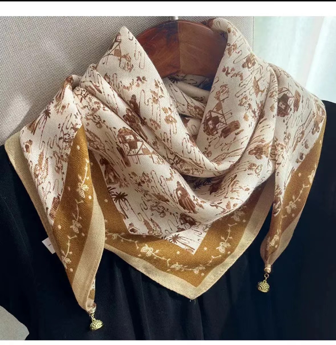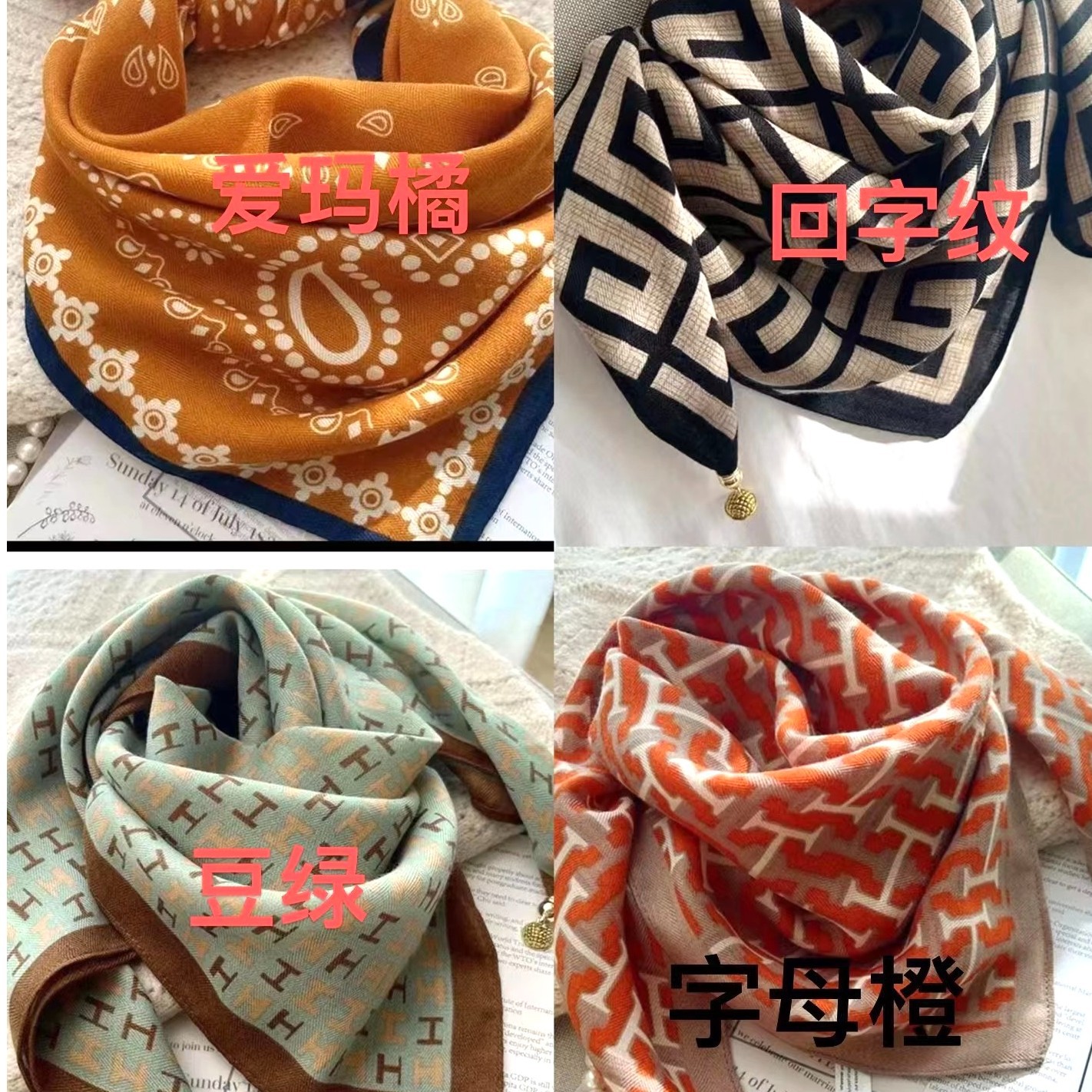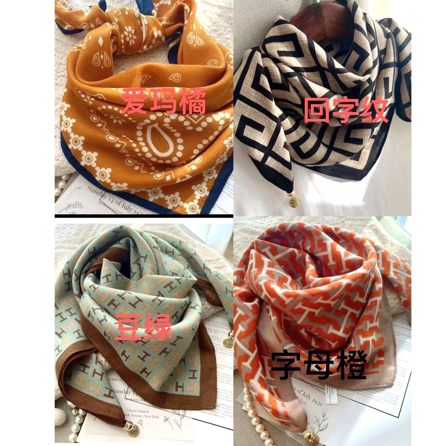 2025년 신상 자석 버클 삼각 스카프 목 보호용 면마 사각 스카프 여성용 가을 겨울 스타일리시 스카프 다용도 스카프스토어 가기