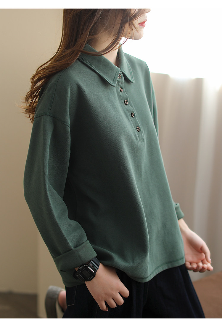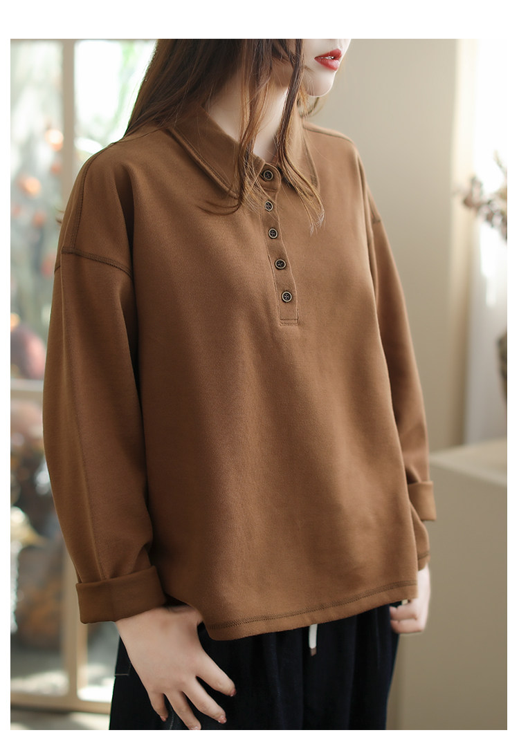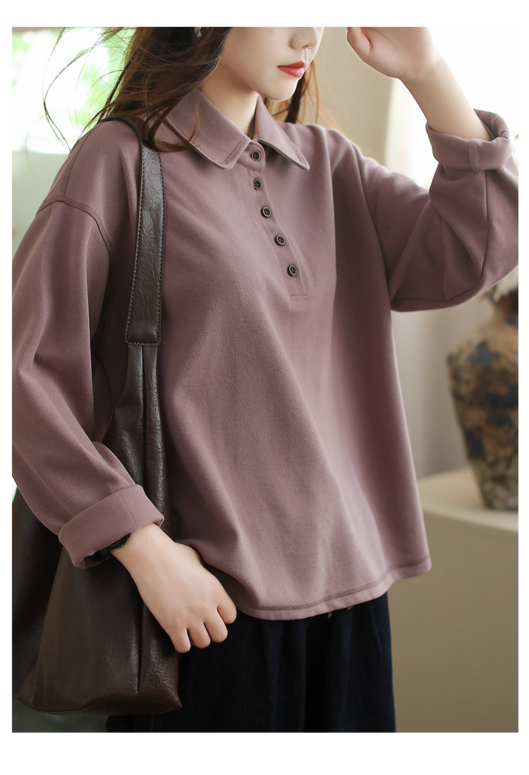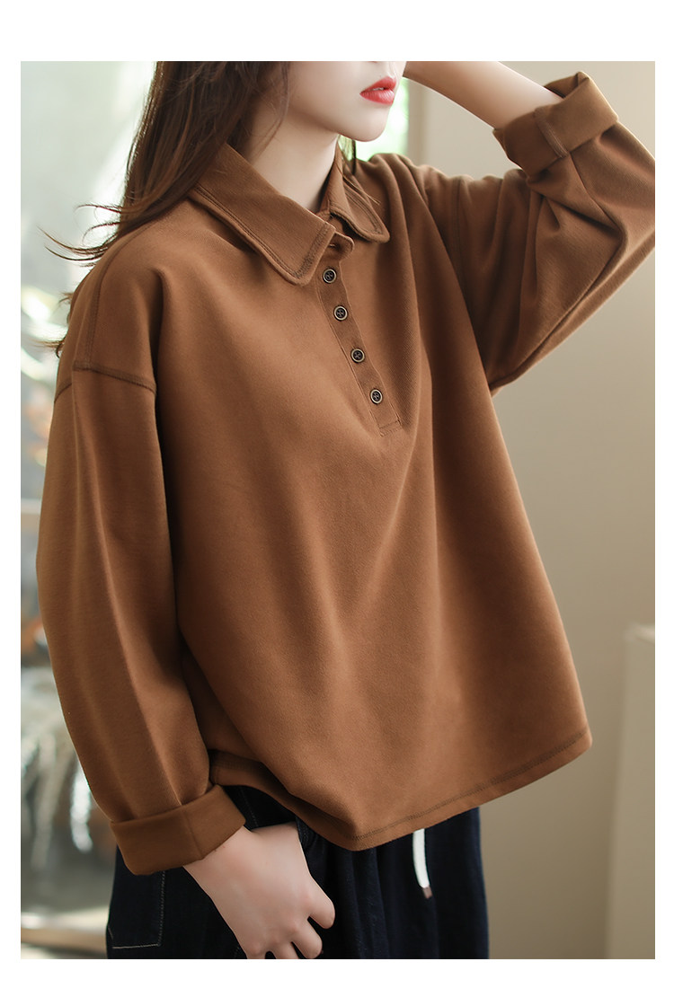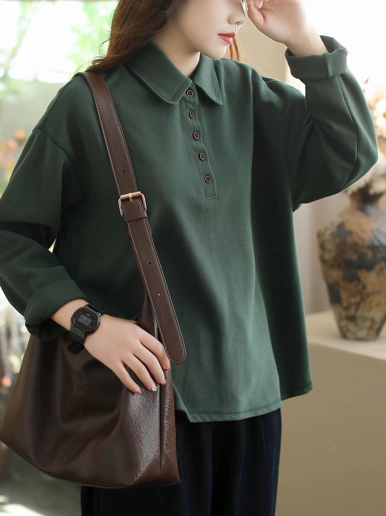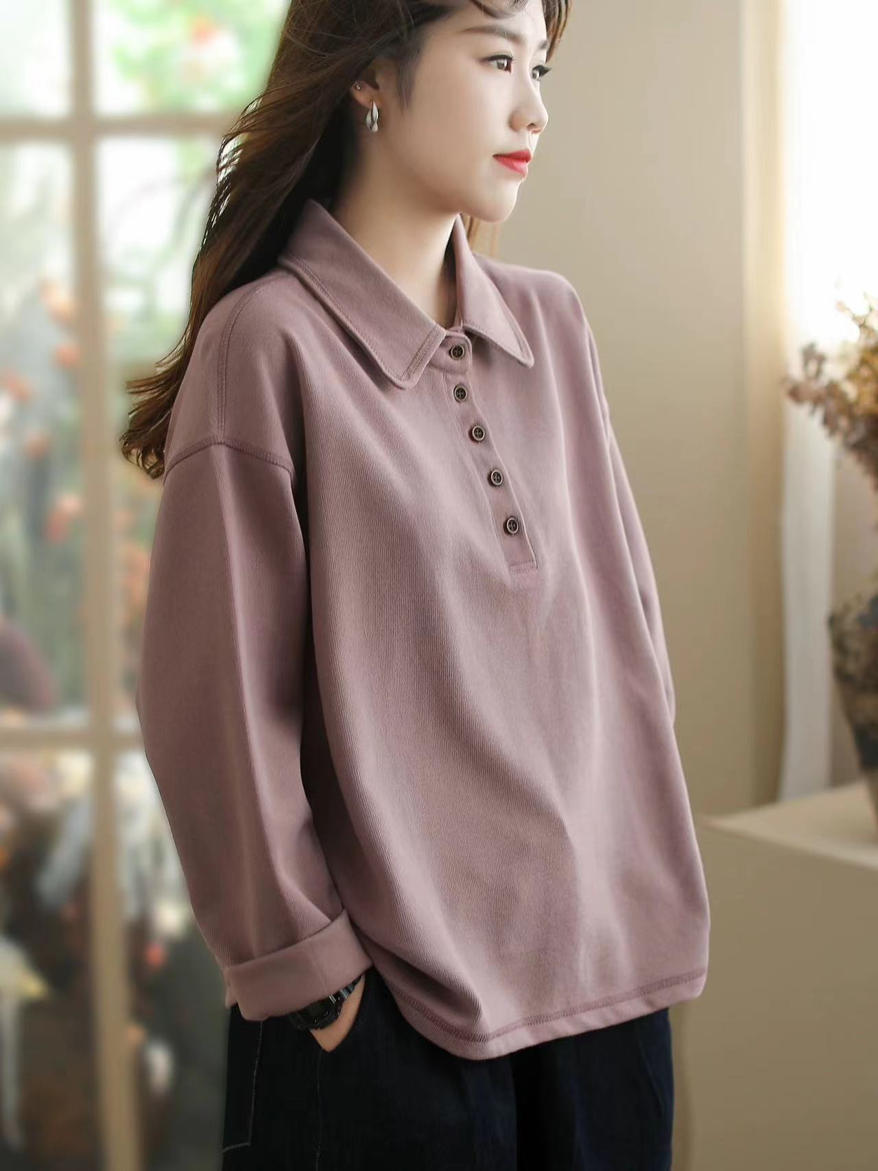 가을 새 땀 여성의 검은 느슨한 원래 예술적 면 캐주얼 통근 패션 여성 탑 2480