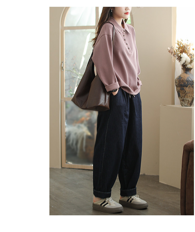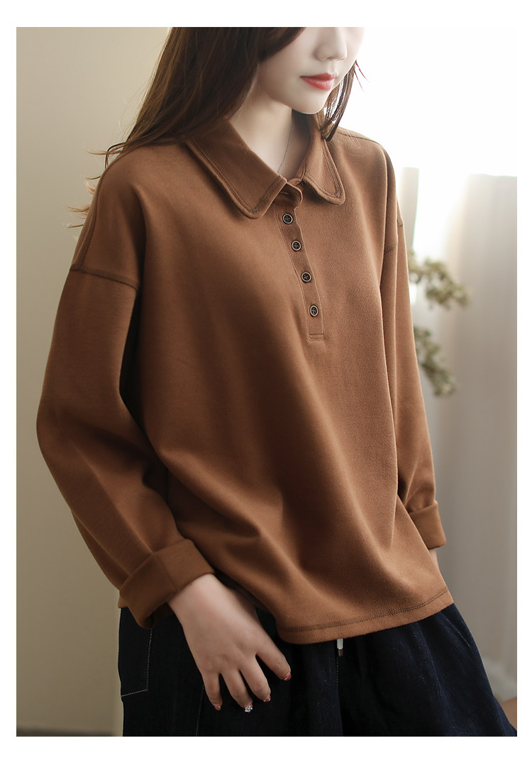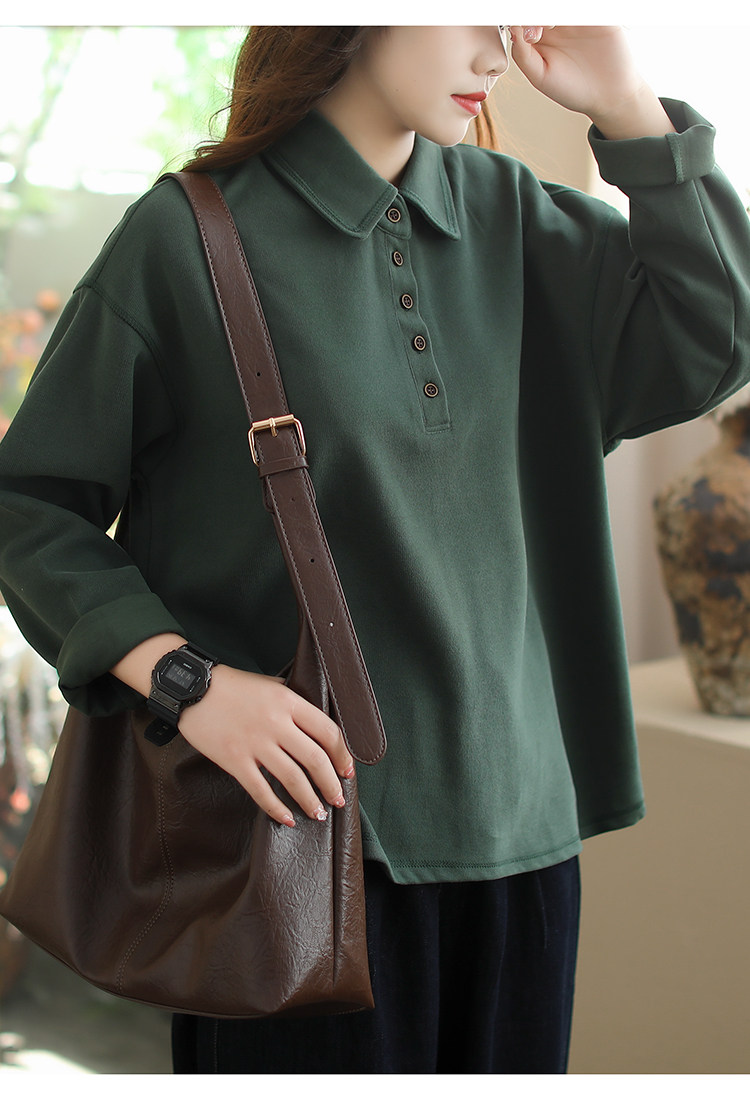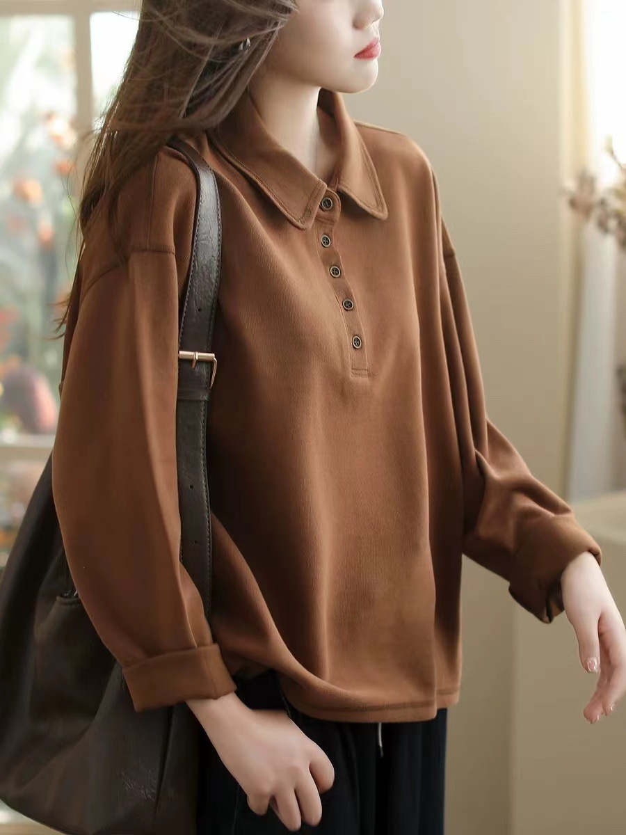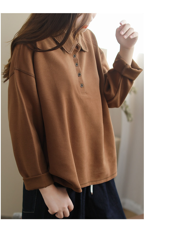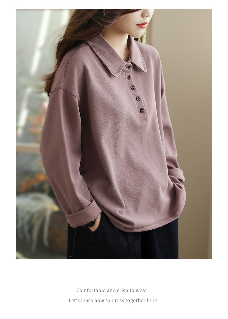 가을 새 땀 여성의 검은 느슨한 원래 예술적 면 캐주얼 통근 패션 여성 탑 2480