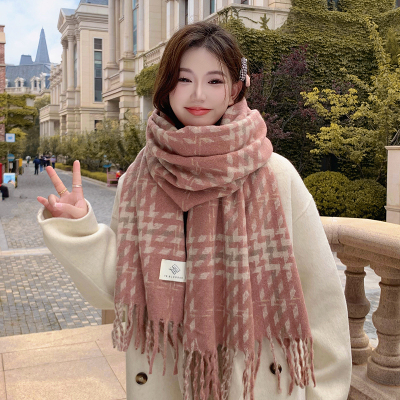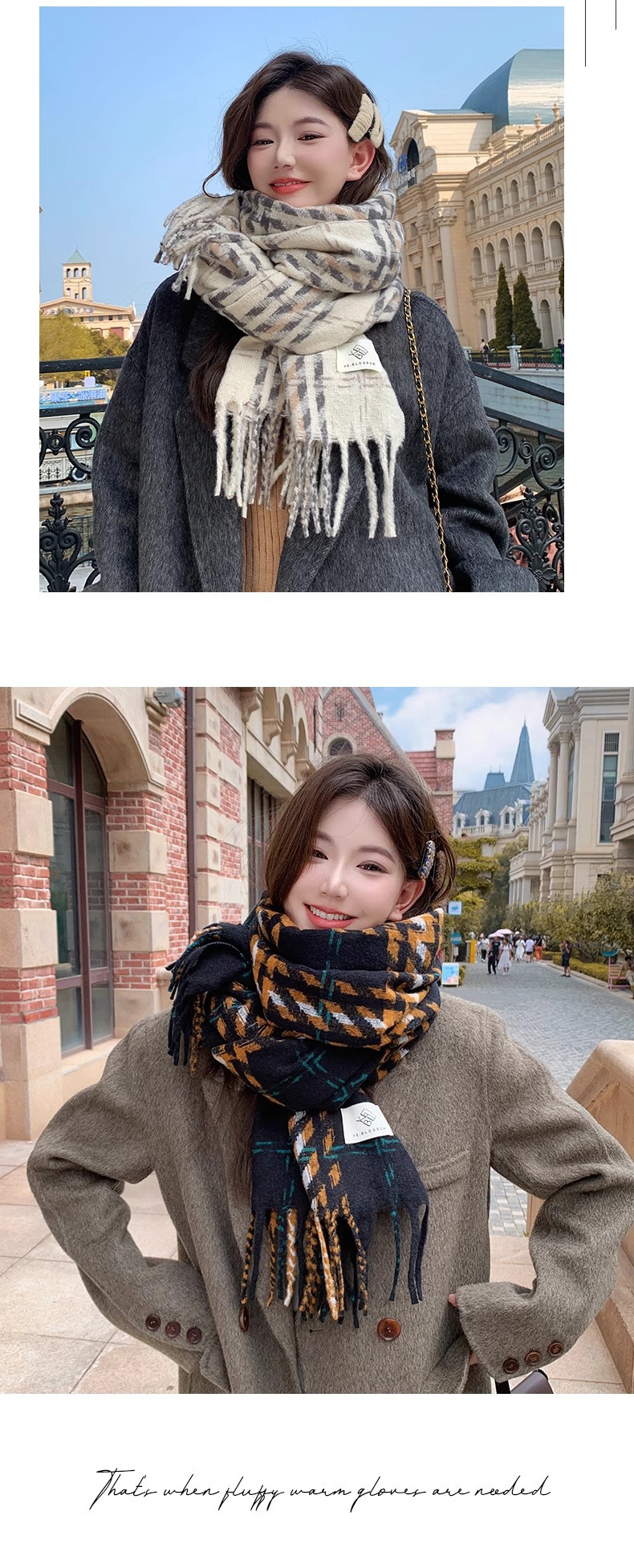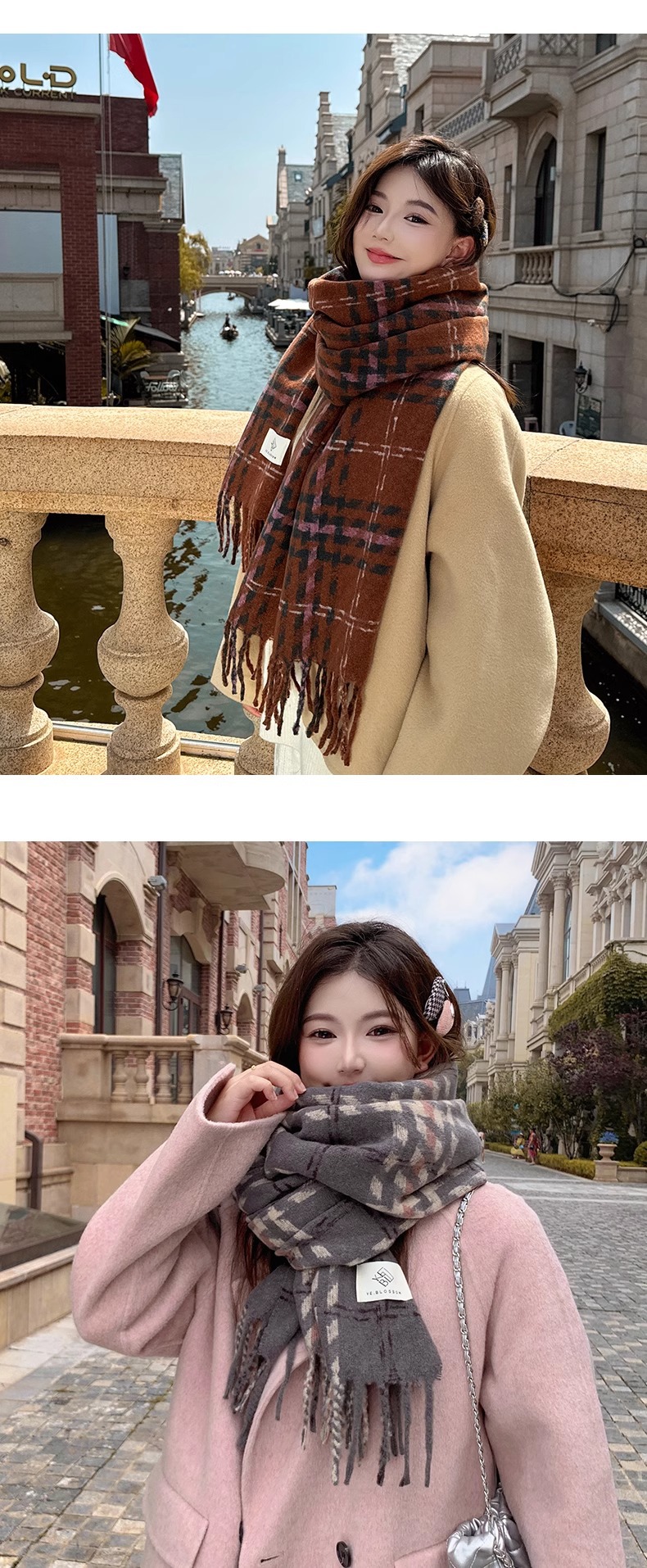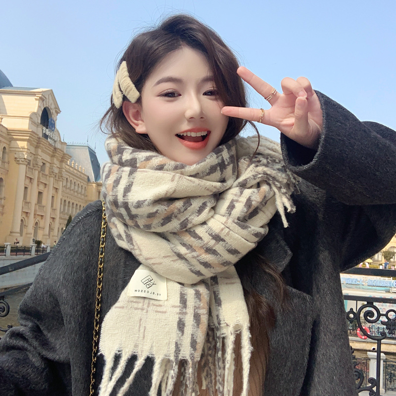 2024 새로운 한국식 클래식 격자 무늬 스카프 여성 가을 겨울 패션 천 라벨 체크 무늬 올매치 따뜻한 학생 스카프스토어 가기