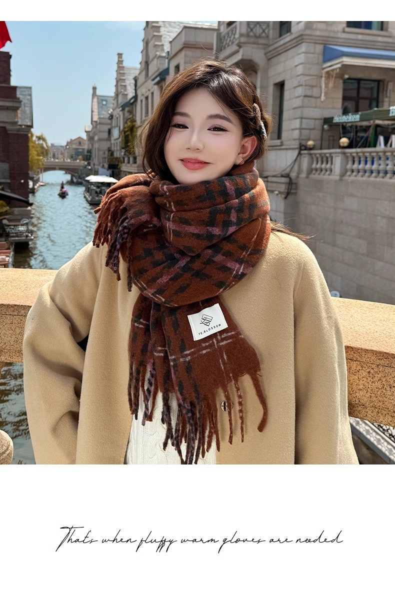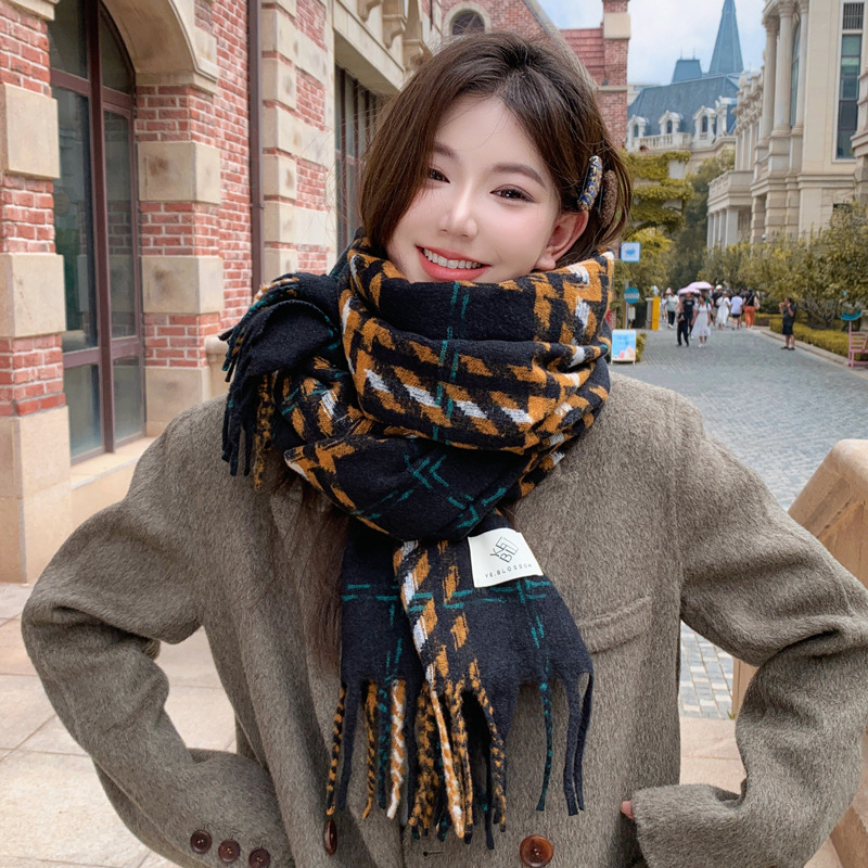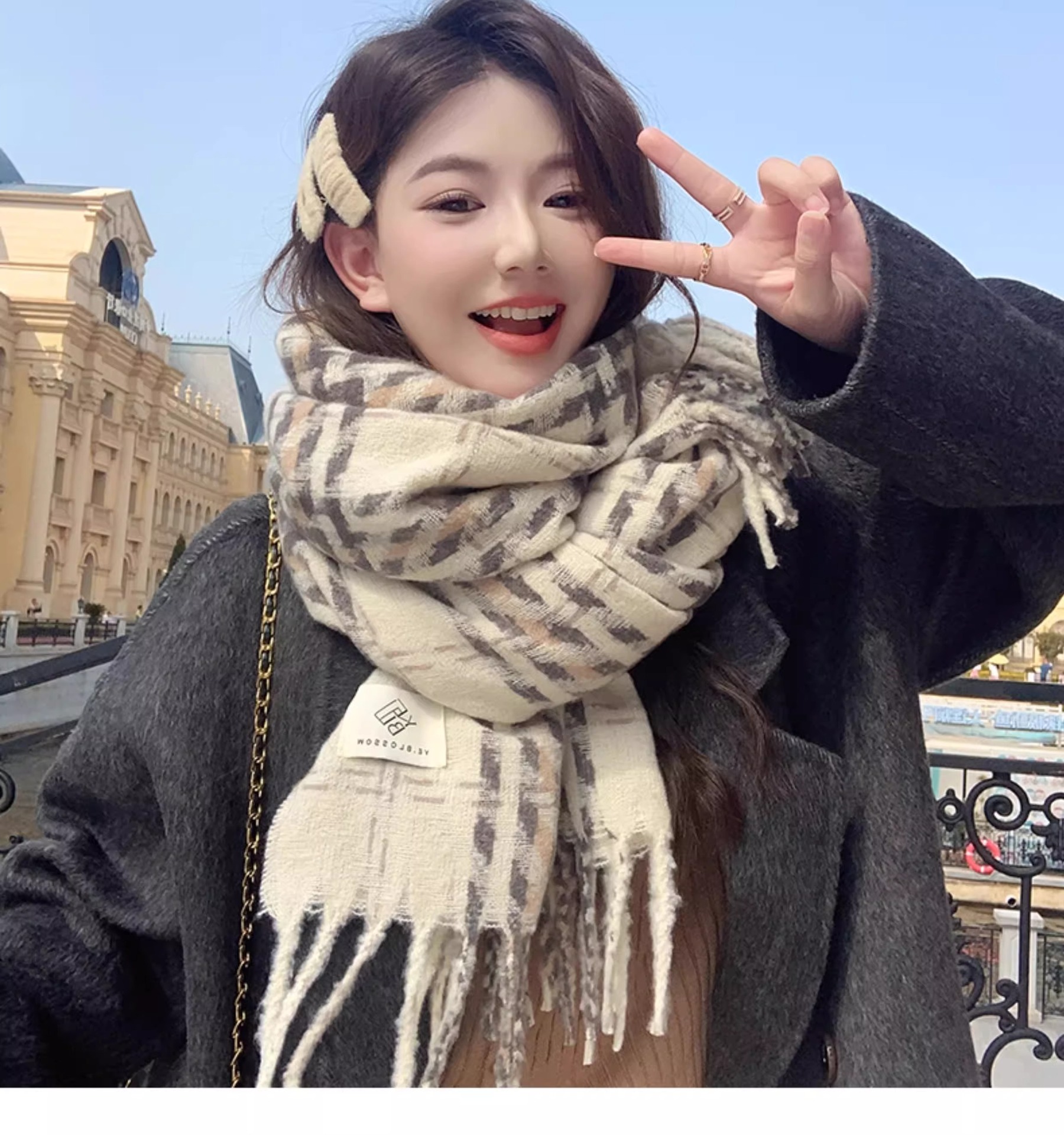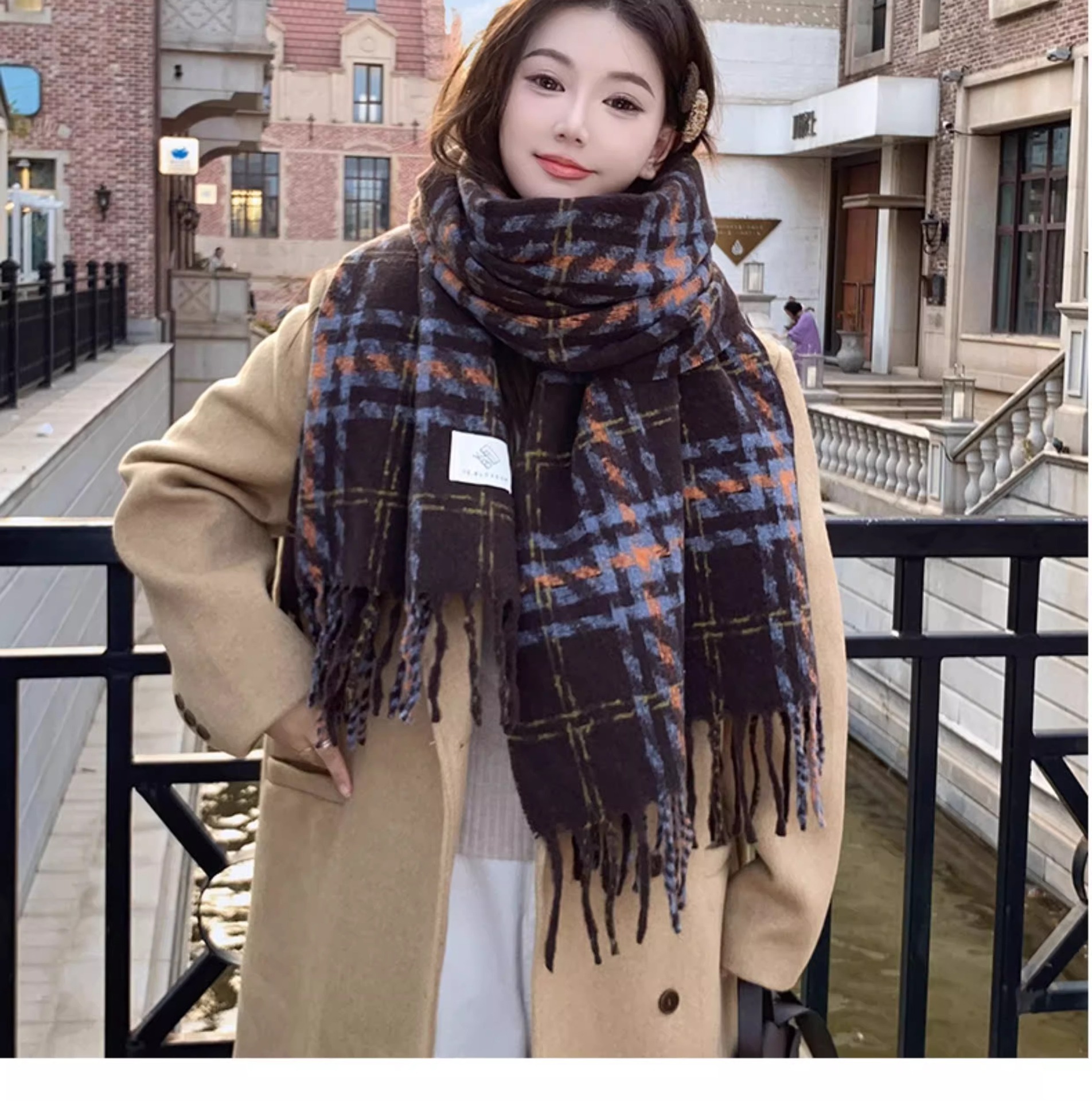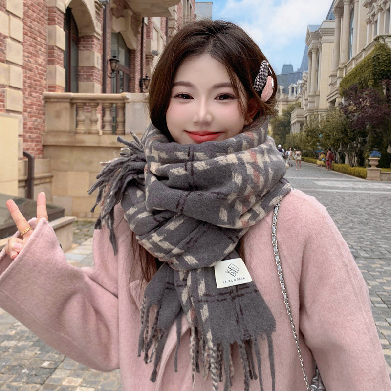 2024 새로운 한국식 클래식 격자 무늬 스카프 여성 가을 겨울 패션 천 라벨 체크 무늬 올매치 따뜻한 학생 스카프