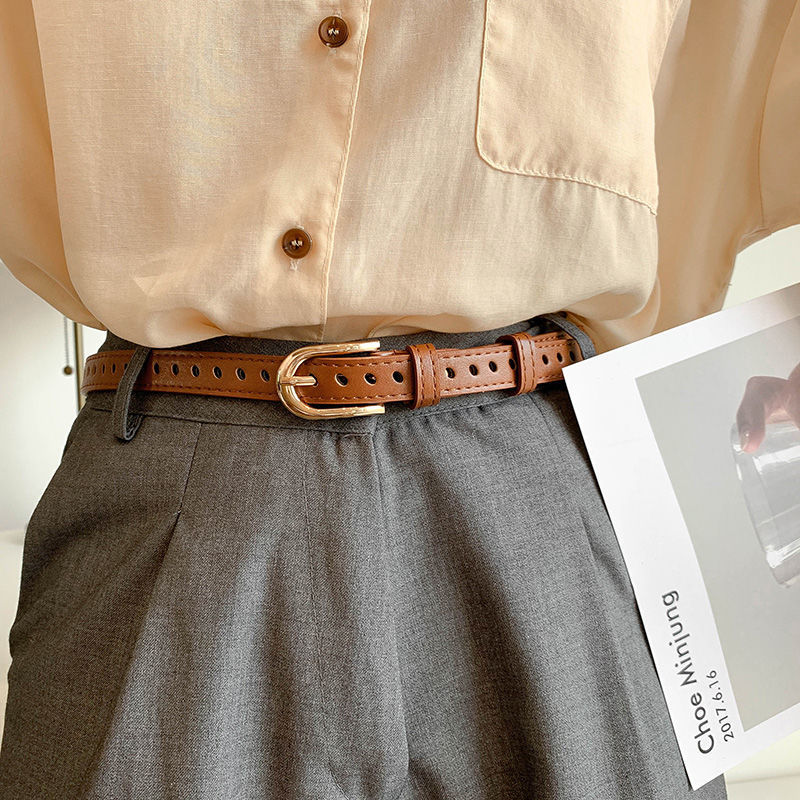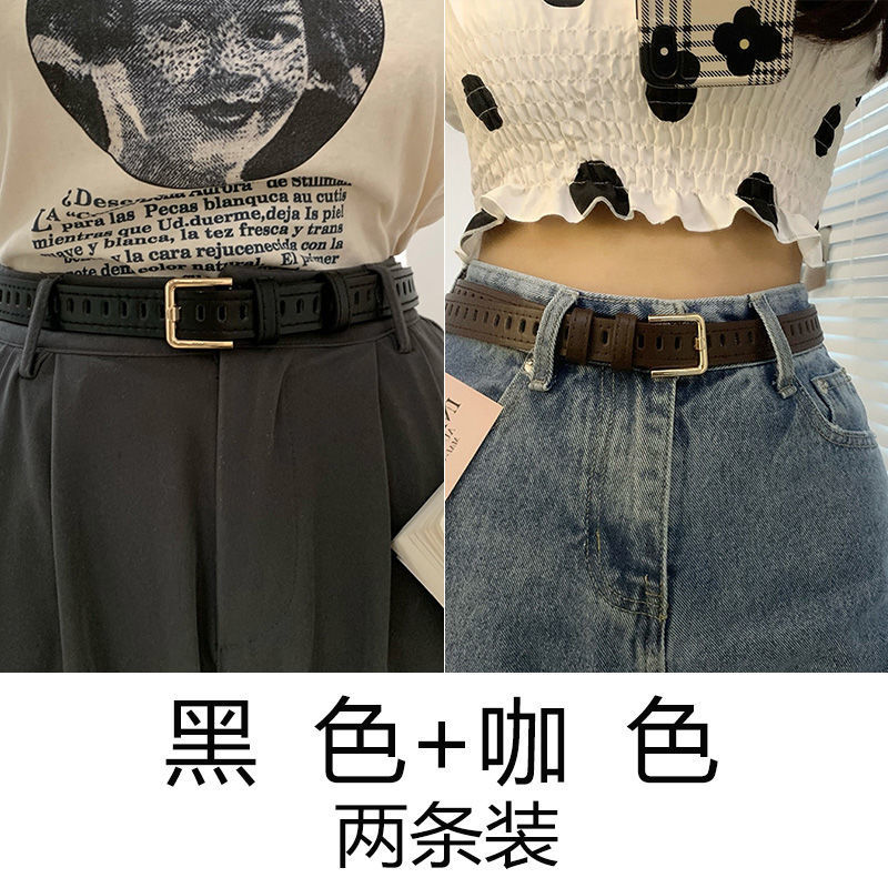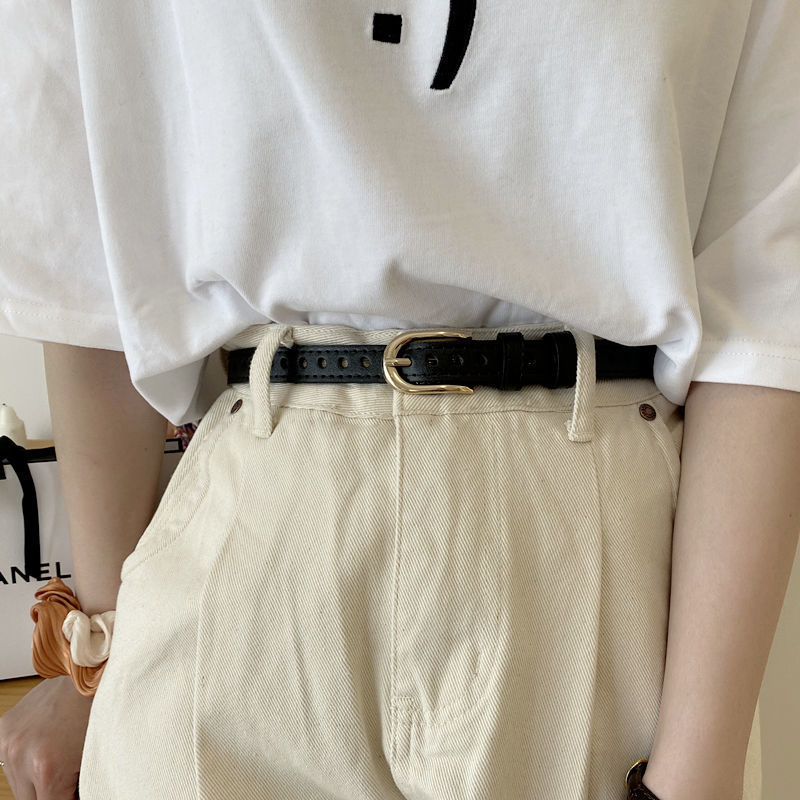 Shahe 새로운 한국식 여성 와이드 벨트 복고풍 라운드 버클 독특한 풀홀 벨트 올 매치 학생 캐주얼 청바지
