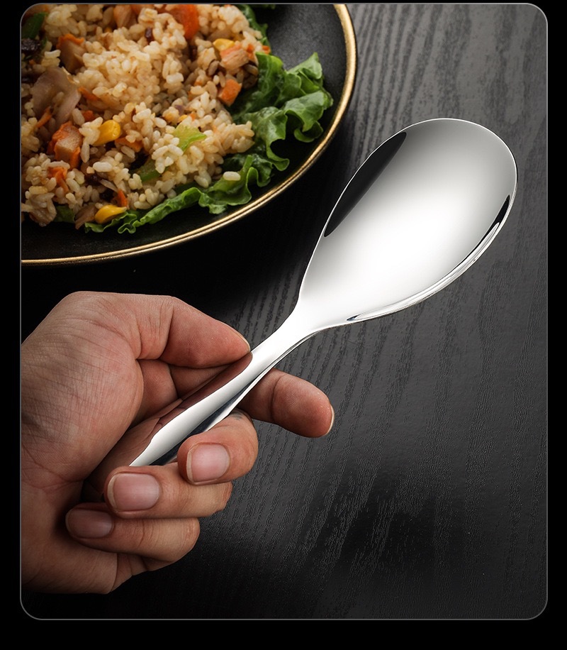 스테인레스 스틸 쌀 숟가락 가정용 수프 스푼 큰 숟가락 긴 손잡이 큰 쌀 숟가락 비 스틱 쌀 숟가락 도매