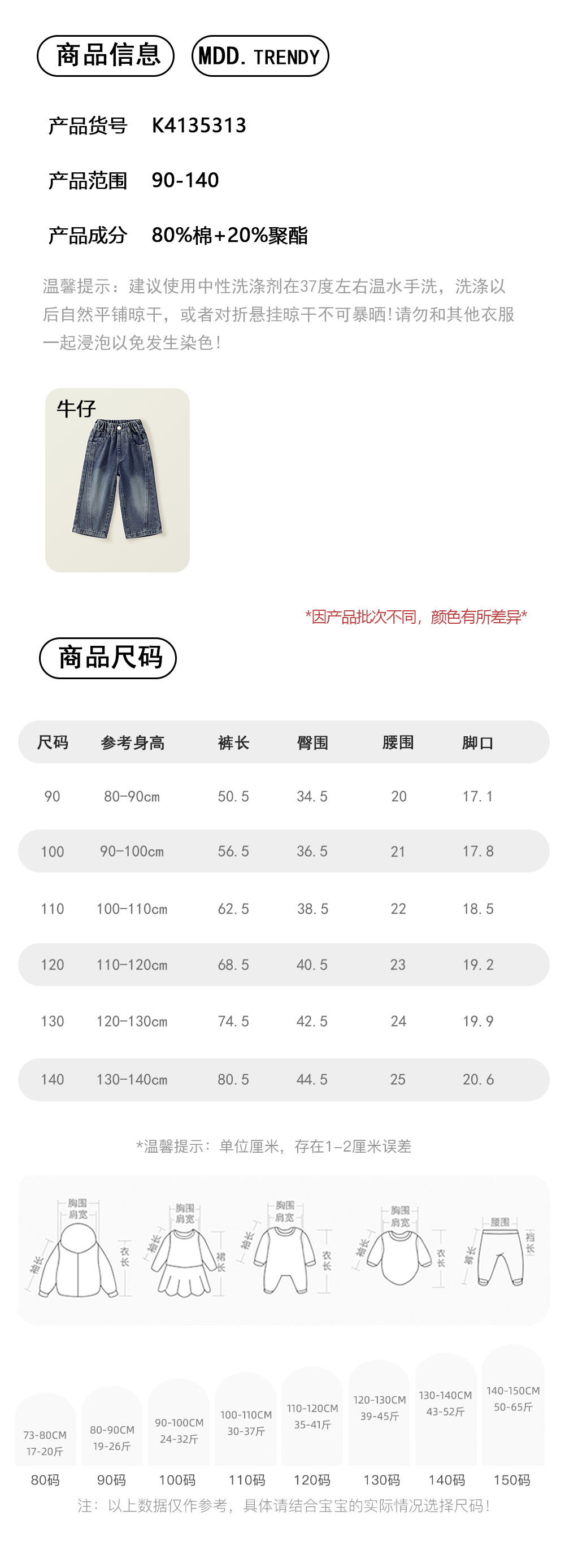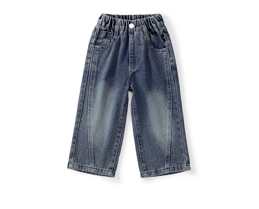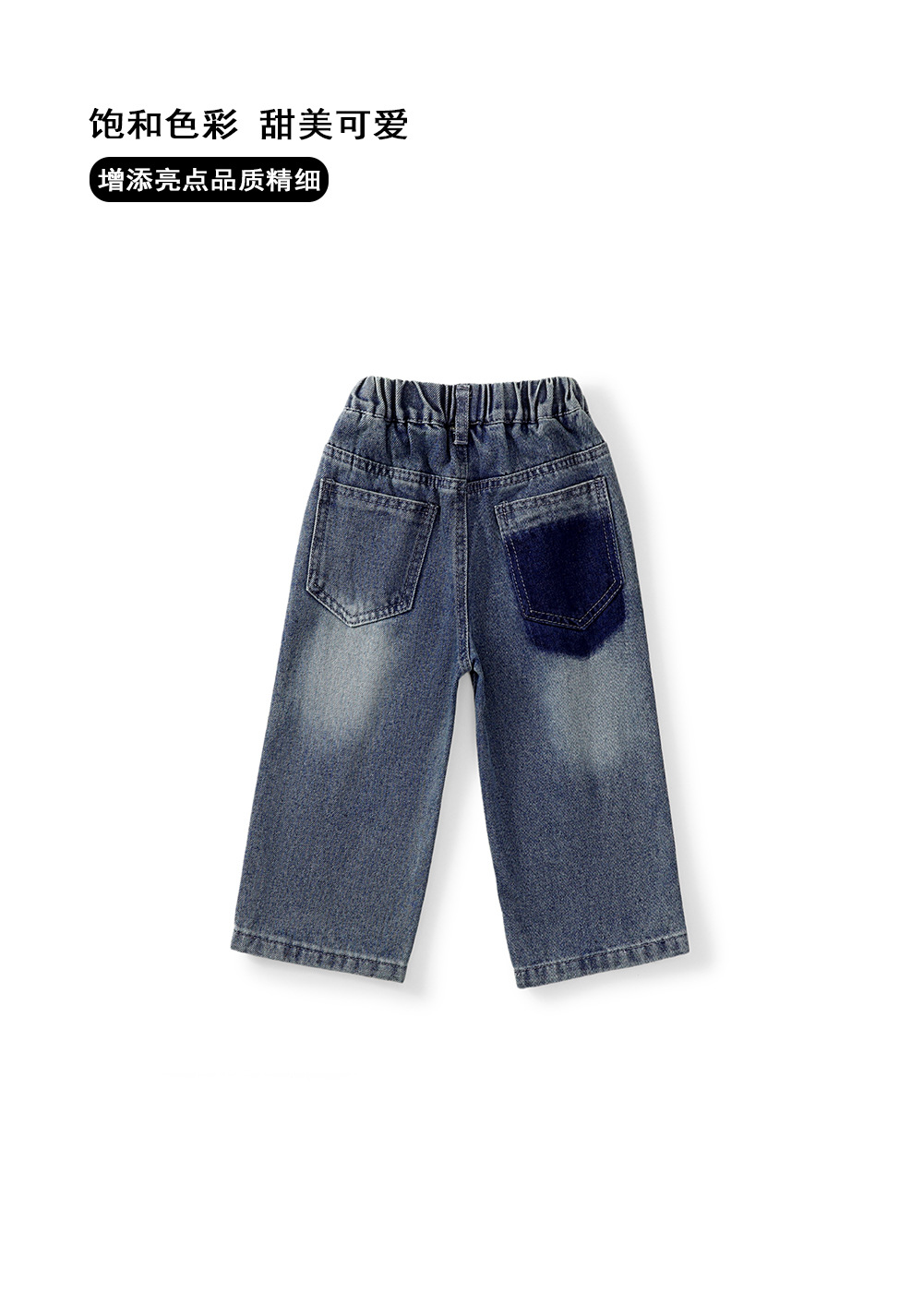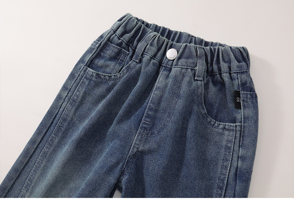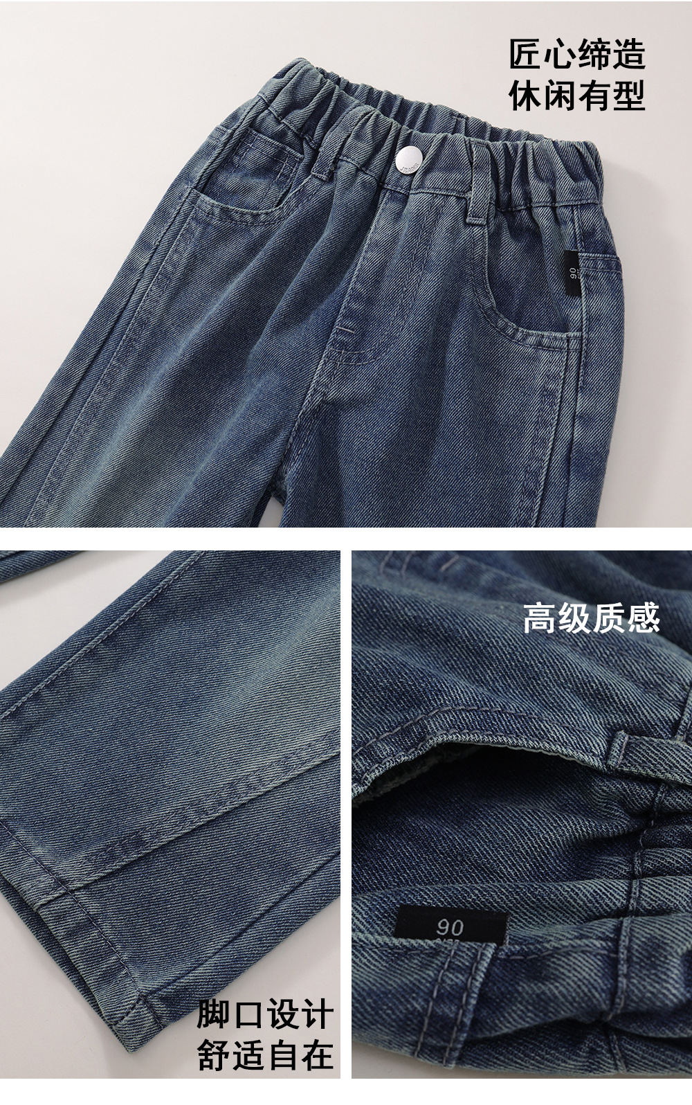 MDD 아동복 2024 가을 새로운 디자인 스티칭 미국 스타일 세탁 청바지 느슨한 스트레이트 바지