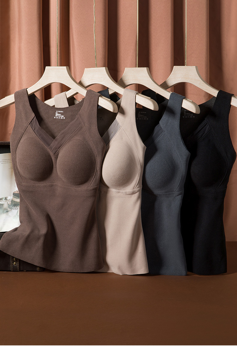 가을과 겨울 그래 핀 따뜻한 조끼 여성용 겨울복-무료 브래지어 아름다운 등 고정 컵 여자베이스 탑 스틸 링 없음