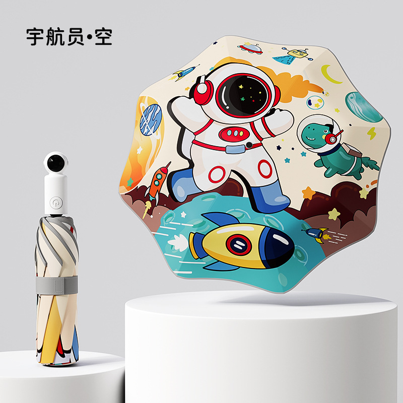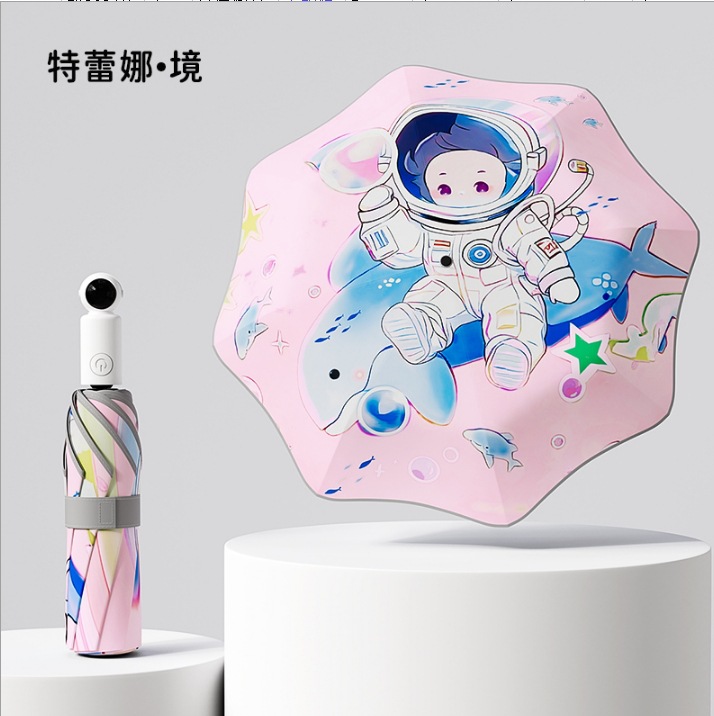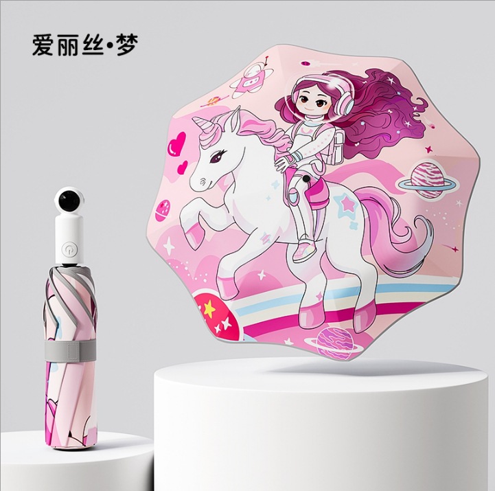 어린이와 소녀 및 학생을위한 안전한 둥근 우산 이중 목적 접기 자동 우산