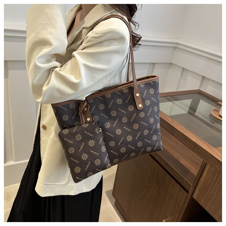 대용량 어깨 여성용 가방 질감 부드러운 가죽 2024 새로운 유행 핸드백 유럽과 미국의 슬랙 토트 백스토어 가기