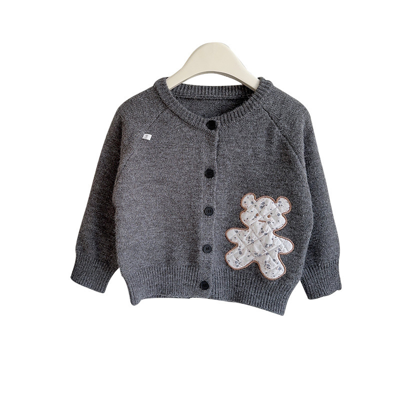 2024 여자 카디건 스웨터 봄과 가을 새로운 도착 아기 소녀 귀여운 꽃 데칼 곰 니트 스웨터