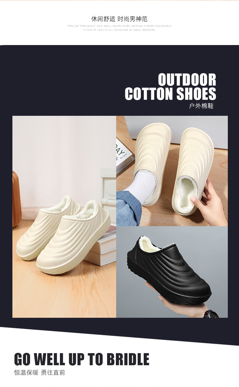국경 간 Baotou 면화 슬리퍼 남성용 겨울 방수 미끄럼 방지 홈 코튼 슈즈 기모 두꺼운 코튼 슬리퍼 주방 신발스토어 가기