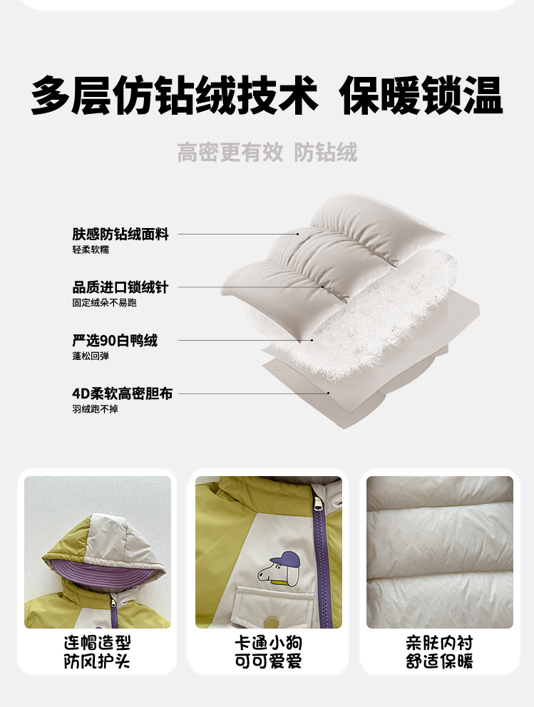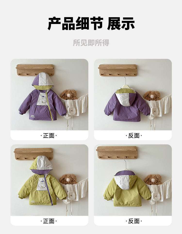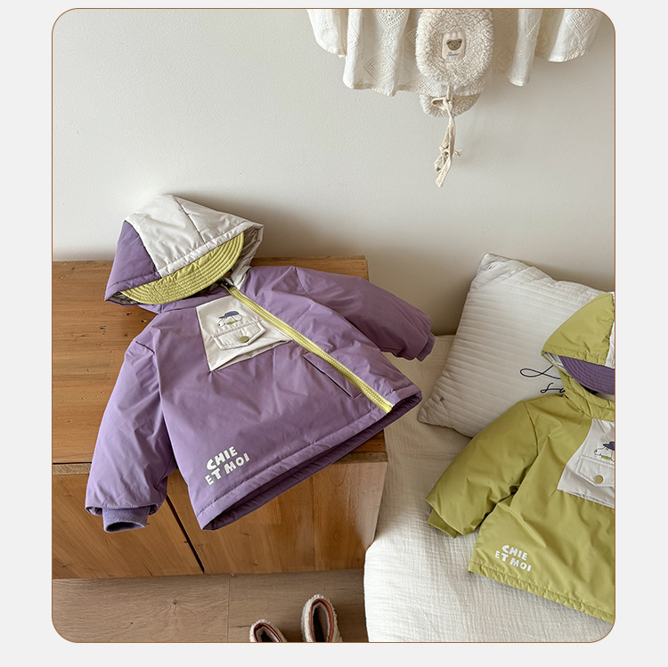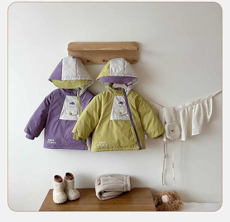 소년 다운 재킷 2024 겨울 옷 아기 기모 후드 의상 어린이 3 방첩 다운 재킷 클래스 A스토어 가기