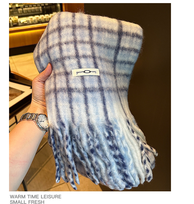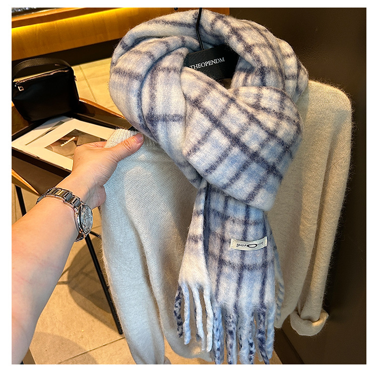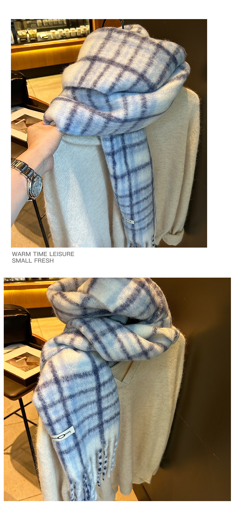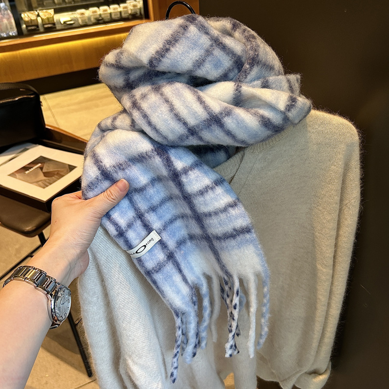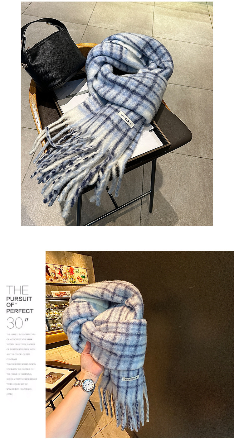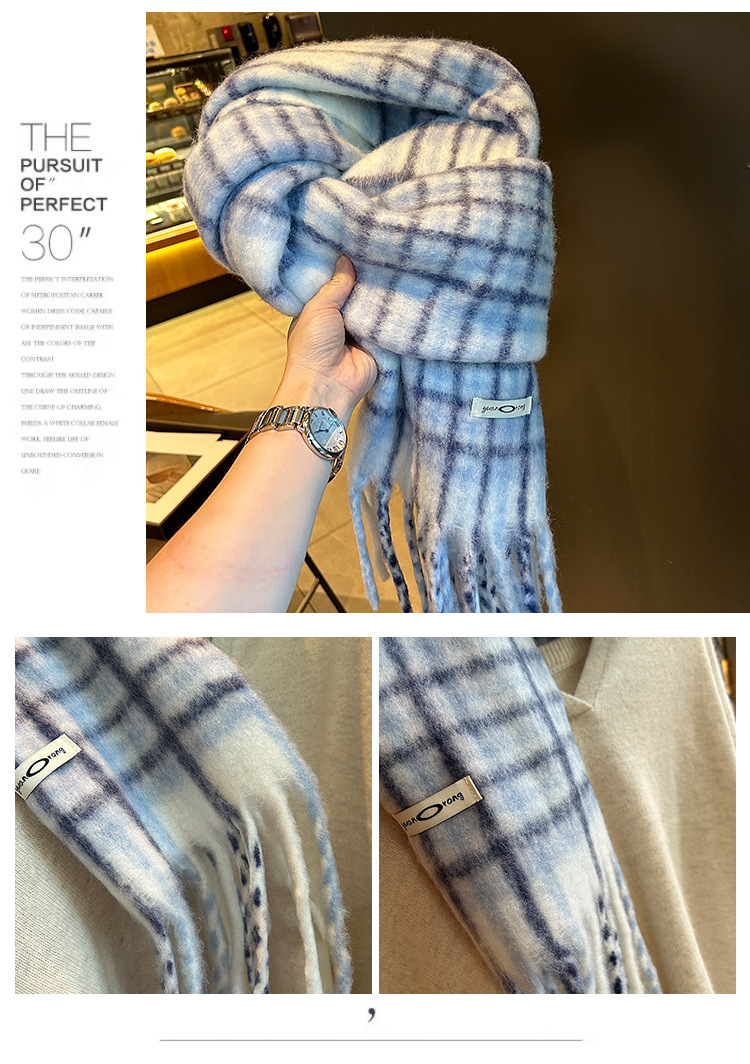 한국 주문 회전 양모 혼합 격자 무늬 스카프 여성 겨울 한국 스타일 학생 따뜻한 긴 목 두꺼운 목도리스토어 가기