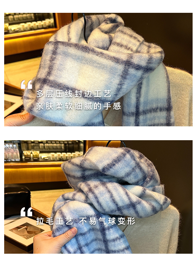 羊毛格子围巾女冬季2024新款韩版百搭洋气学生保暖长围脖加厚披肩