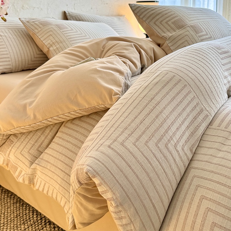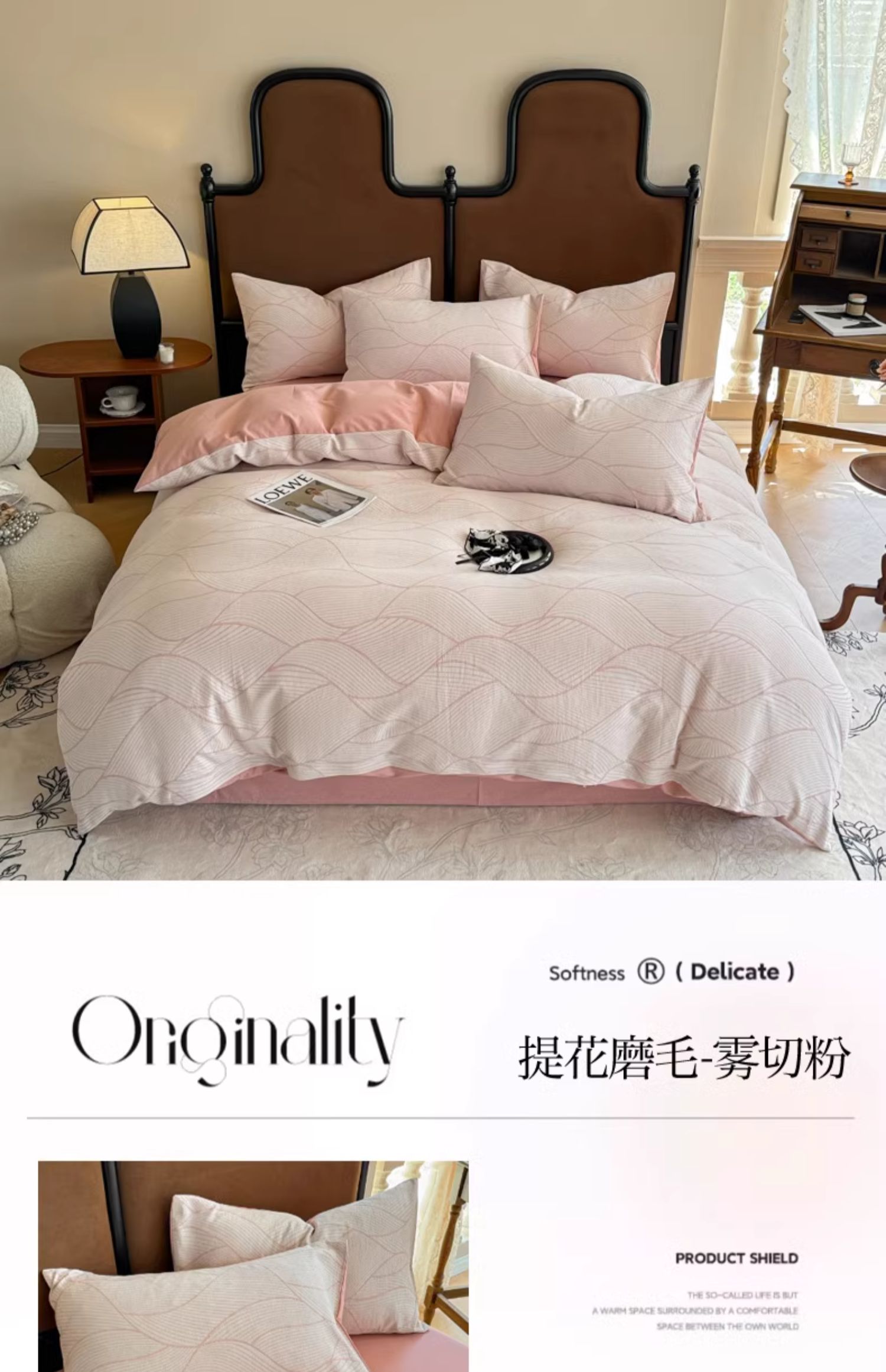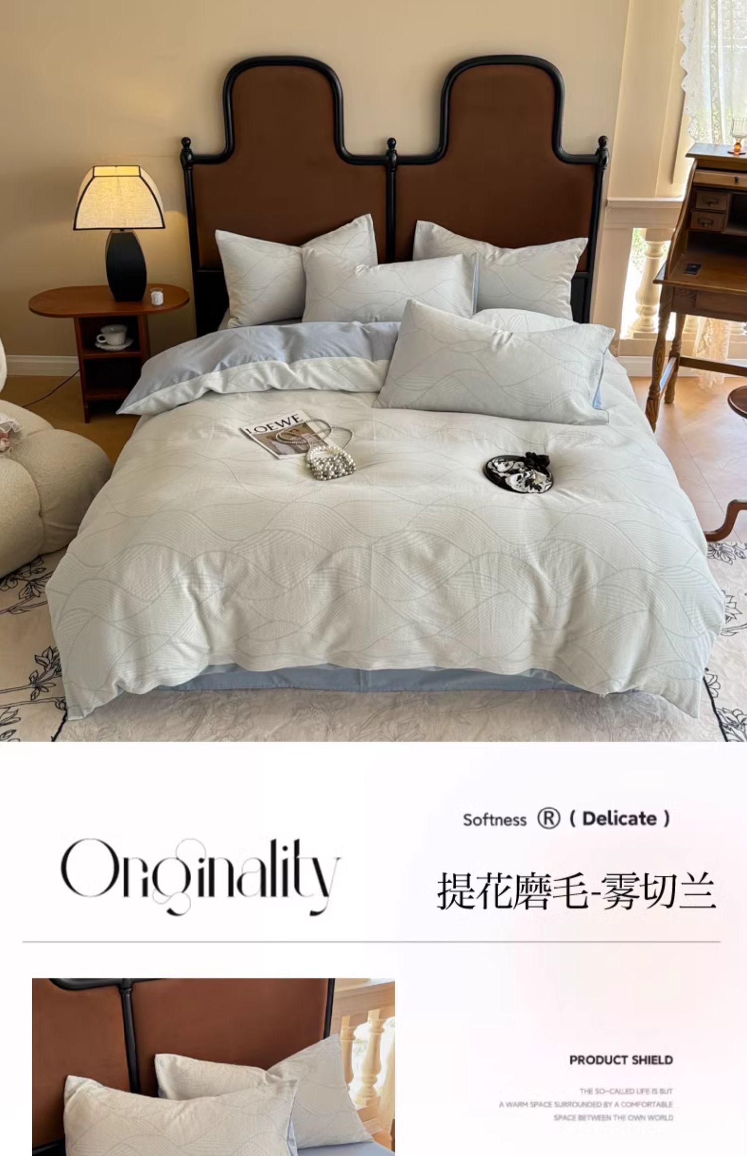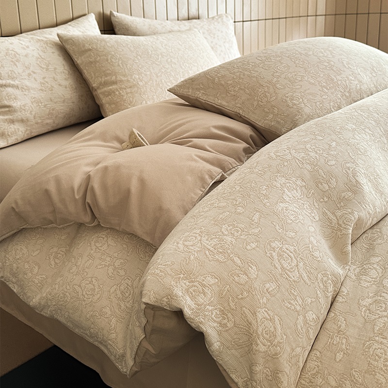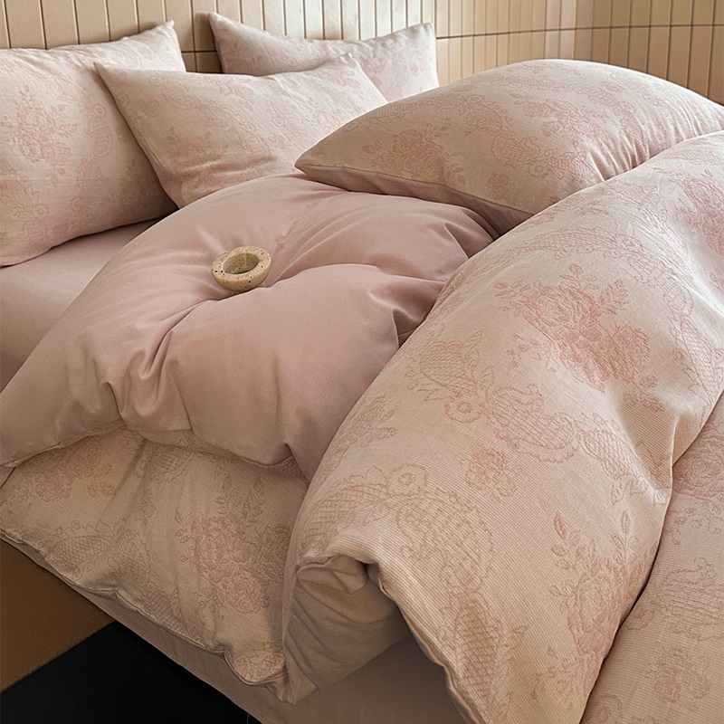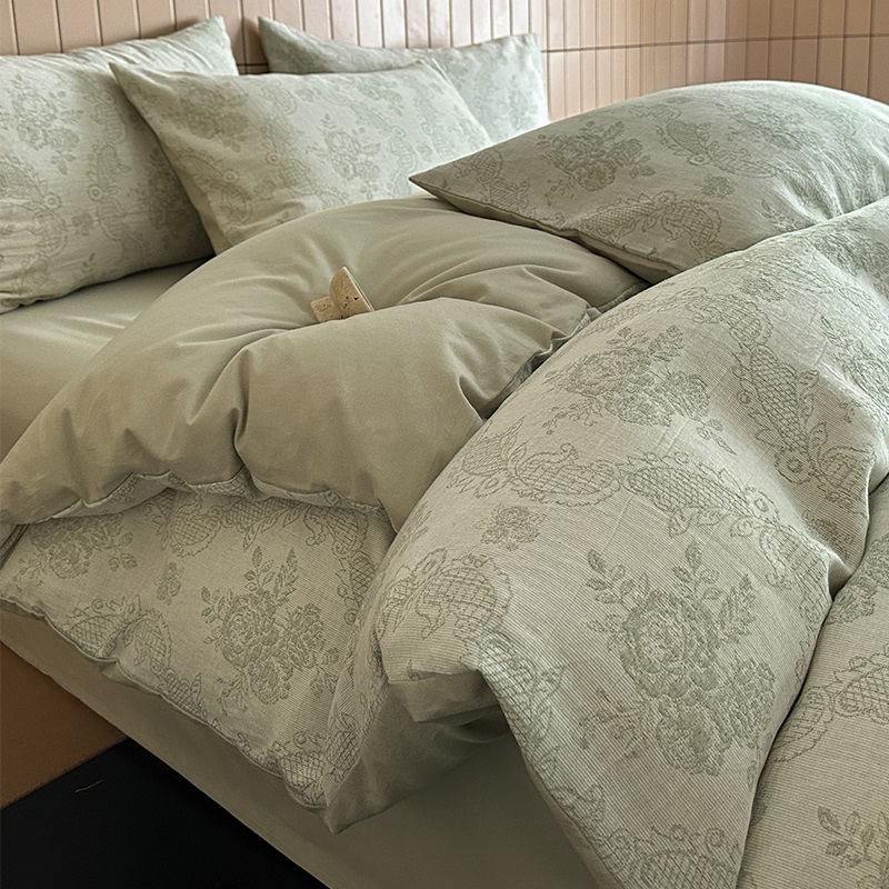 하이 엔드 클래스 더블 레이어 실 샌딩 침대 4 피스 세트 코튼 가을과 겨울 두꺼운 퀼트 커버 시트 3 피스 세트 4
