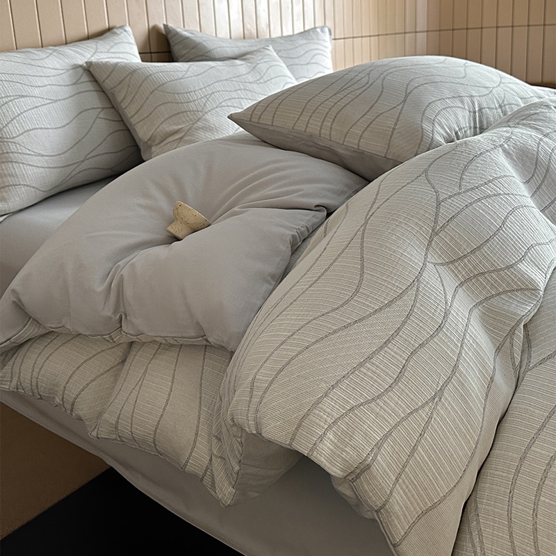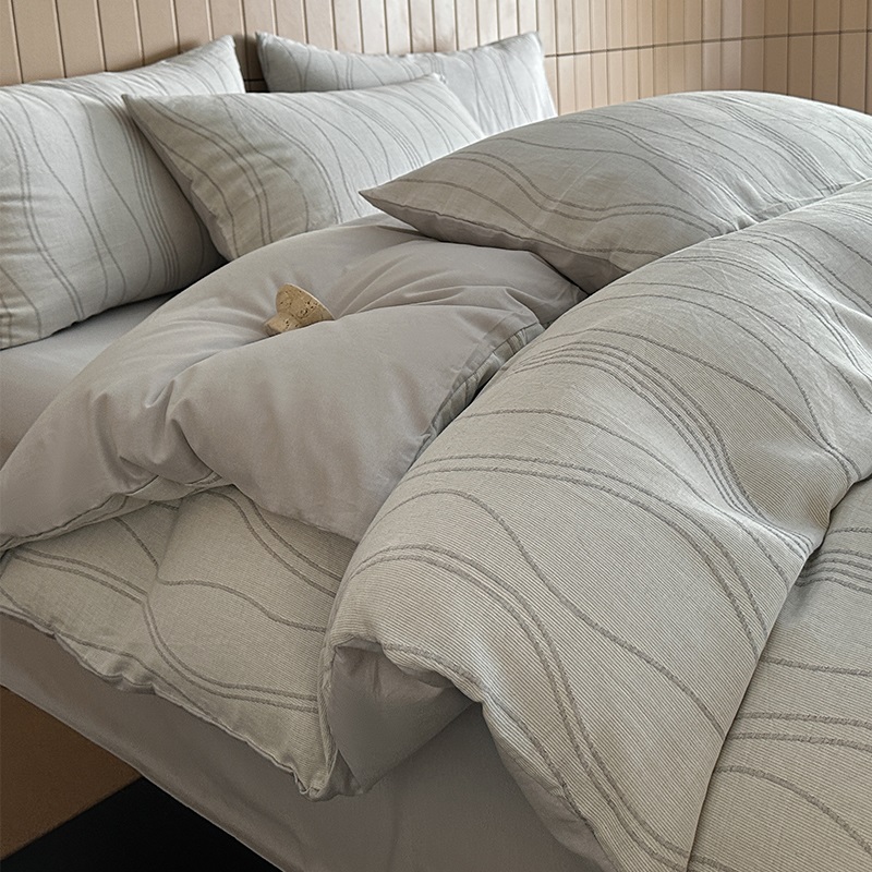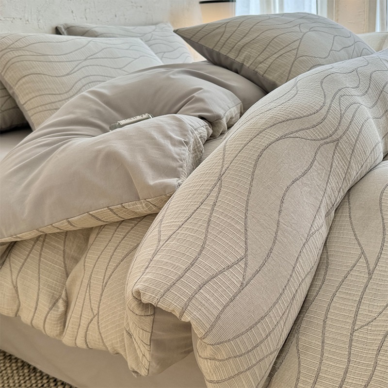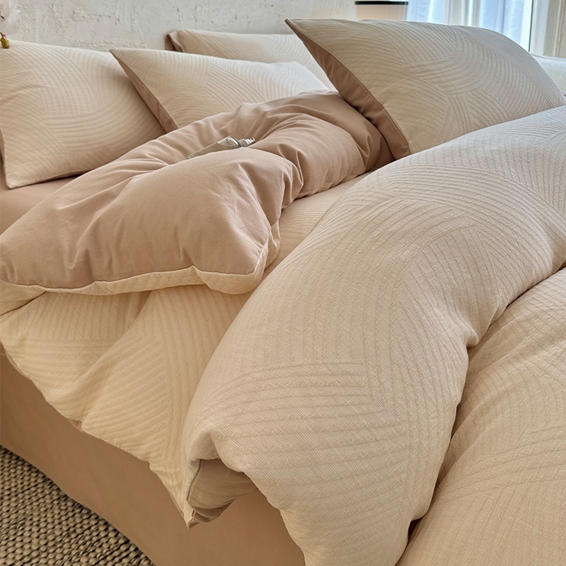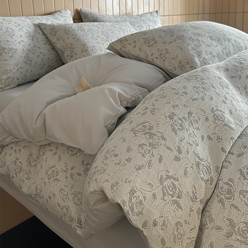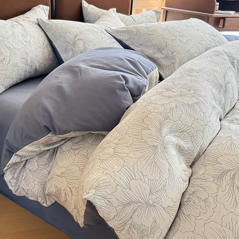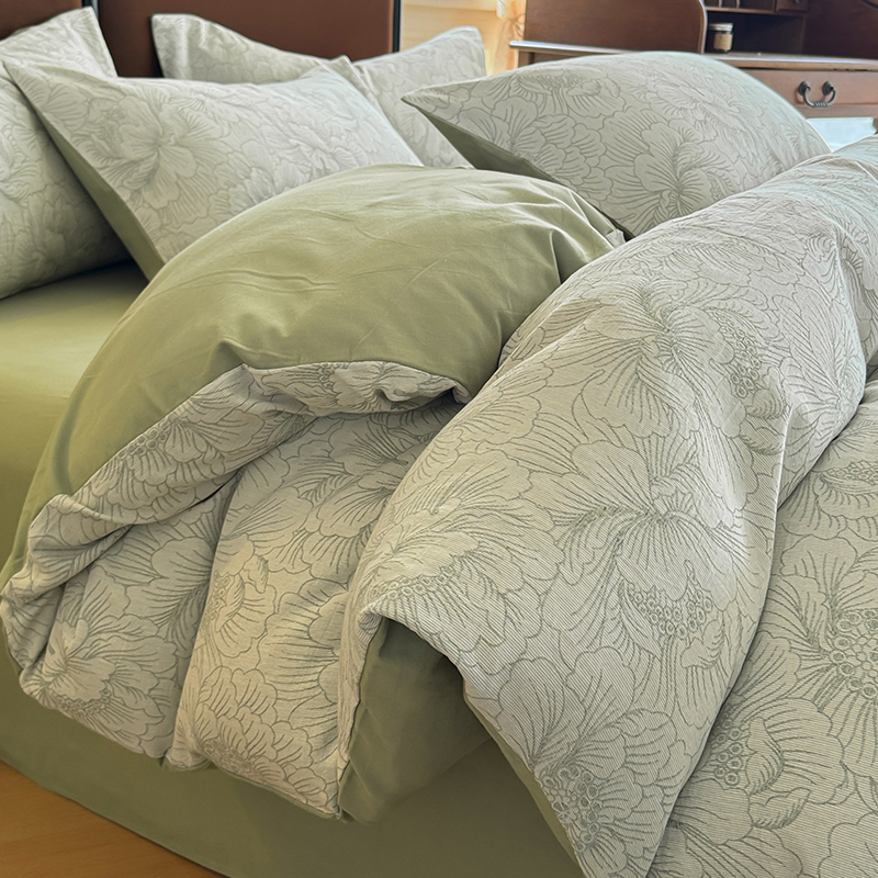 하이 엔드 클래스 더블 레이어 실 샌딩 침대 4 피스 세트 코튼 가을과 겨울 두꺼운 퀼트 커버 시트 3 피스 세트 4