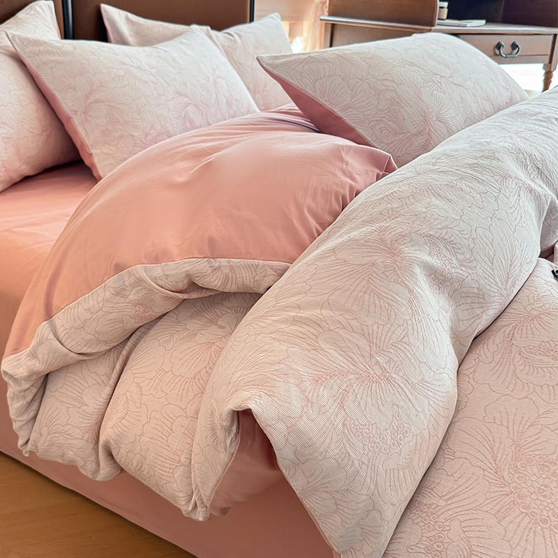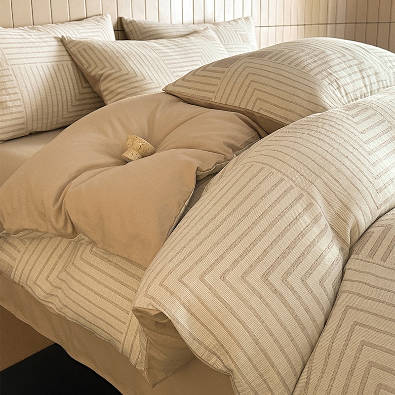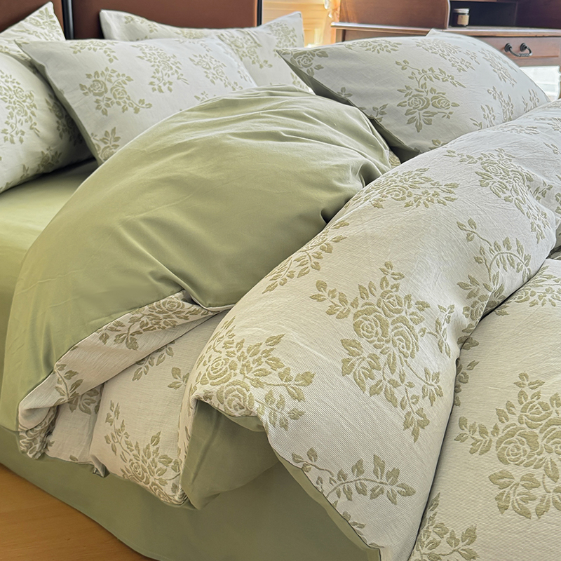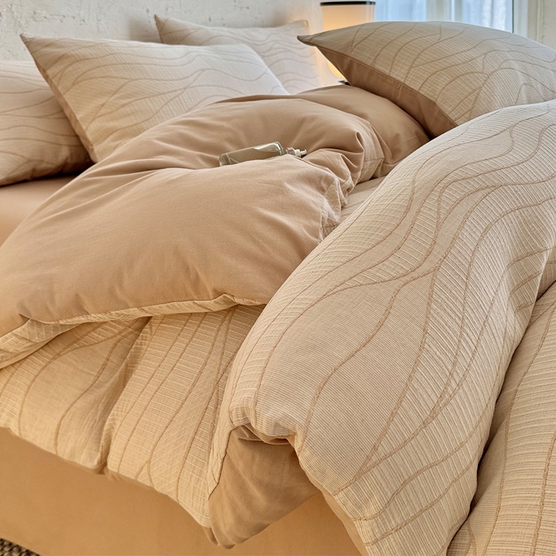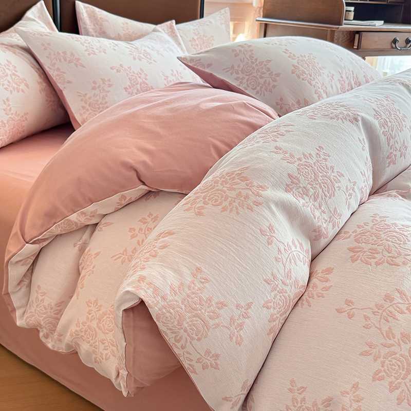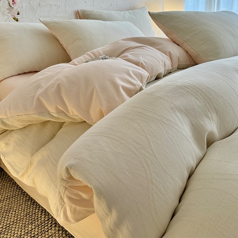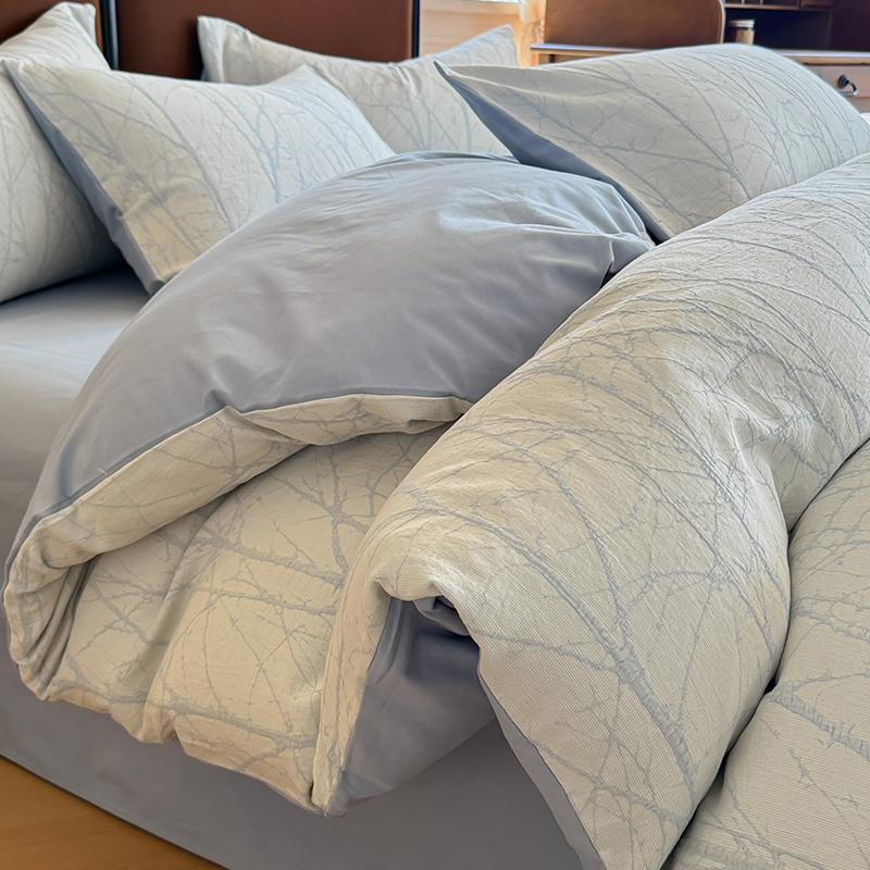 하이 엔드 클래스 더블 레이어 실 샌딩 침대 4 피스 세트 코튼 가을과 겨울 두꺼운 퀼트 커버 시트 3 피스 세트 4