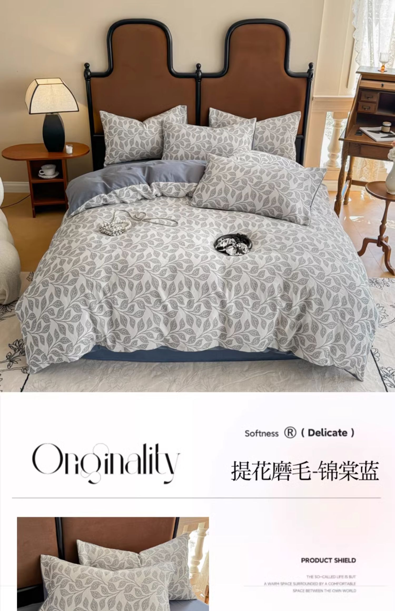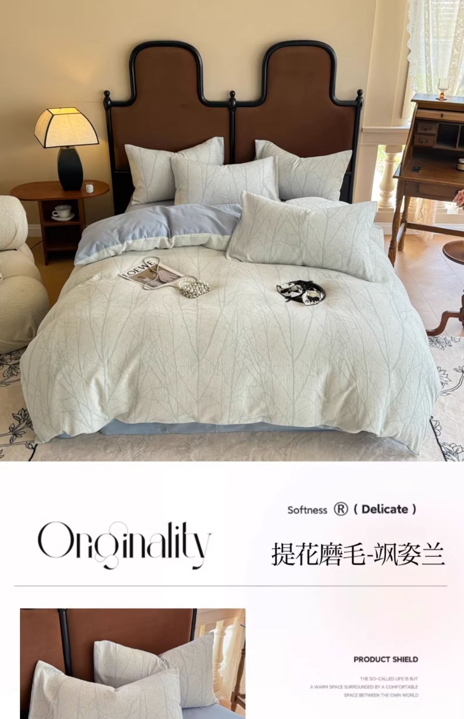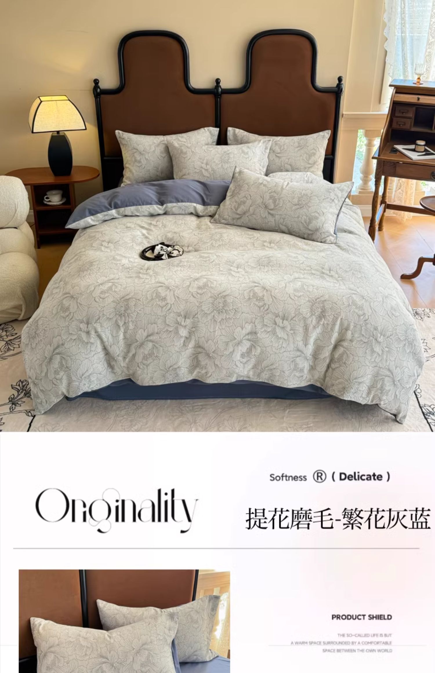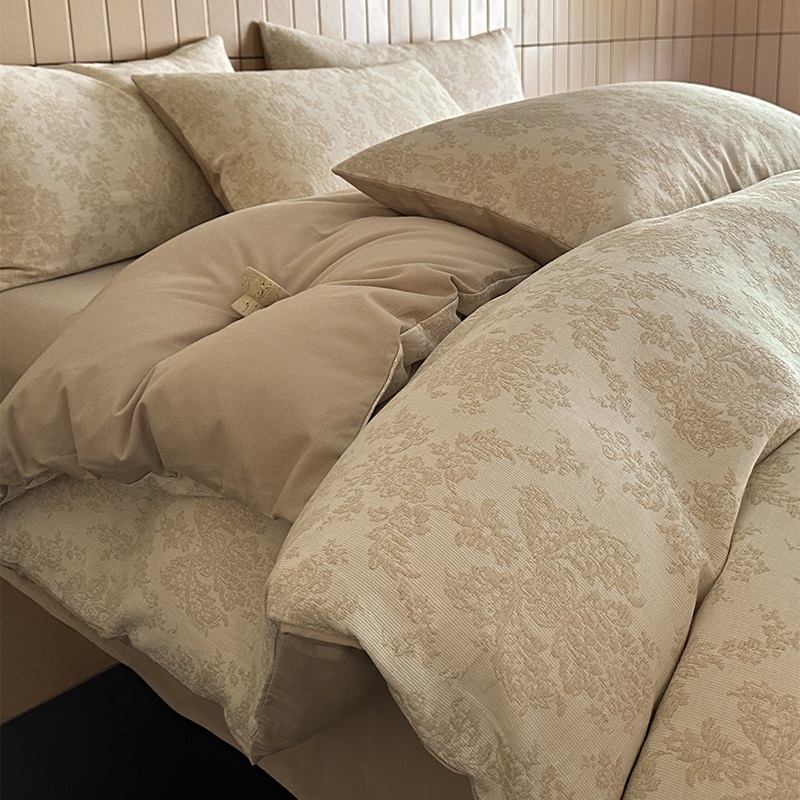 하이 엔드 클래스 더블 레이어 실 샌딩 침대 4 피스 세트 코튼 가을과 겨울 두꺼운 퀼트 커버 시트 3 피스 세트 4스토어 가기