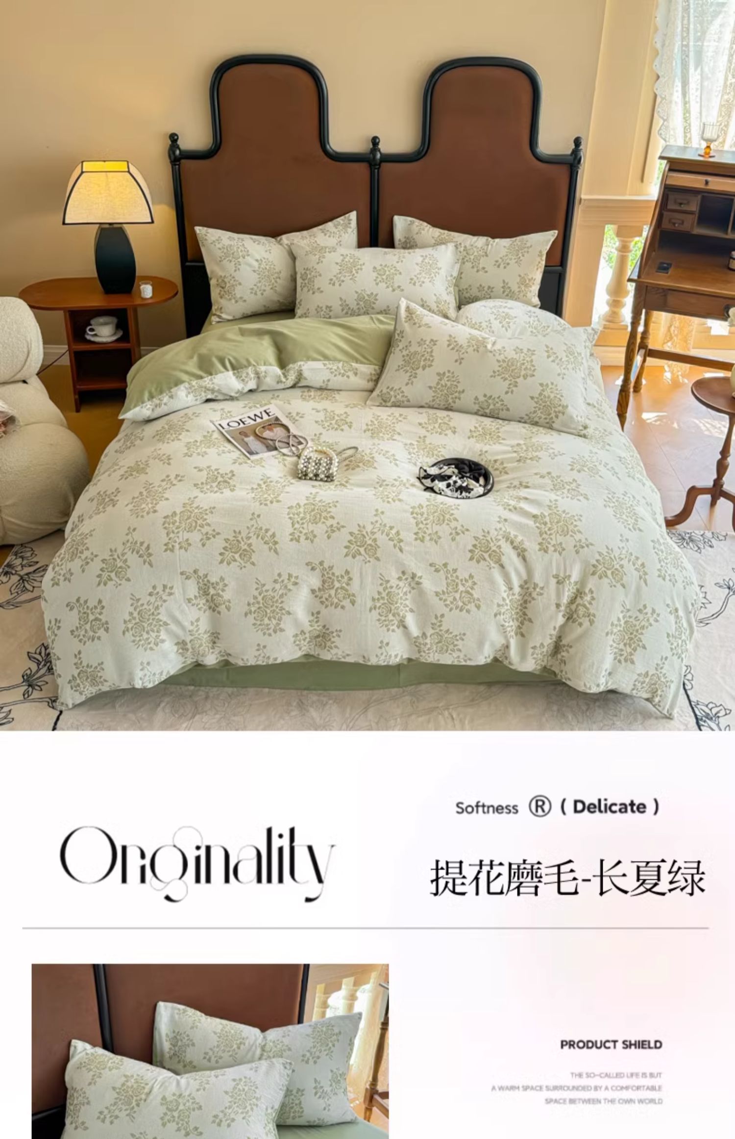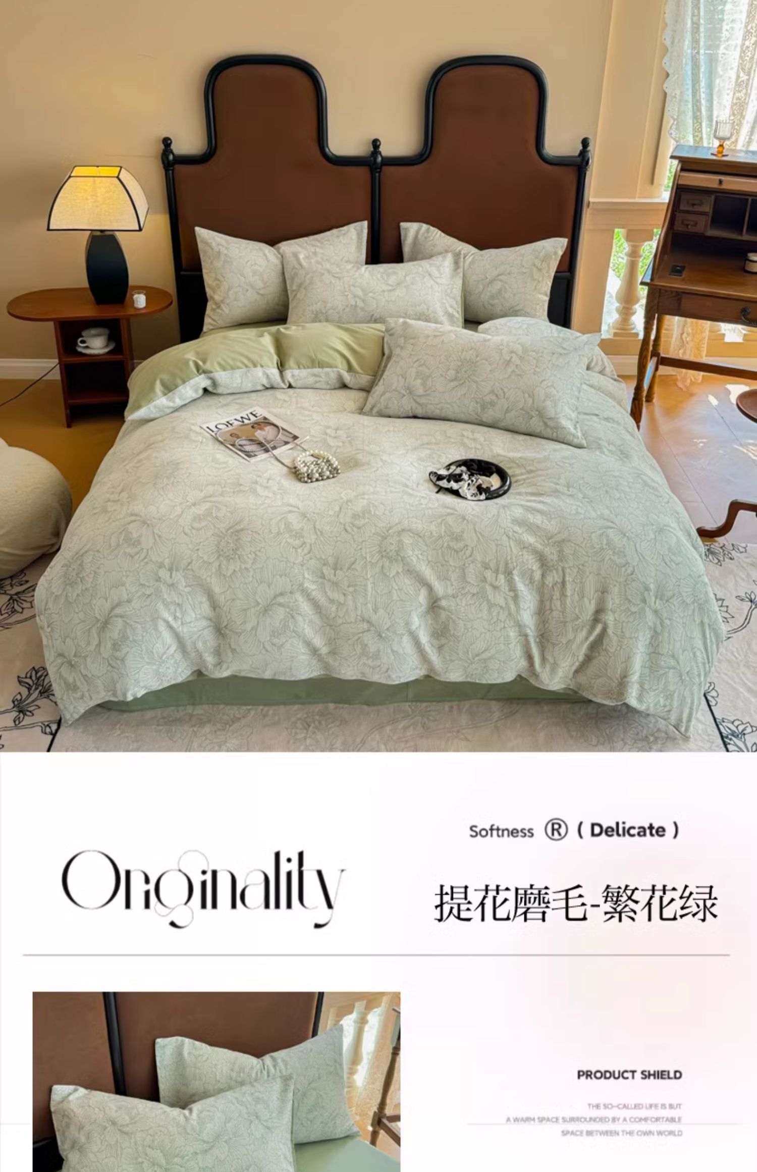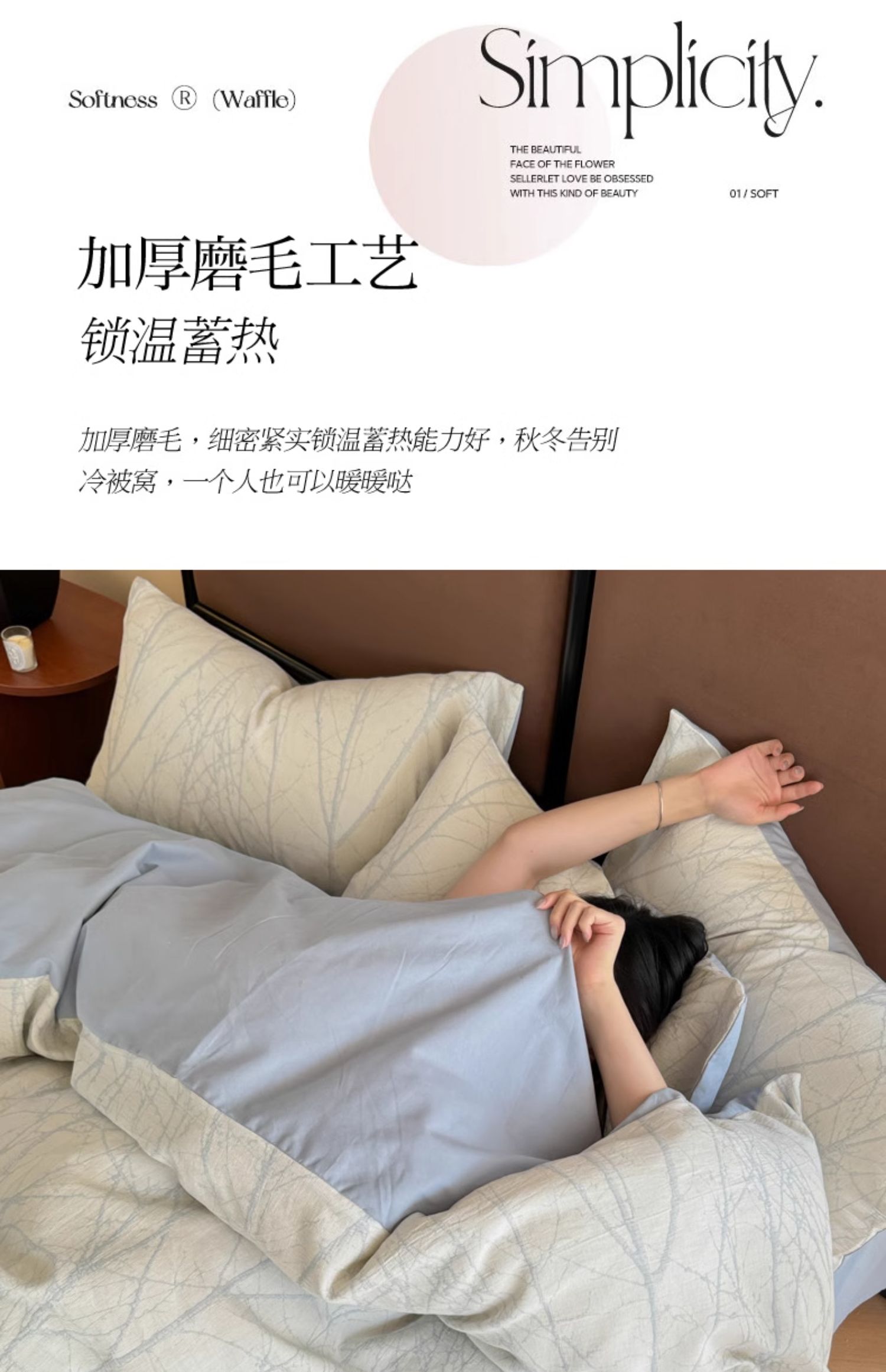 하이 엔드 클래스 더블 레이어 실 샌딩 침대 4 피스 세트 코튼 가을과 겨울 두꺼운 퀼트 커버 시트 3 피스 세트 4스토어 가기