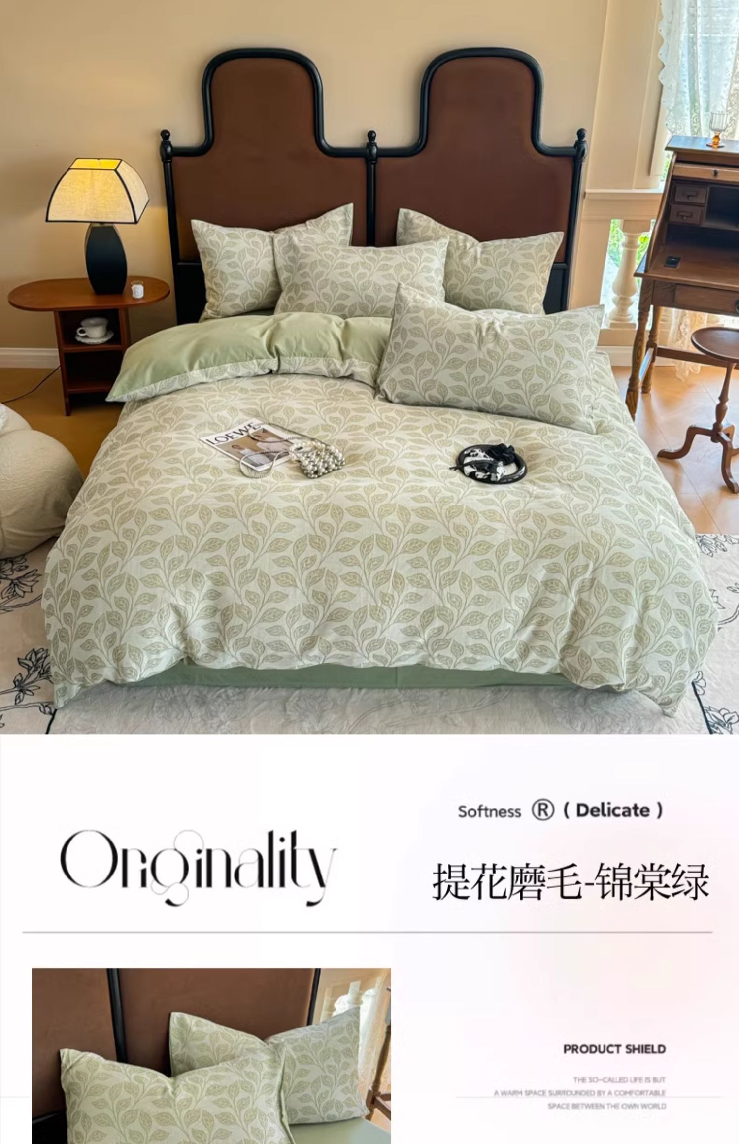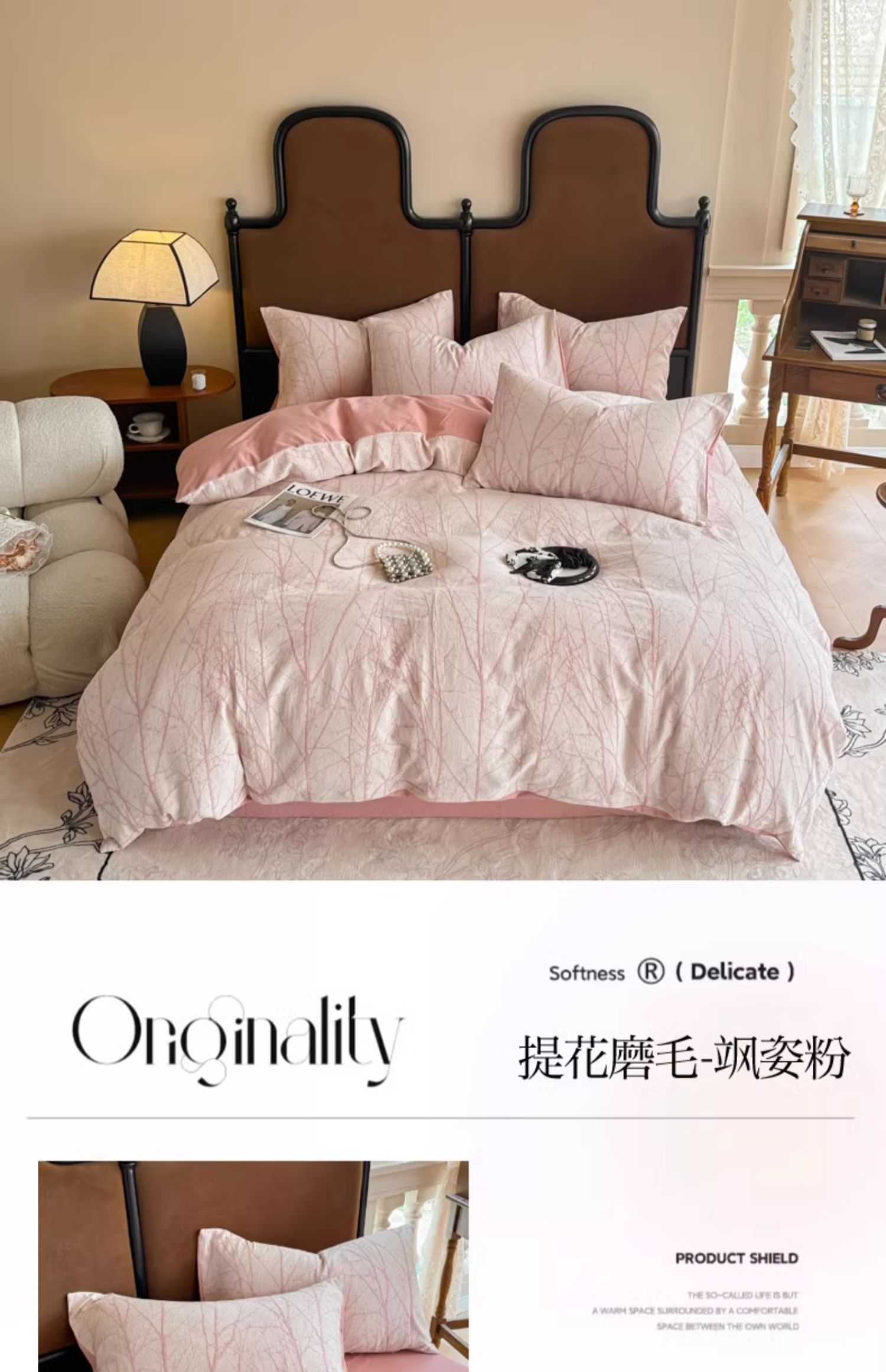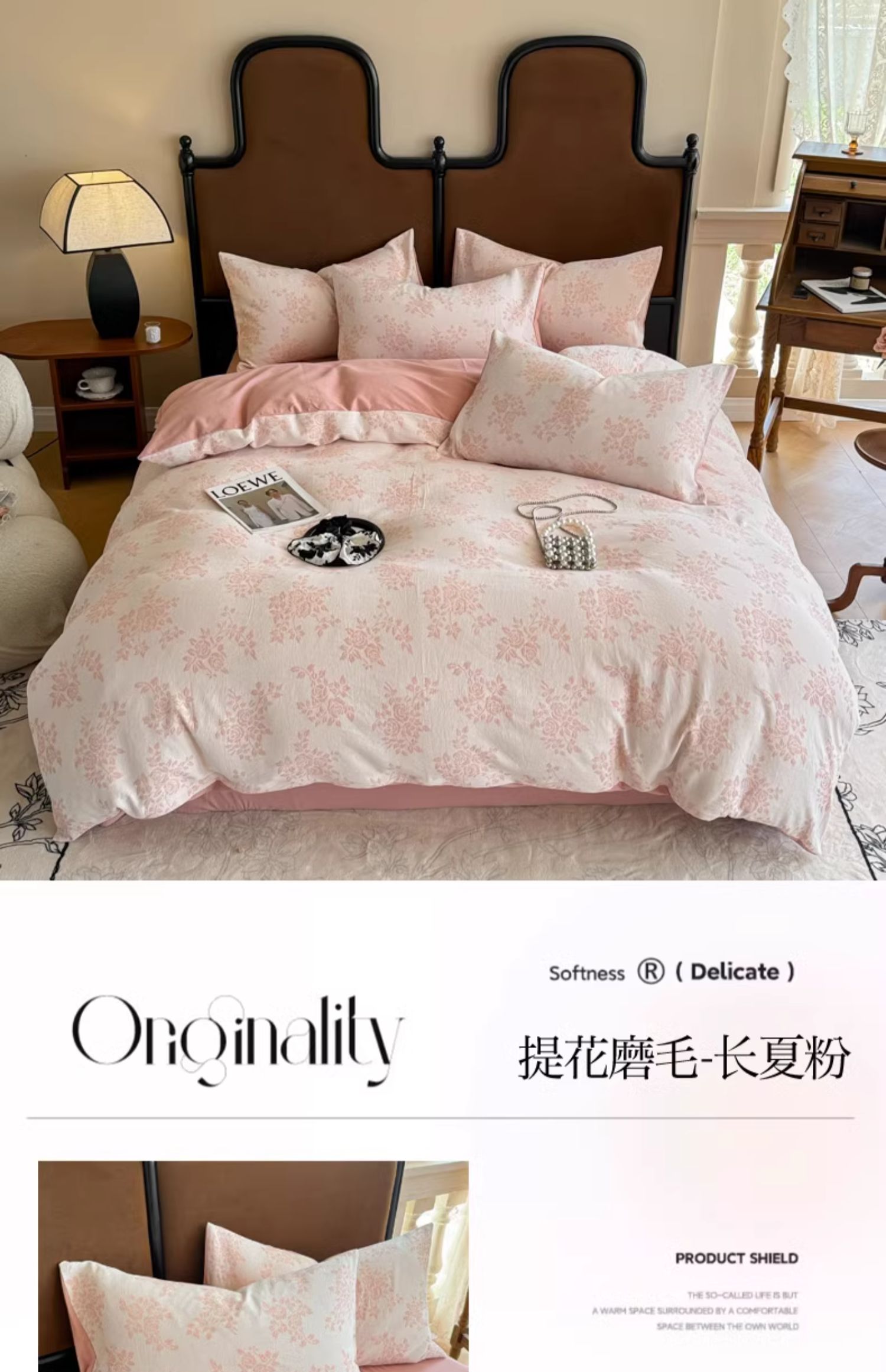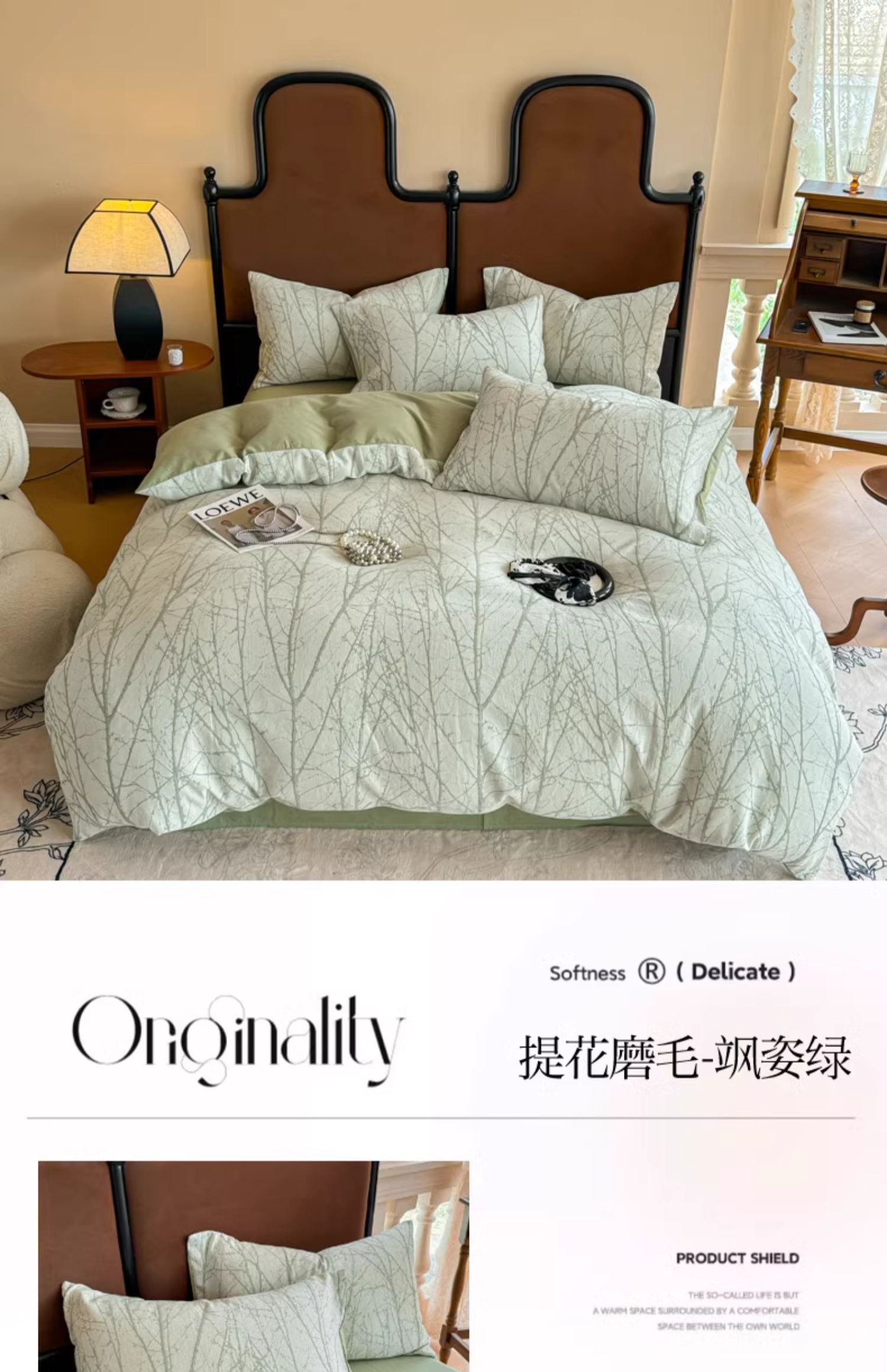 하이 엔드 클래스 더블 레이어 실 샌딩 침대 4 피스 세트 코튼 가을과 겨울 두꺼운 퀼트 커버 시트 3 피스 세트 4스토어 가기