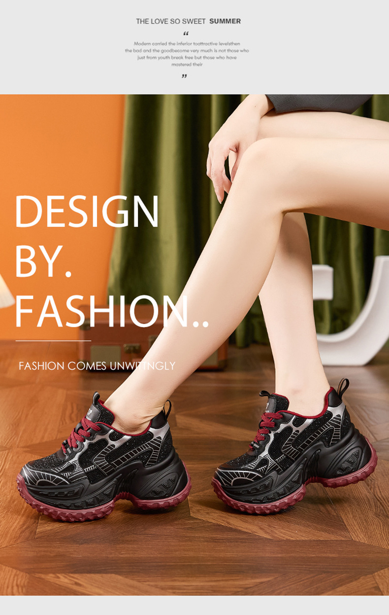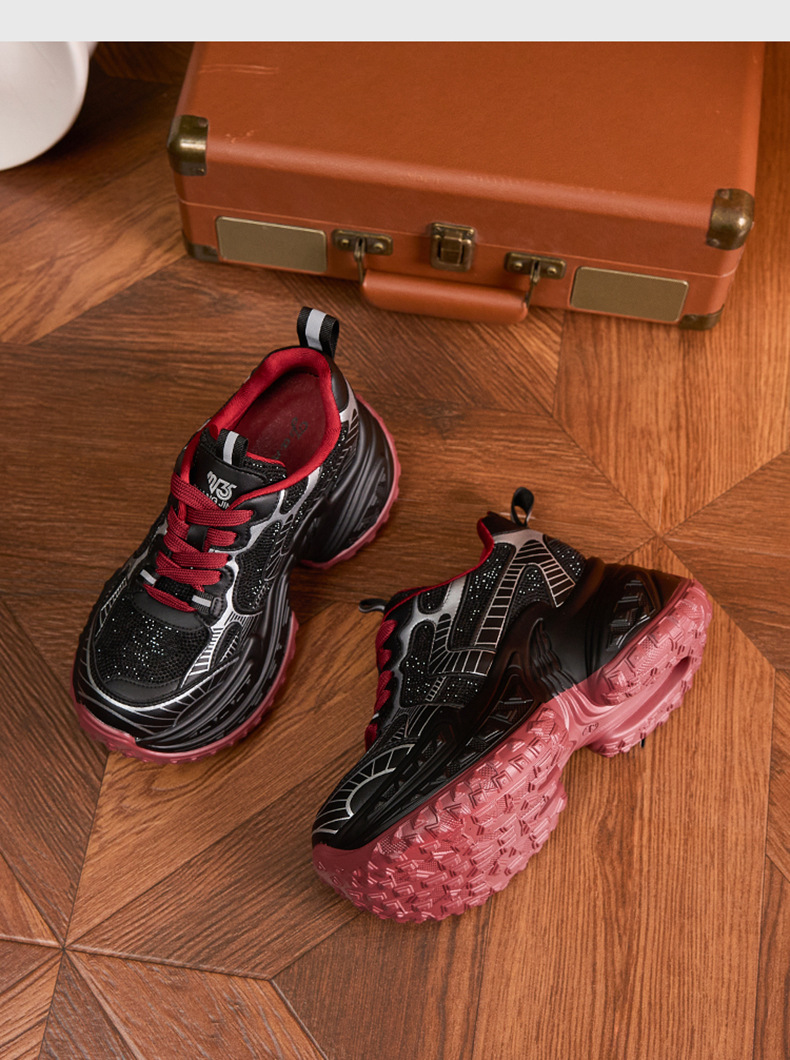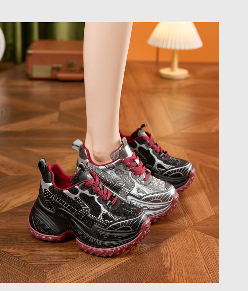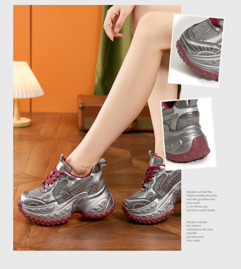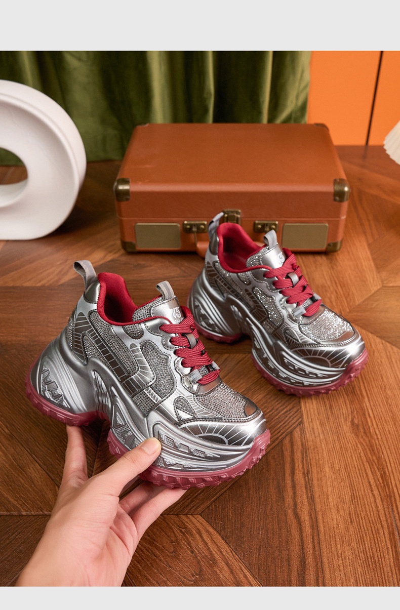 두꺼운 밑창의 여성용 아빠 신발 2025 봄 가을 신상 패션 다용도 레드 슈즈 키높이 여성 운동화 캐주얼 슈즈