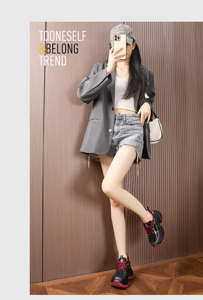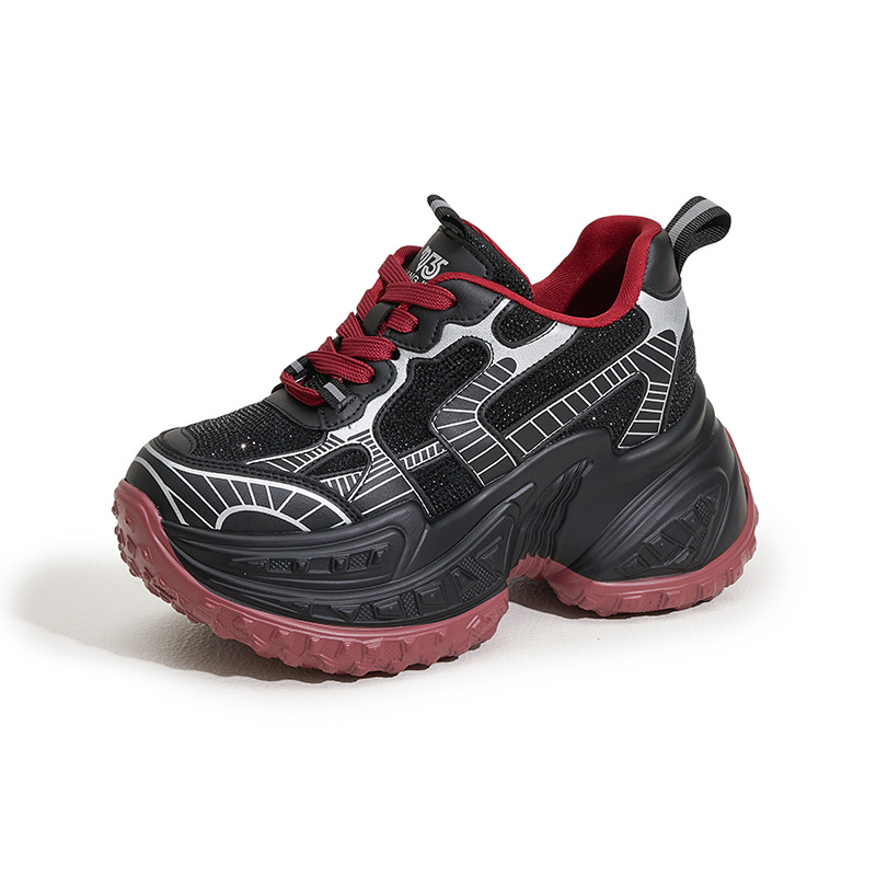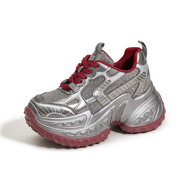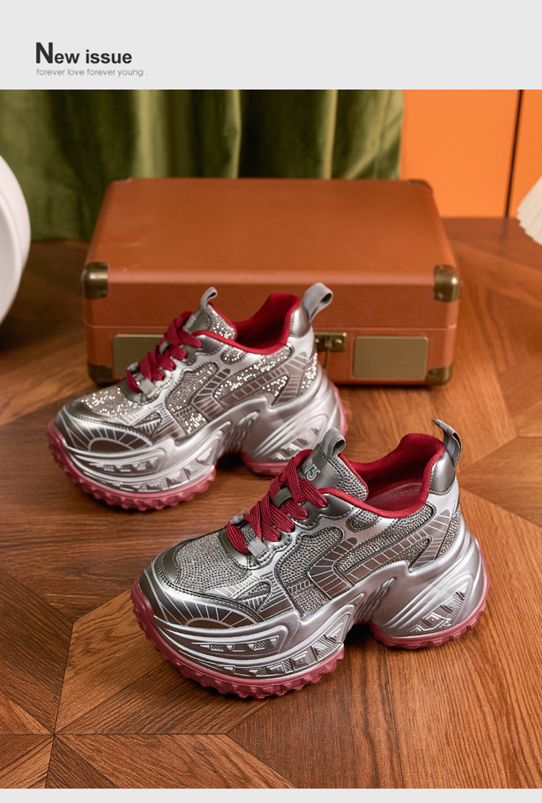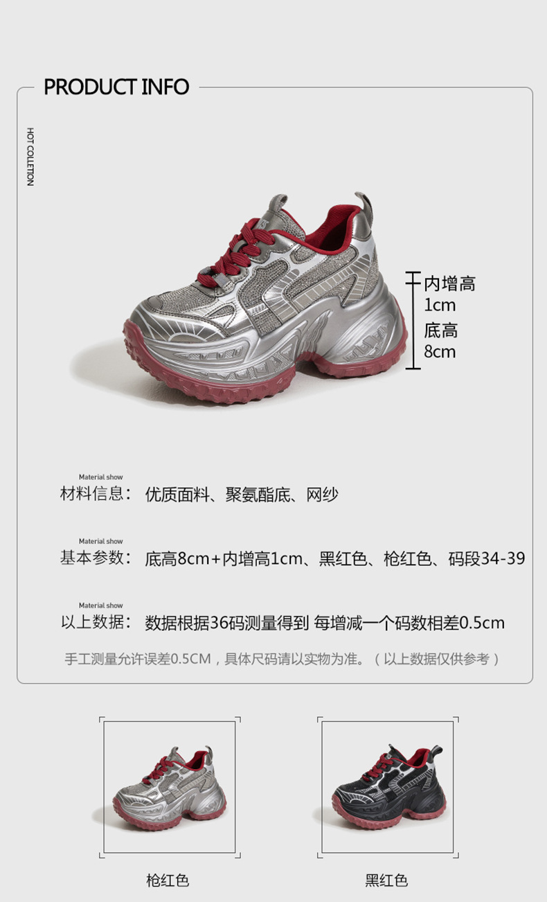 두꺼운 밑창의 여성용 아빠 신발 2025 봄 가을 신상 패션 다용도 레드 슈즈 키높이 여성 운동화 캐주얼 슈즈
