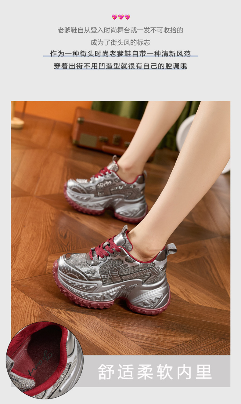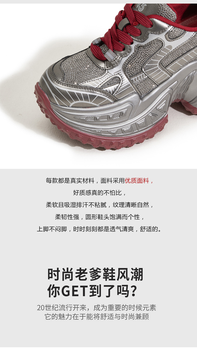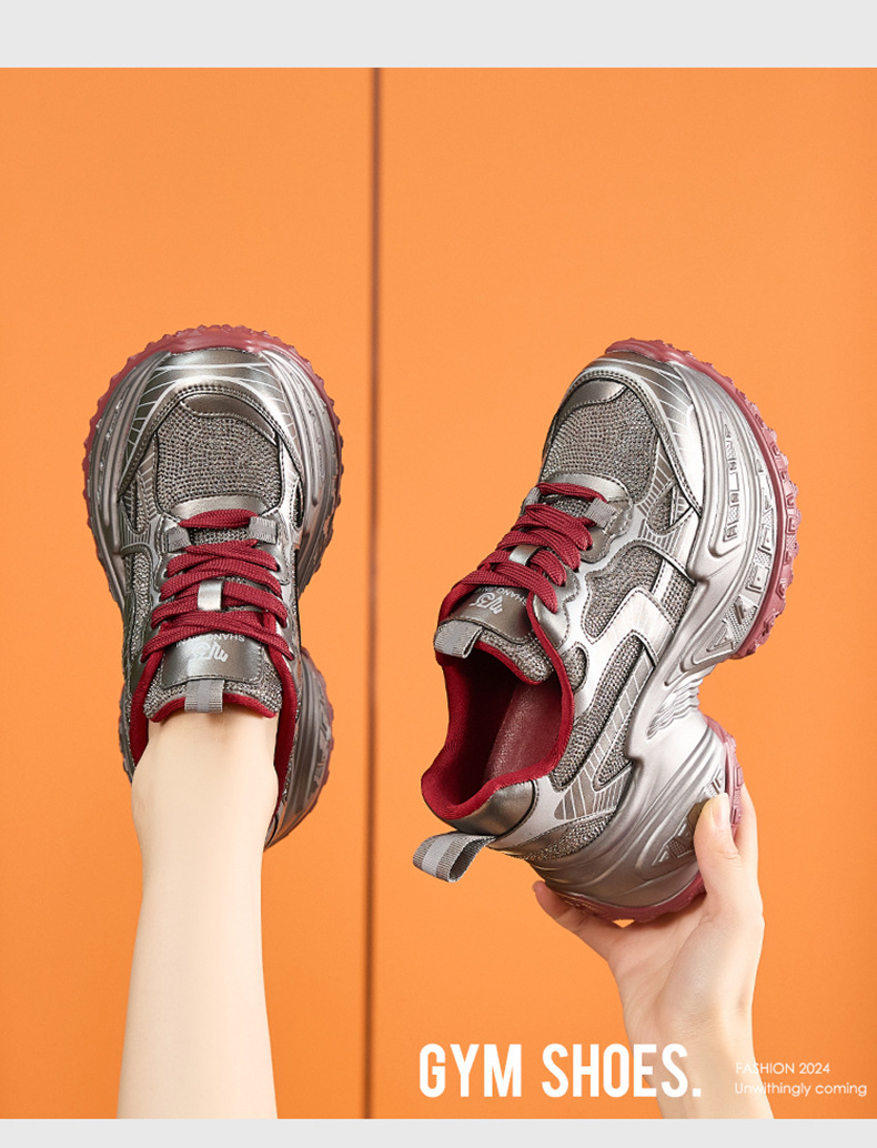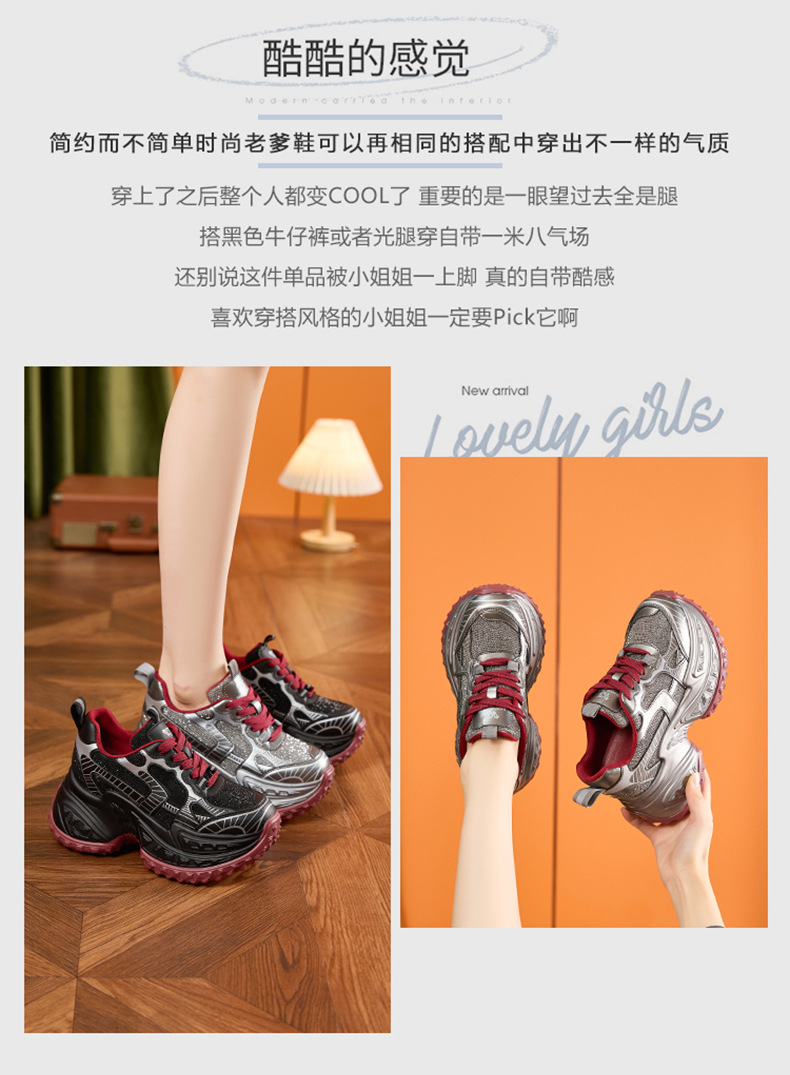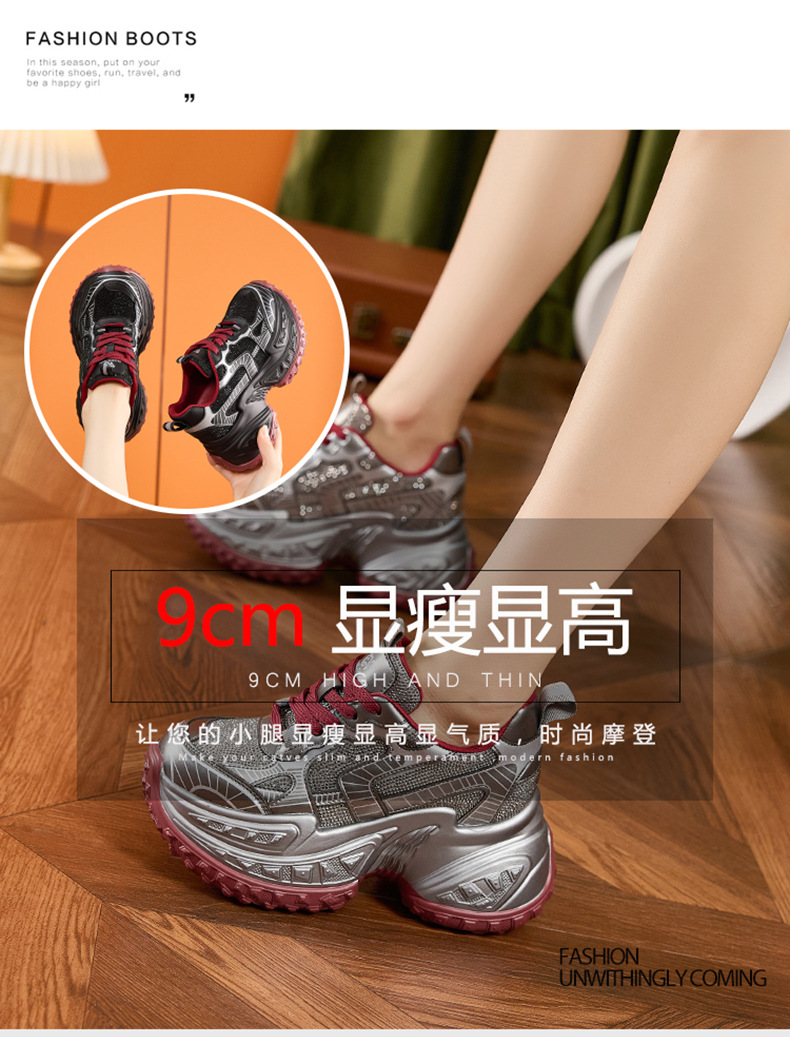 두꺼운 밑창의 여성용 아빠 신발 2025 봄 가을 신상 패션 다용도 레드 슈즈 키높이 여성 운동화 캐주얼 슈즈스토어 가기