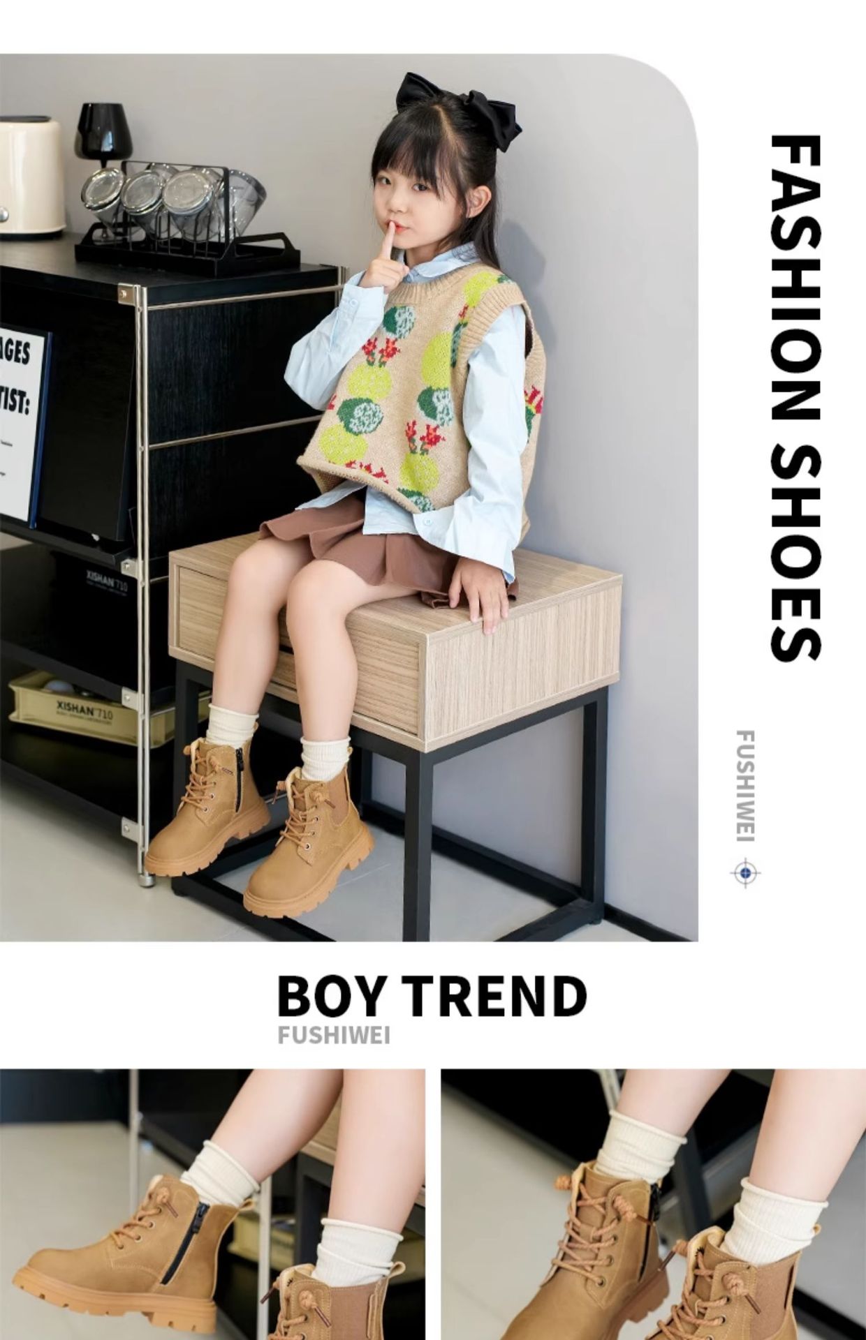 소년 마틴 부츠 2025 가을, 겨울 새로운 따뜻한 소녀 스노우 부츠 소년 면화 플러스 벨벳 면화 어린이 부츠