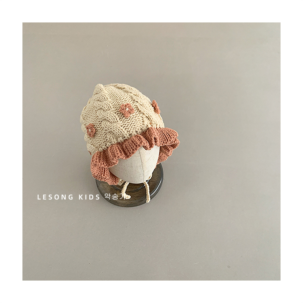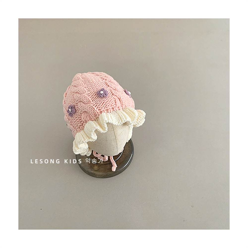 韩系手工小花女宝宝针织护耳帽