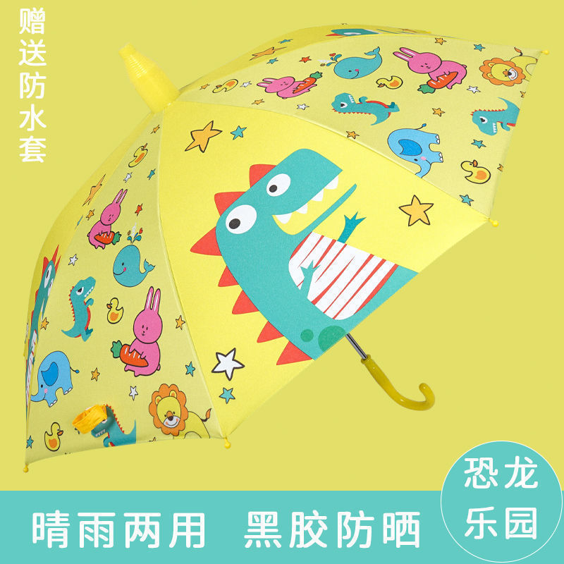 어린이용 로고 인쇄 유치원 남아 여아 선물용 우산, 차양 및 방수 커버 포함, 곡선형 손잡이, 비 오는 날과 맑은 날 모두 사용 가능