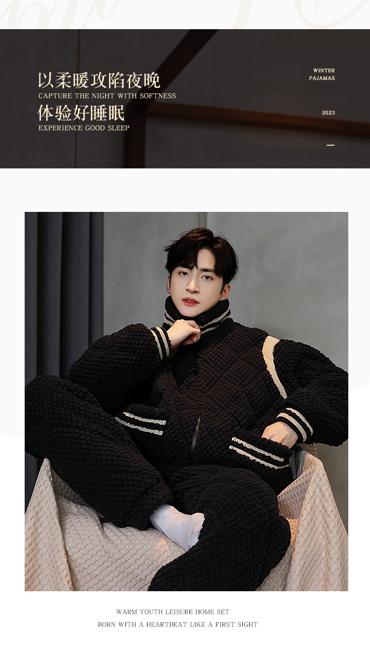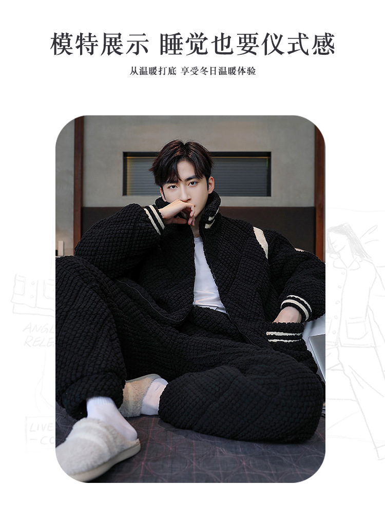 2024 새로운 잠옷 남자의 가을과 겨울 날 산호 양털 기모 두꺼운 3 층 면 따뜻한 플란넬 플러스 사이즈스토어 가기