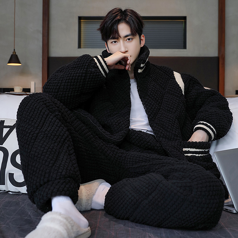 2024 새로운 잠옷 남자의 가을과 겨울 날 산호 양털 기모 두꺼운 3 층 면 따뜻한 플란넬 플러스 사이즈