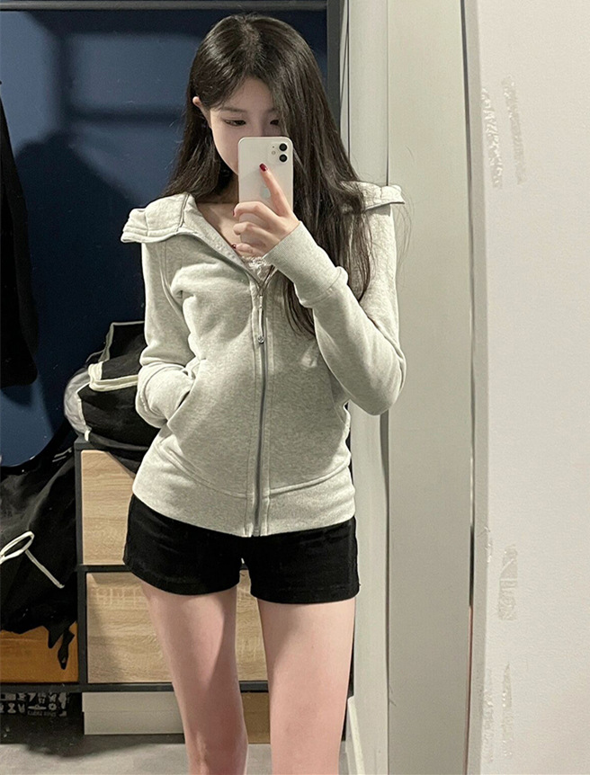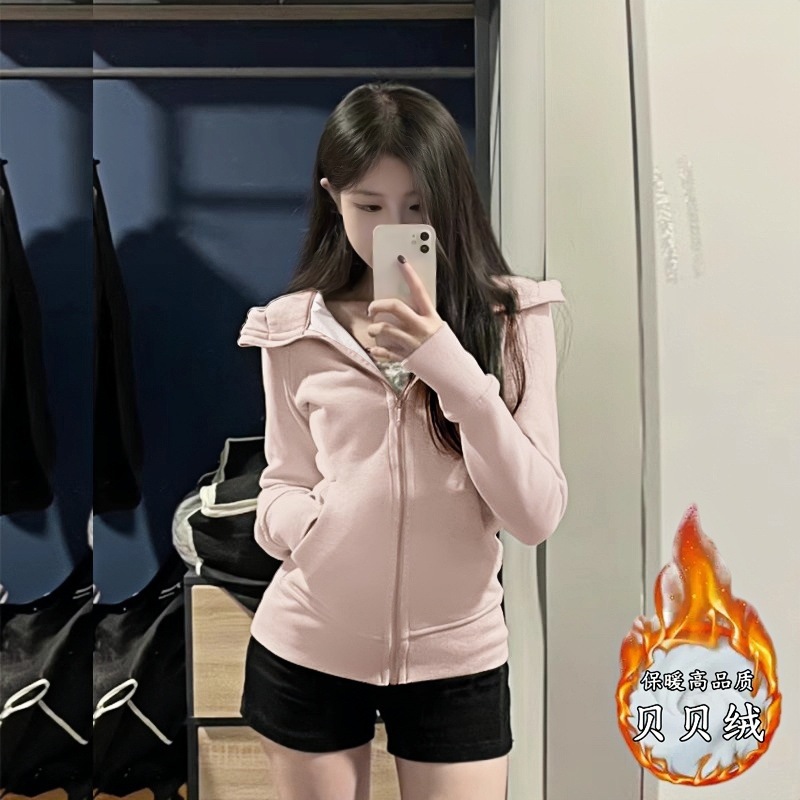 쉐이크 품질 맘바 코튼 슬림 핏 허리 스웨트 재킷 여성용 2024 가을/겨울 기모 스포츠 타이트 후드 탑스토어 가기