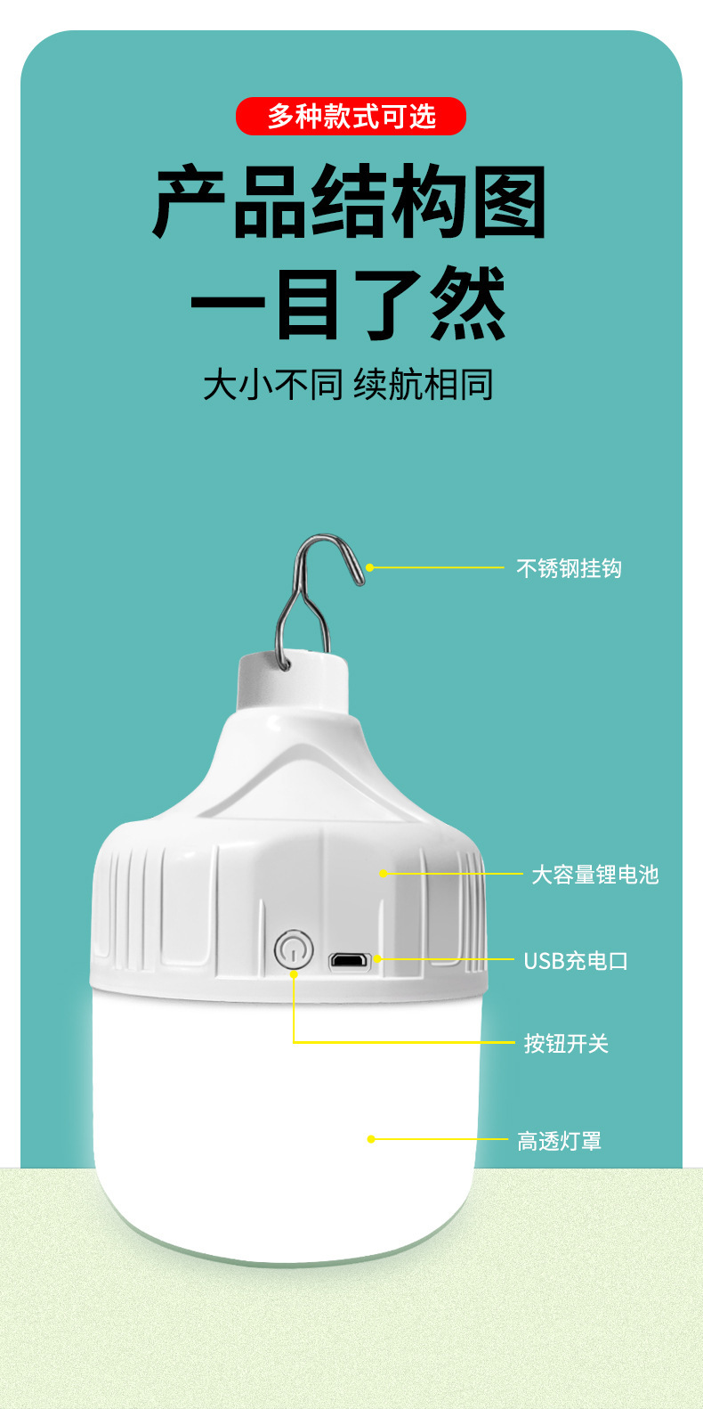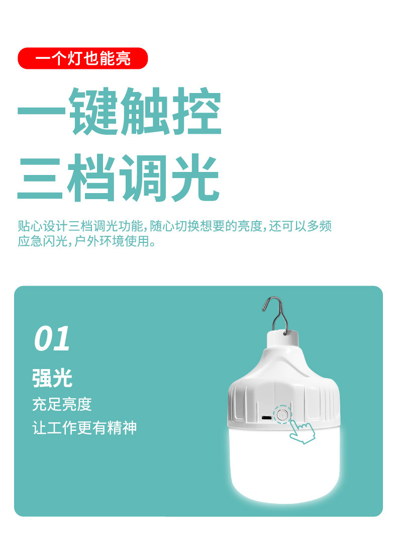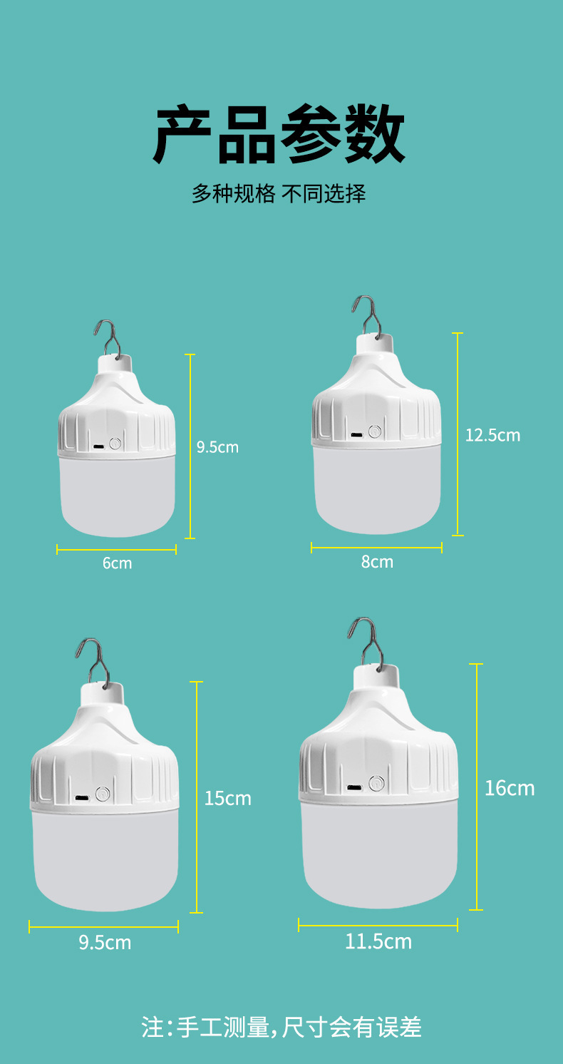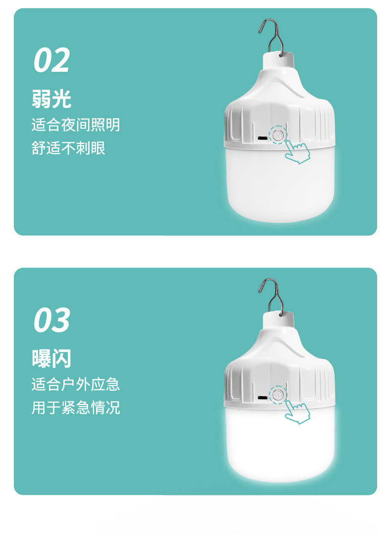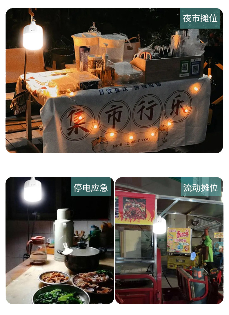 LED 스톨 라이트 야간 시장 usb 충전 빛 고출력 슈퍼 밝은 야외 비상 조명 캠핑 여행 조명 전구