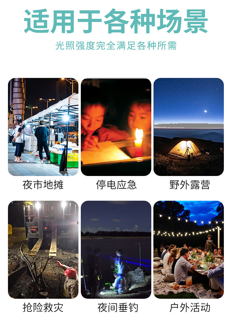 LED 스톨 라이트 야간 시장 usb 충전 빛 고출력 슈퍼 밝은 야외 비상 조명 캠핑 여행 조명 전구스토어 가기