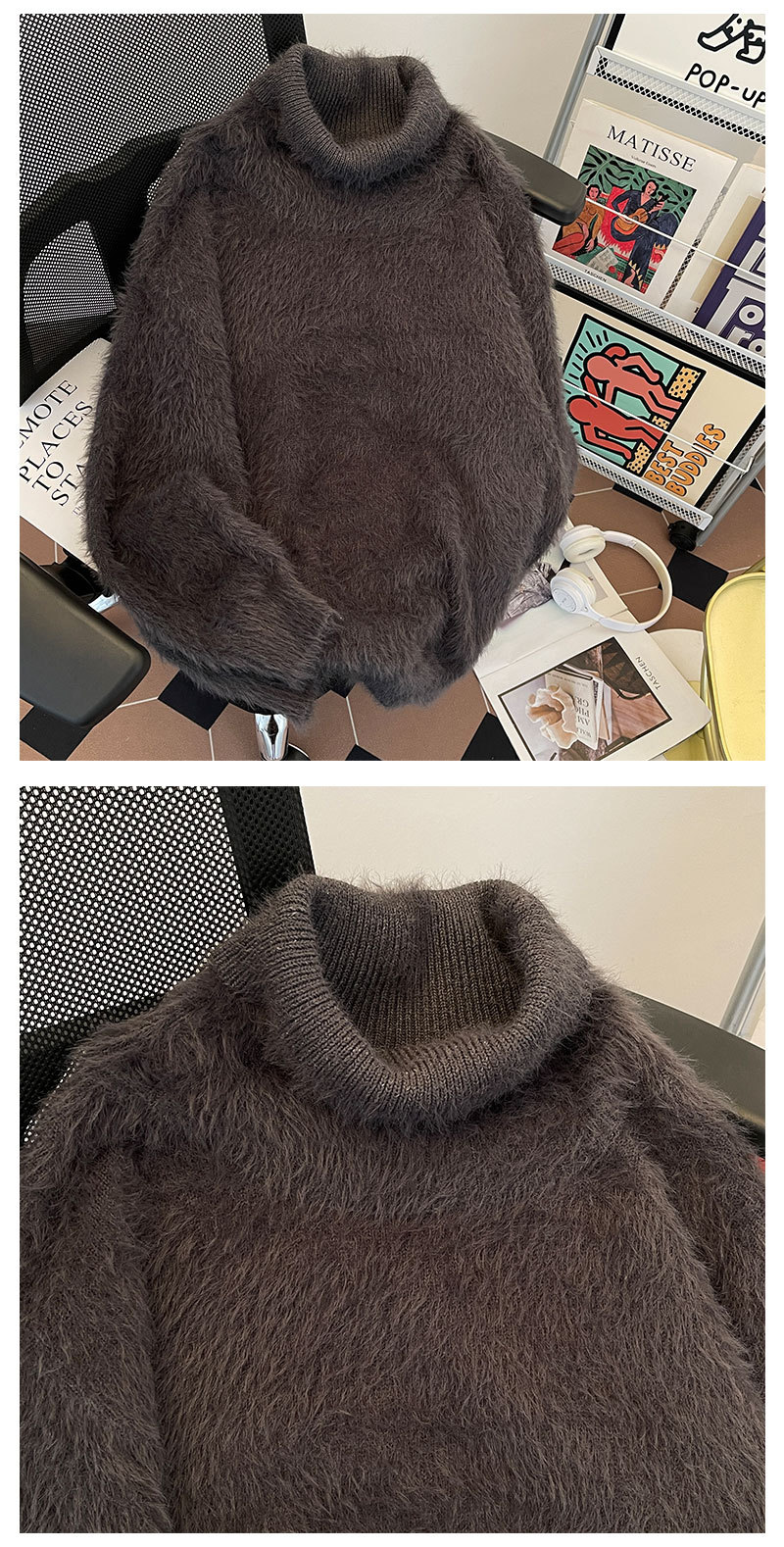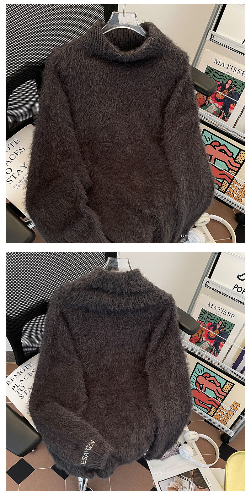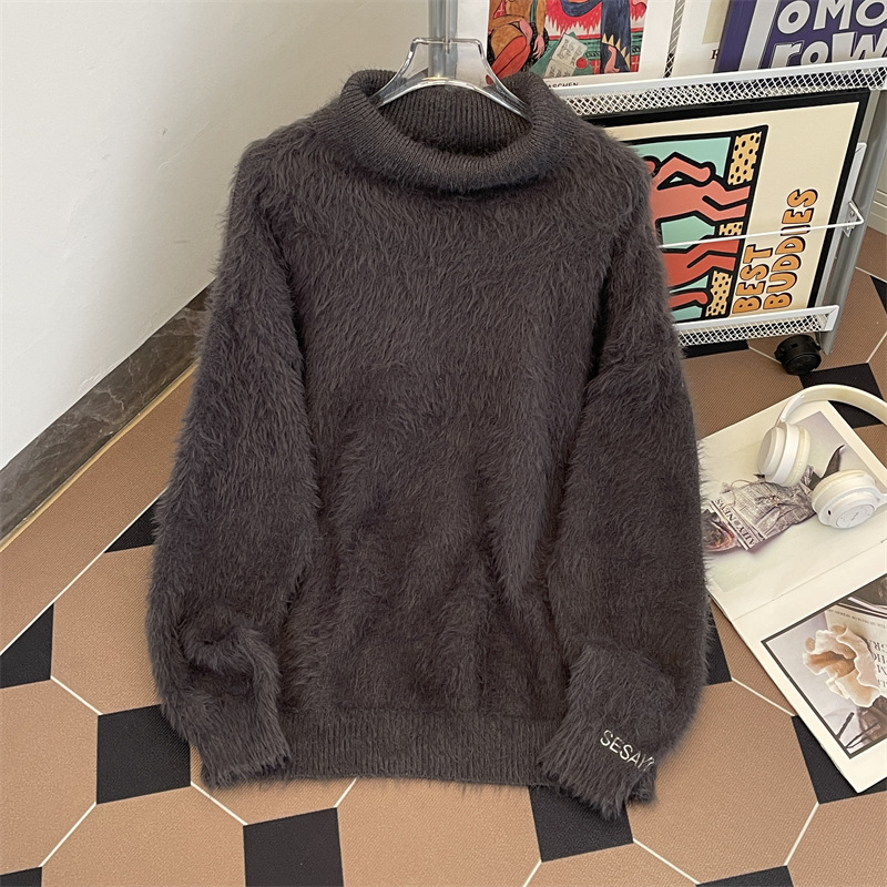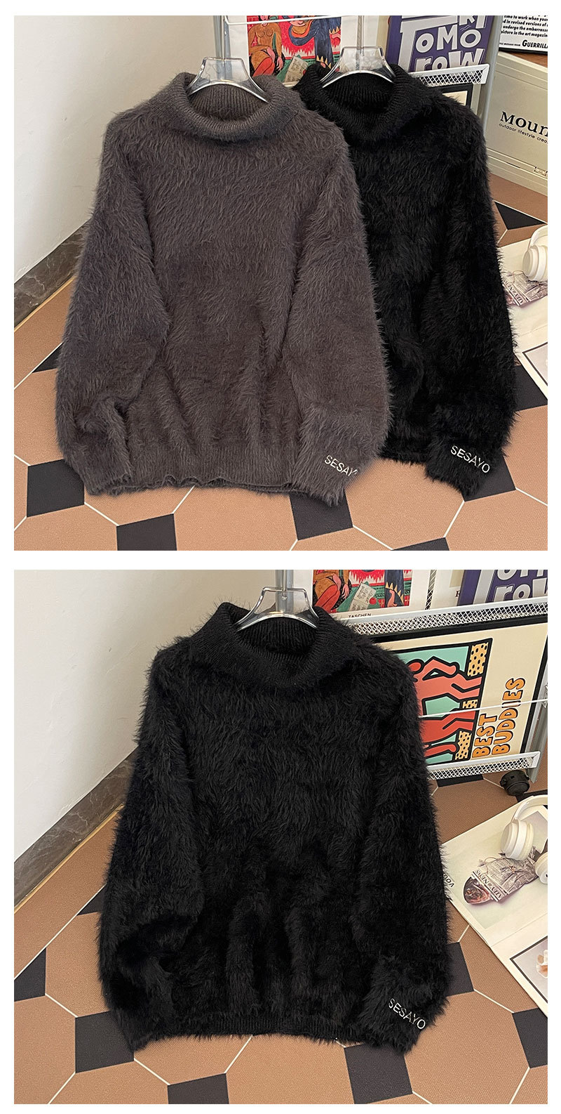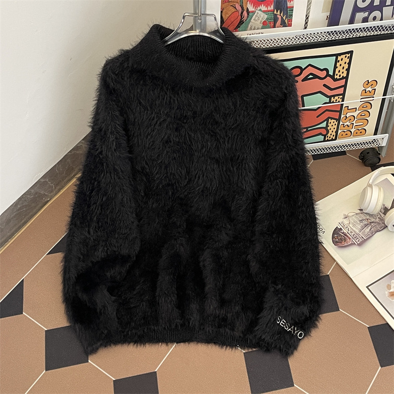아메리칸 스타일 하이 스트리트 밍크 소프트 왁스 터틀넥 스웨터 남자 게으른 하이 엔드 가을 및 겨울 봉제 루즈 니트 스웨터 스웨터스토어 가기