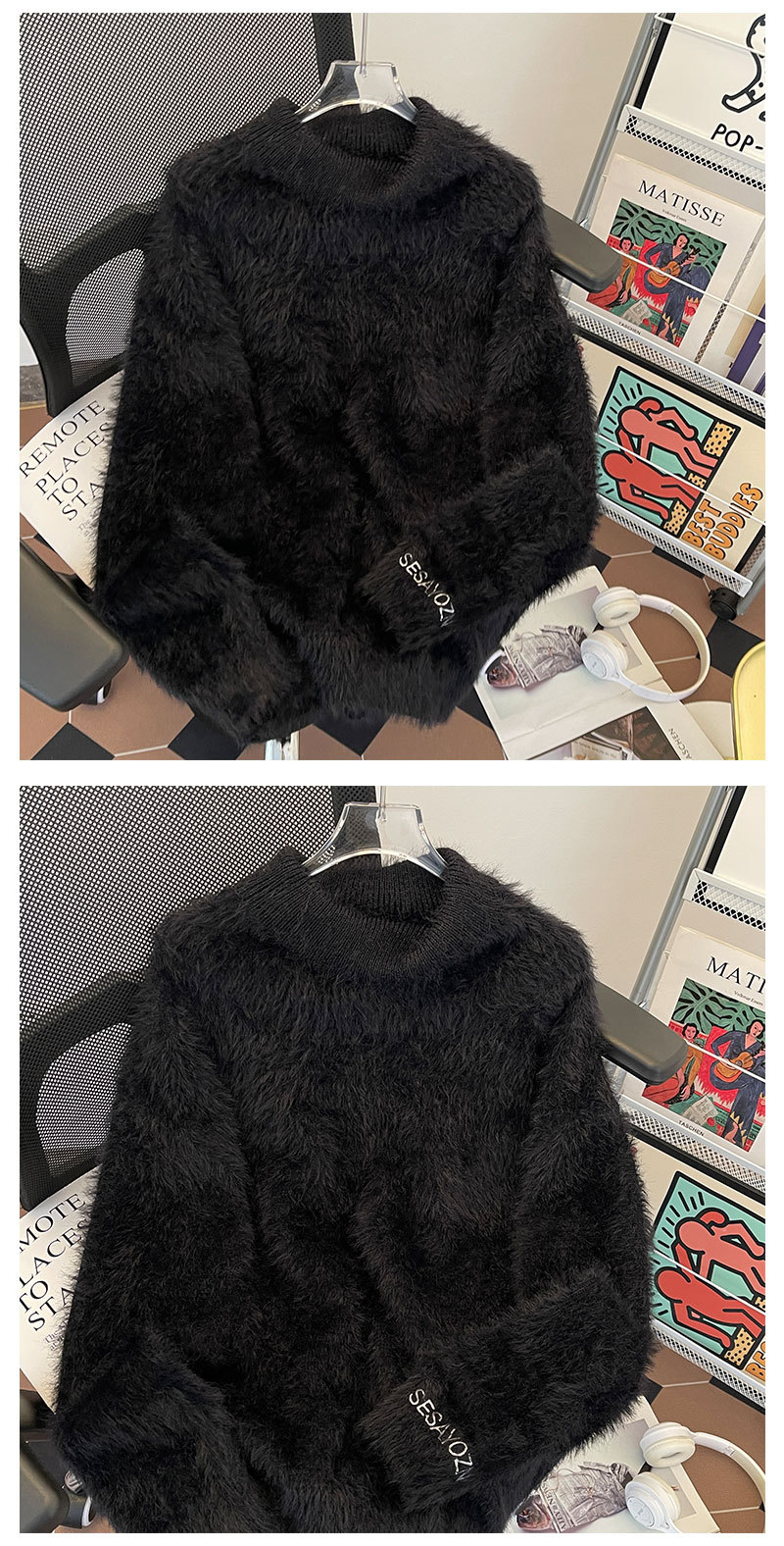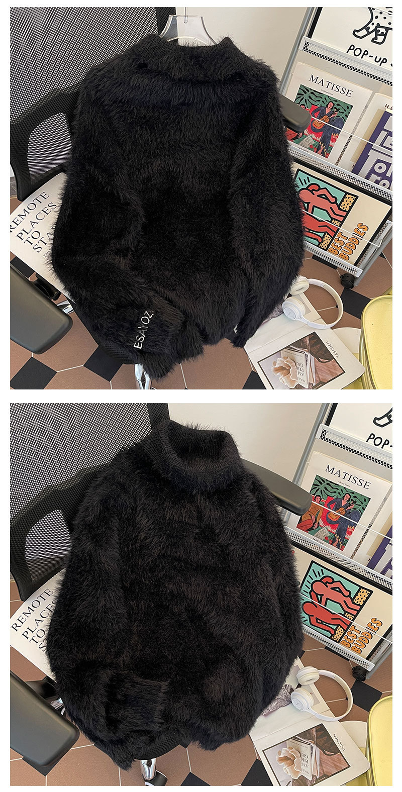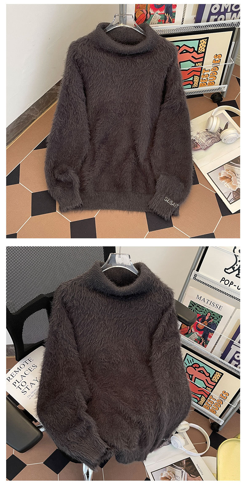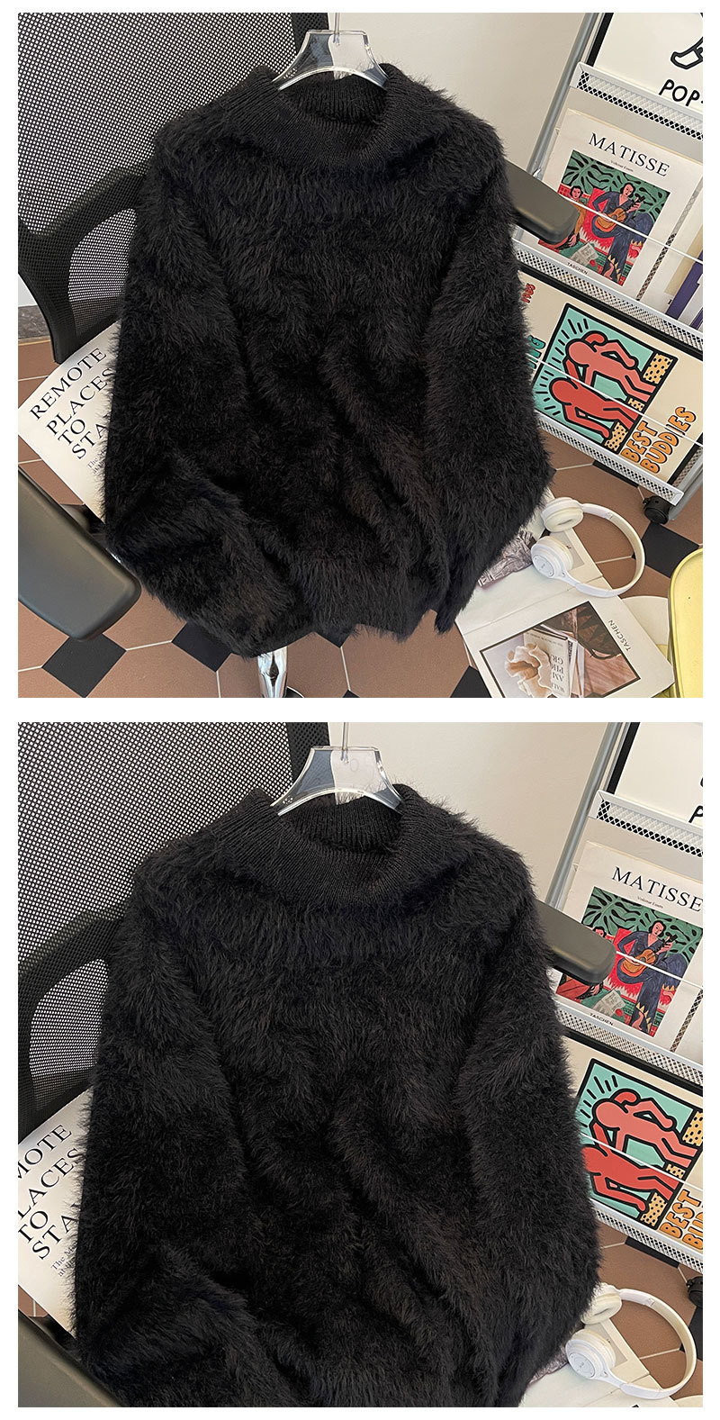아메리칸 스타일 하이 스트리트 밍크 소프트 왁스 터틀넥 스웨터 남자 게으른 하이 엔드 가을 및 겨울 봉제 루즈 니트 스웨터 스웨터스토어 가기