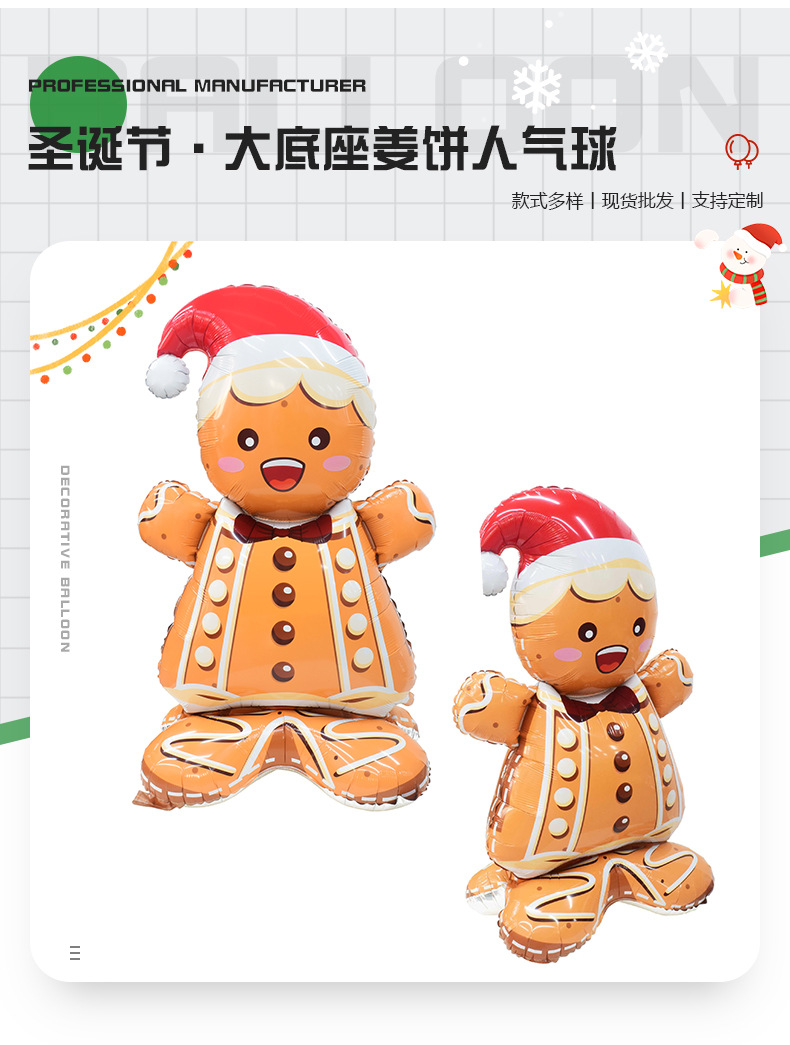 새로운 스테레오 대형베이스 진저 브레드 맨 풍선 크리스마스 이브 휴일 파티 장식 알루미늄 필름 풍선 도매스토어 가기
