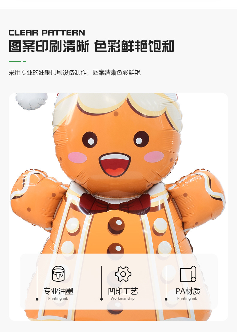 새로운 스테레오 대형베이스 진저 브레드 맨 풍선 크리스마스 이브 휴일 파티 장식 알루미늄 필름 풍선 도매