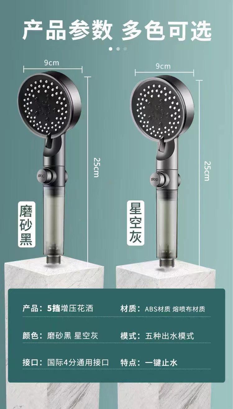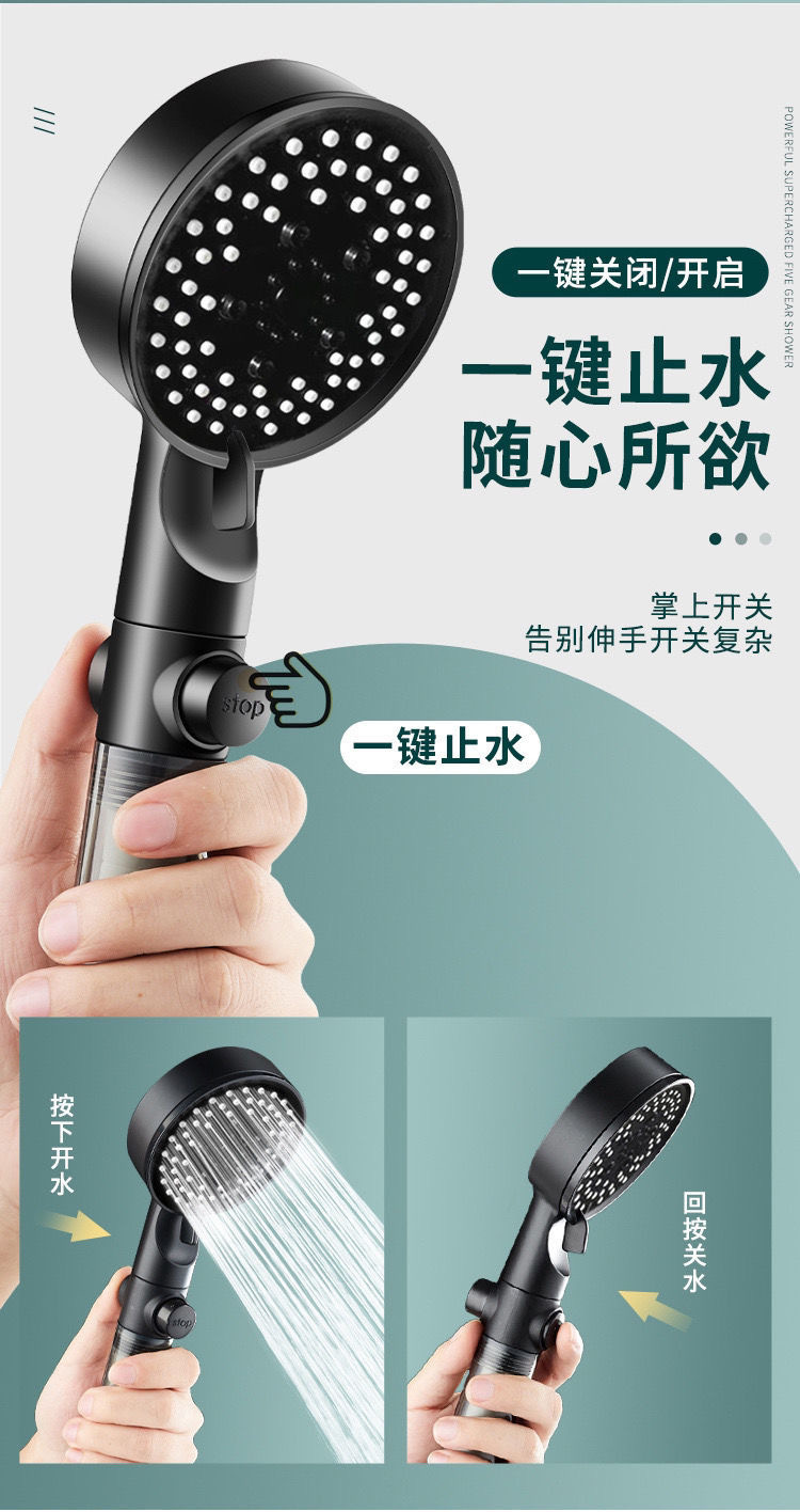 그레이 5 단 원 버튼 워터 스톱 필터 샤워 부스터 노즐 가정용 샤워 온수기 샤워 핸드 스프레이