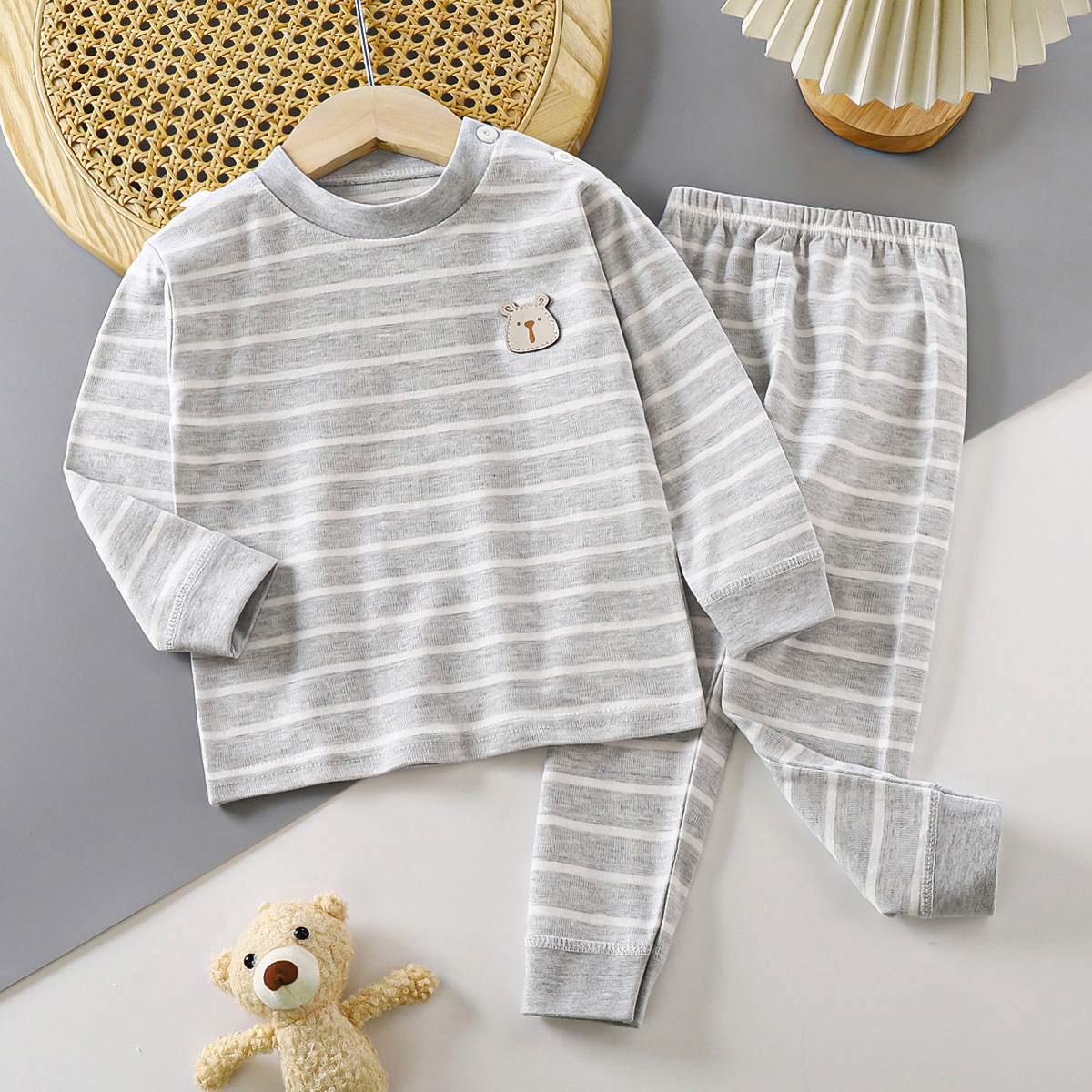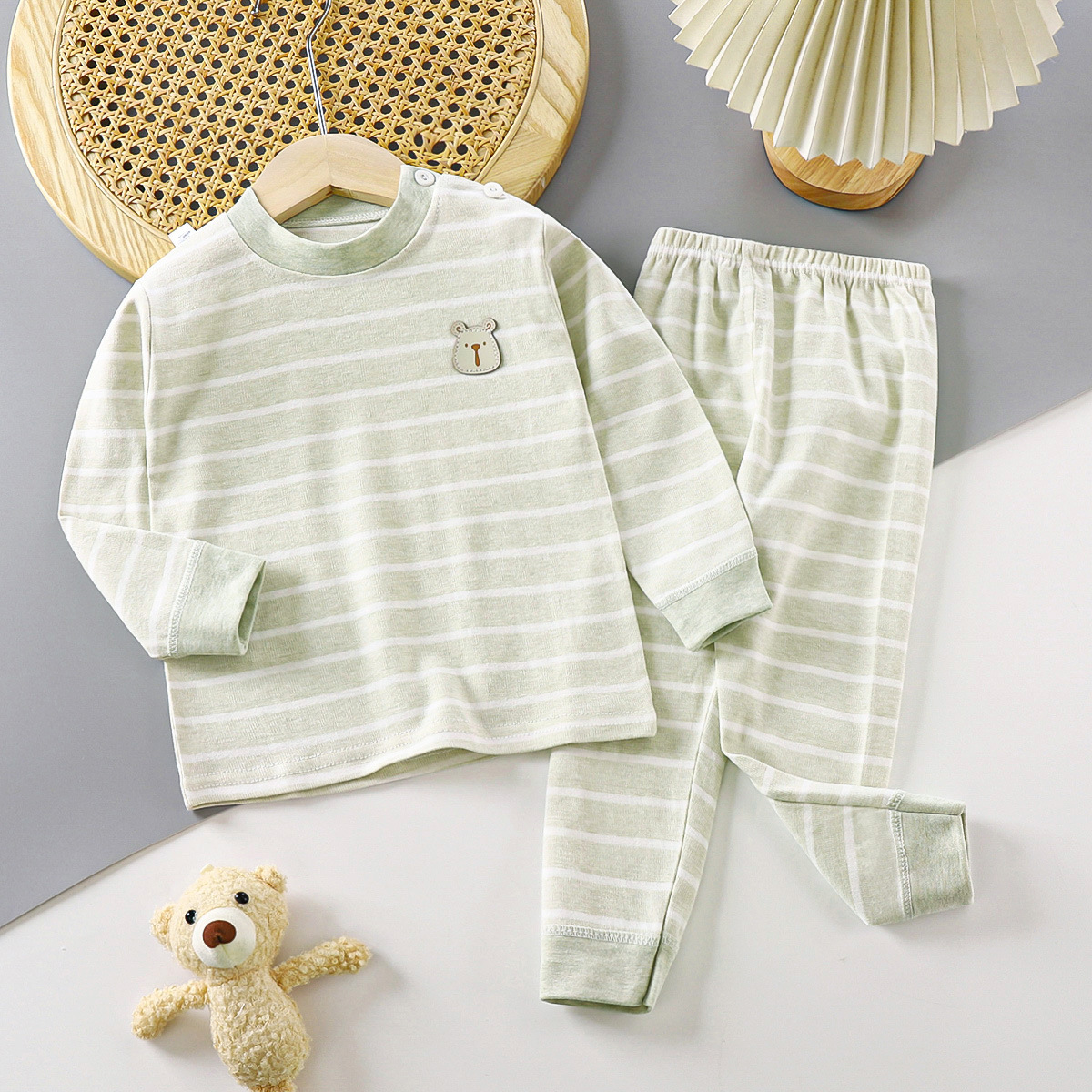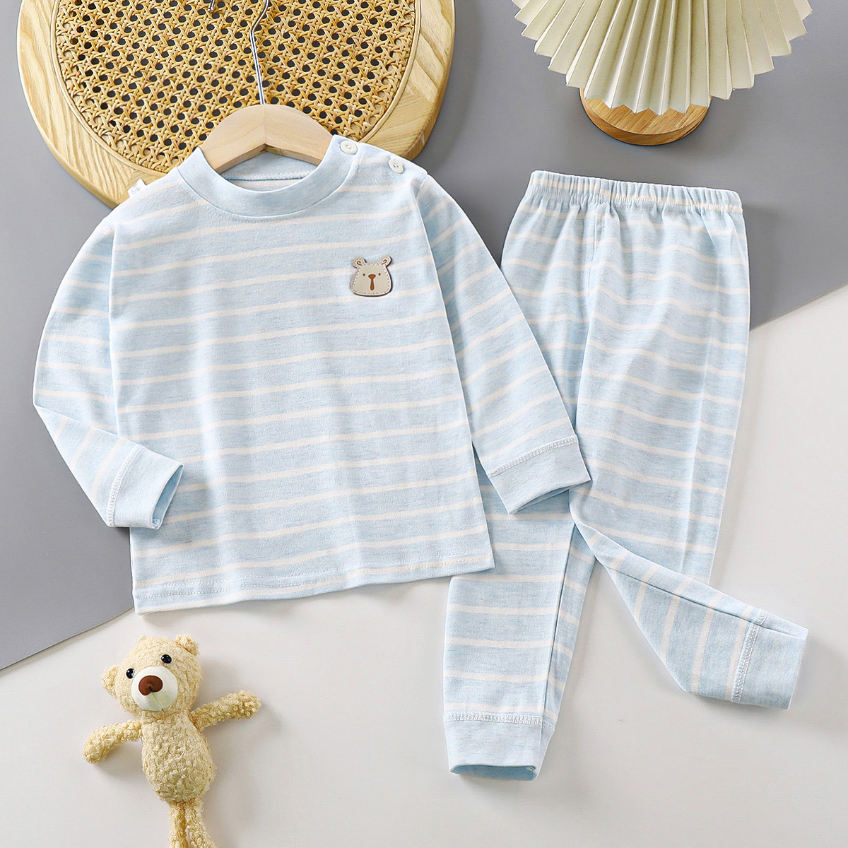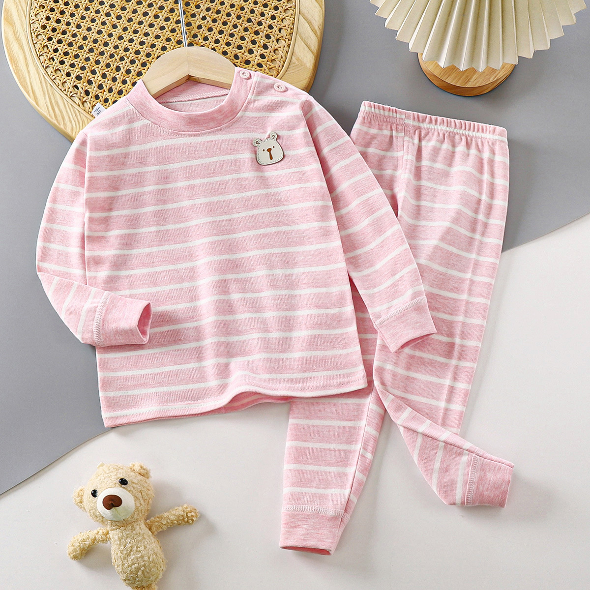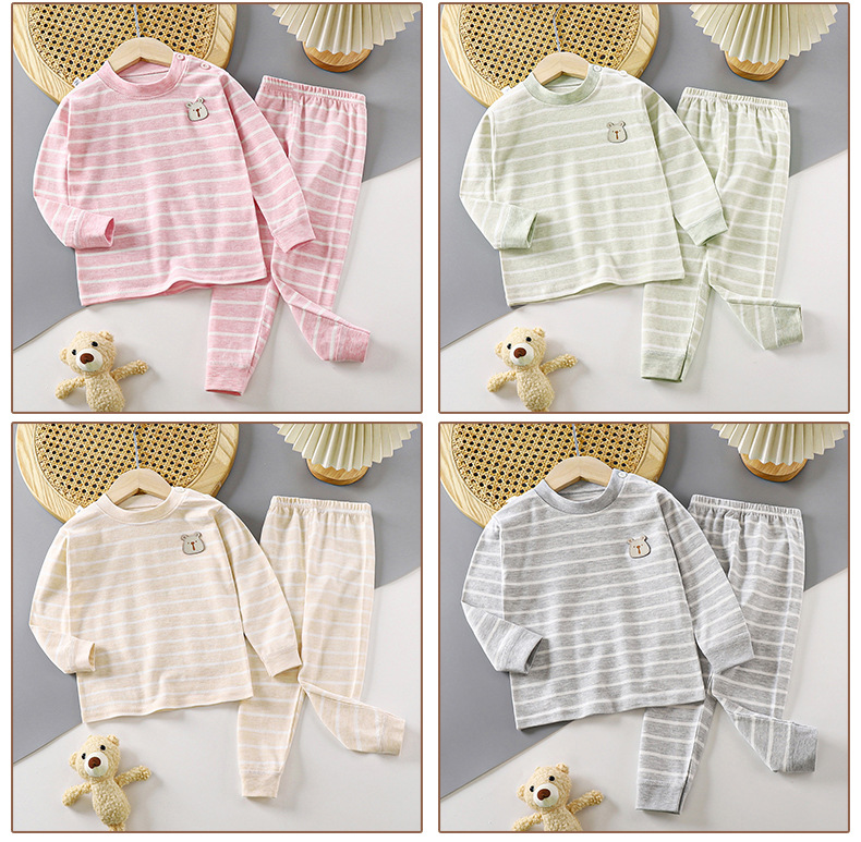 2024 새로운 가을 어린이 가을 옷 긴 바지 면화 아기 컬러 아기 속옷 세트 아동복 도매